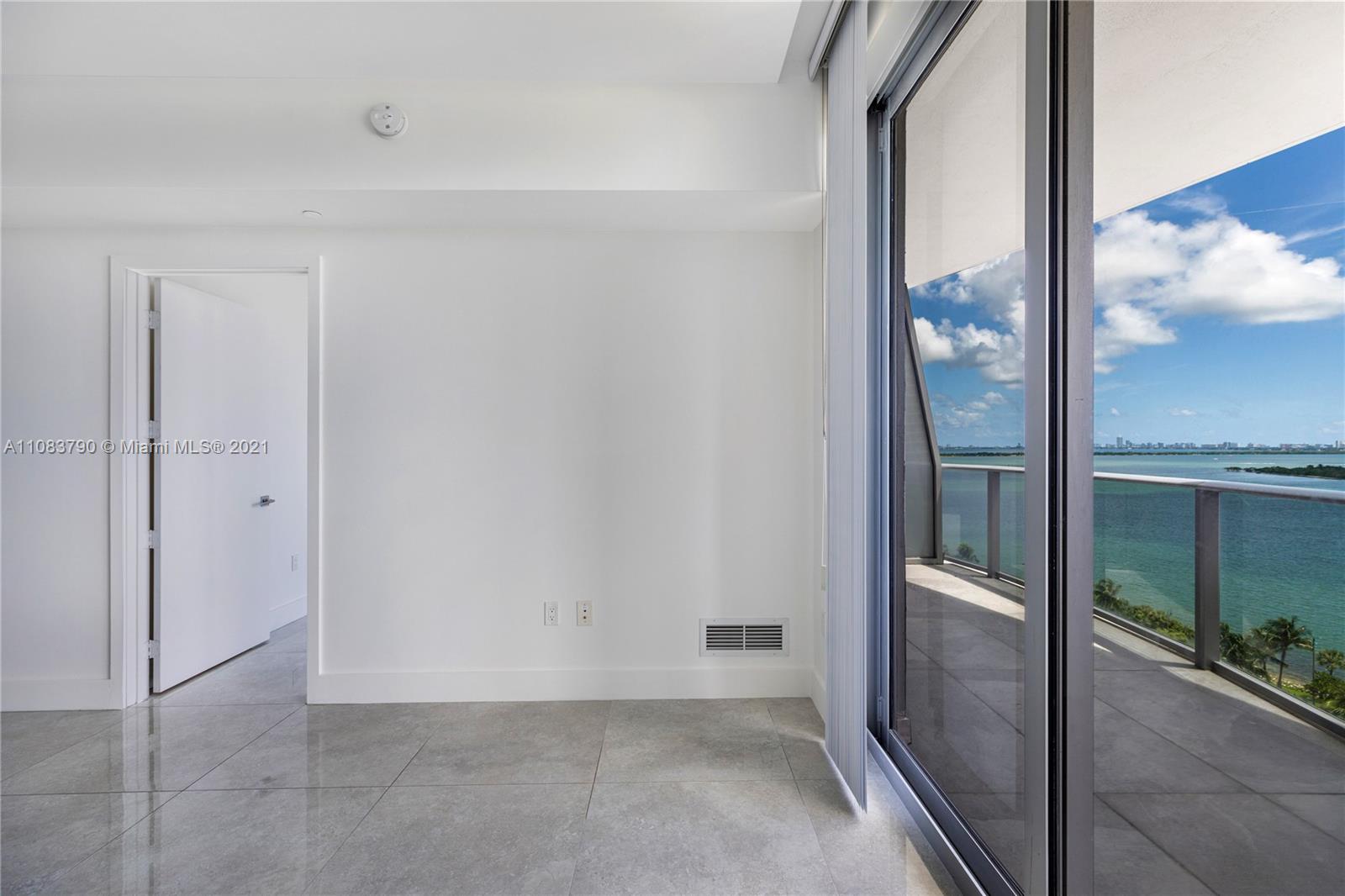 THE HIGHEST OF ONLY 12 UNITS FEATURING 2 BEDROOMS 2.5 BATHS IN THE BUILDING WITH DIRECT BAY VIEWS (all other east facing units are 3 beds 4baths + Den). Enjoy water views from all the room .OPEN KICHEN W/QUARTTZ TOPS & ITALIAN CABINETS & BOSCH APPLIANCES. 9FT CEILING. SLPIT BEDROOMS. MASTER W/2WALKING + LINEN, DUAL SINKS, SHOWER+TUB. 2ND ON SUITE W/ WALKIN & 2 CLOSETS + LINEN. Valet,Concierge,Sunrise & Sunset Pools,Hot Tub,BBQ,Gym,Party Room,Movie Theater,Business Center,Kids Play Room,Pool Tables... Walk to park, nightlife, banks, shops, restaurants, Publix, PAC & AAA. 5 minutes to South Beach, Downtown, Brickell, Wynwood, Design District & Midtown. Easy access to all major highways.EASY TO SHOW!