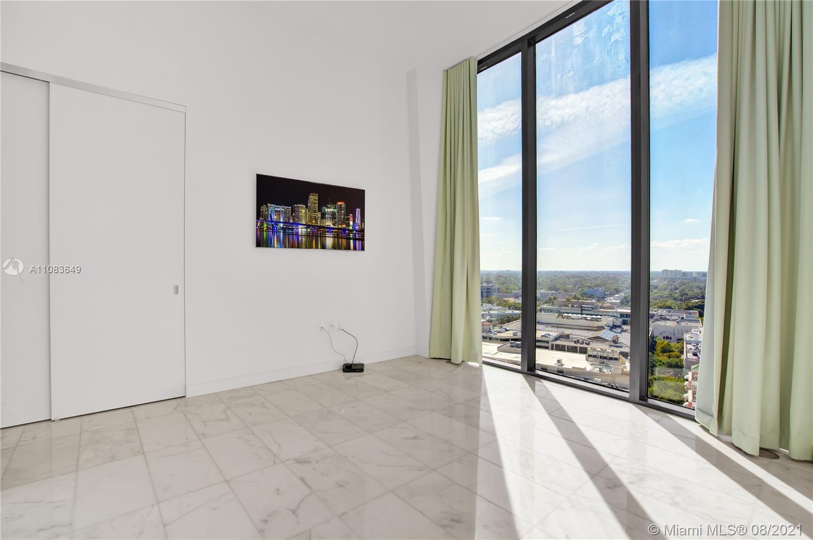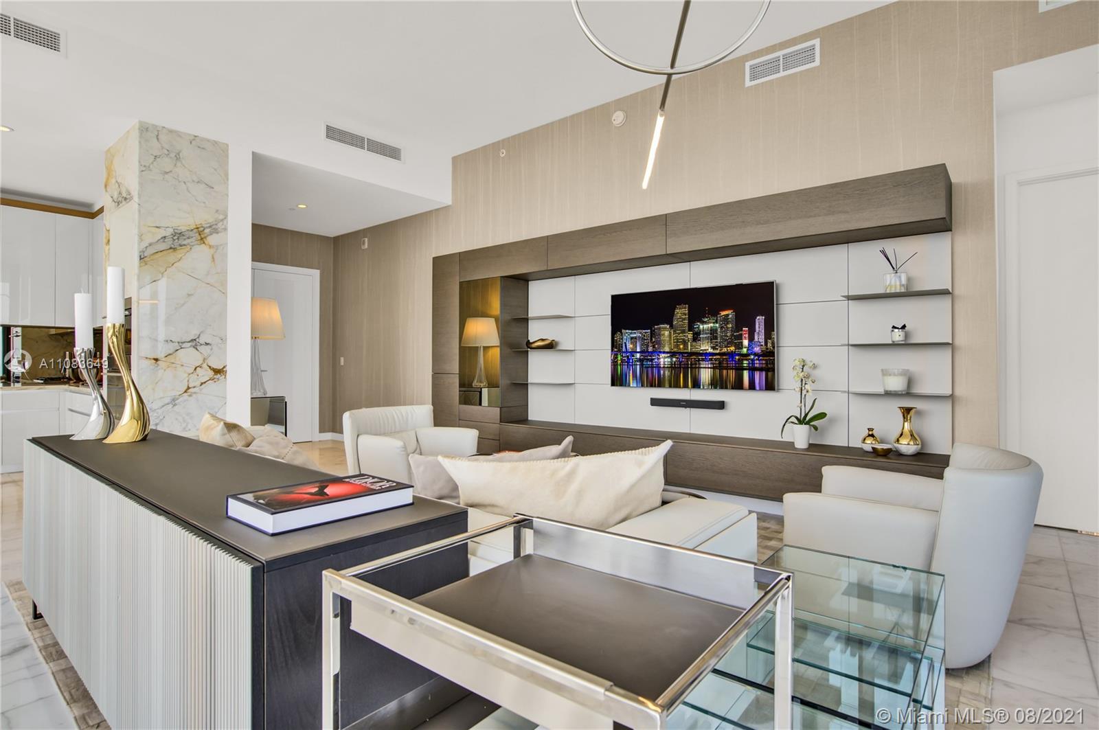 The most coveted line in Park Grove, this corner, high-floor residence boasts formidable bay and city views. Keyed elevator opens to private foyer that leads to a spacious, layout with 12 ft glass walls, separate service entrance, marble flooring, built-in closets, bayfront kitchen with marble counters, Wolf gas range plus Sub-zero and Wolf appliances, pantry and laundry room. A secondary kitchen can be converted to den, media room or entertainment lounge (refer to renderings). A crown jewel designed by Rem Koolhaas with world class amenities including bayfront pool, spa, sauna, wellness lounge with treatment rooms, wine room and more occupying over 5 acres of Enzo Enea grounds. Tenant in place for 6 months paying $26K/month.