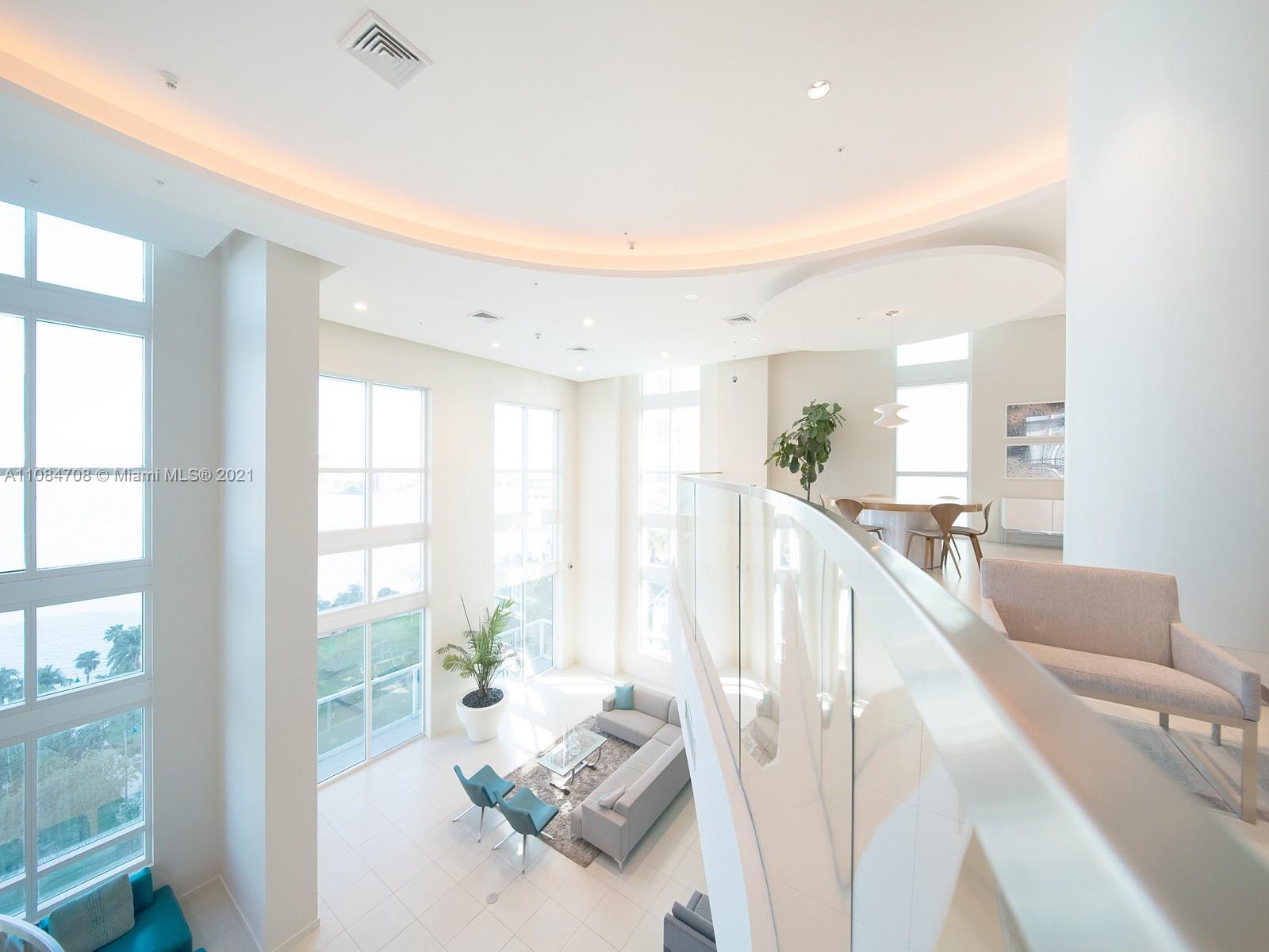 Unique 13-ft high ceiling loft condo with sweeping water views of Biscayne Bay. Architect designed loft has 2 finished bedrooms and 2 bathrooms, wood flooring, and wrap around balcony. Situated in Edgewater across from Margaret Pace Park and only minutes from Wynwood, Miami Design District, Downtown Miami, Brickell, and Miami Beach. Building has 2 pools, gym, mini mart, pet friendly, and other top amenities. Nearby hospital complexes, PAMM, and Arsht Center. Walking distance to Publix, corner banks, and upscale restaurants. Unit parking space located on same floor as unit.