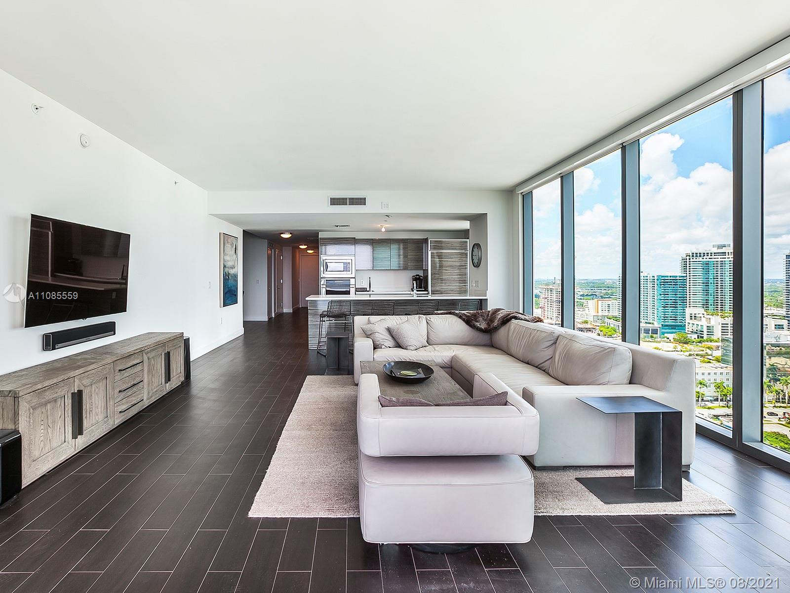 Spectacular direct bay views from this large 2 bedroom, 2 bathroom, plus a den/dinning room, in Edgewater's Icon Bay. Enter directly from the elevator, into the units private foyer, and enjoy its 1,300 sqft of open floorplan and all of its modern finishes, including automatic shades and blackout shades, quartz counter tops, and porcelain wood floor tiles. Relish in the building's resort-like amenities, which include an infinity pool, tennis courts, fitness center, game room, paddle boards for the bay, and much more. The unit includes one assigned parking space and additional parking can be arranged.