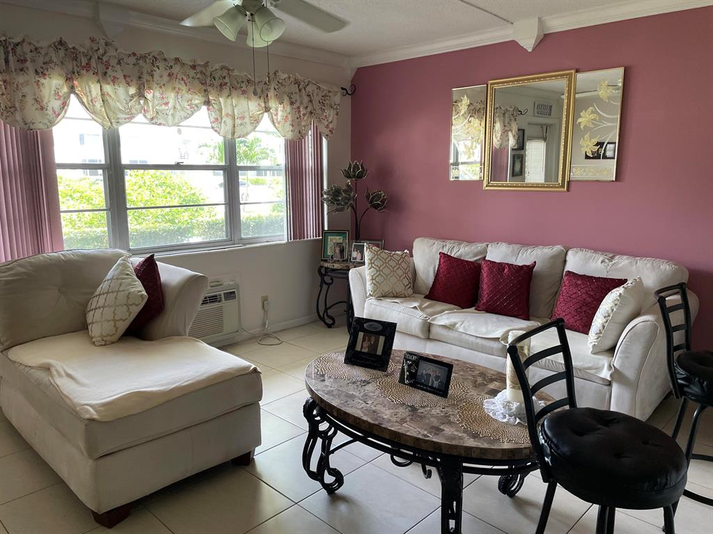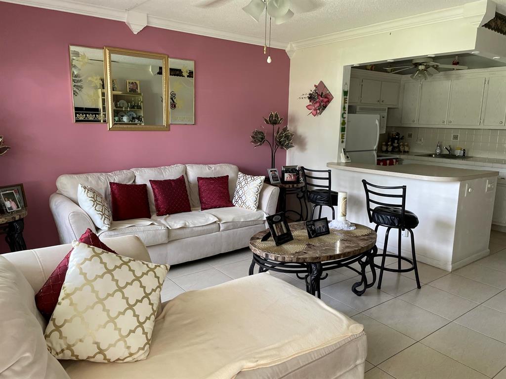 Very active 55+ community. Comfortable and convenient ground floor unit near the fitness center and pools. Kitchen has been opened to dining room and living room. Cable is free including HBO and STARZ included in maintenance fee. Unit is tastefully furnished for your convenience. Bus service, movies, classes and clubs to enrich your life. Come for a visit and you will want to stay.