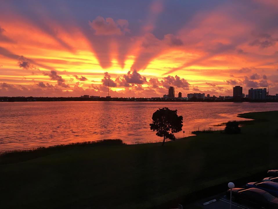 Fantastic location: Beautiful sunrises and sunsets every day from this wonderful 4th floor 2/2 unit overlooking Clear Lake and downtown WPB. Centrally located, close to the outlet mall, beaches, PBIA, Tri-rail and Brightline trains, I-95, the turnpike and downtown. This unit is move-in ready or a great investment opportunity and is perfect for immediate rental. New air conditioner, water heater, water valves throughout the unit including a new main shut off valve, new window dressings, new electrical outlets and switches, both bathrooms renovated and guest room renovated, hurricane Impact windows, hurricane shutters for the balcony, brand new stainless steel appl. R/O water system and add. storage in laundry area. *ALL ROOM SIZES ARE APPROX and SHOULD BE VERIFIED