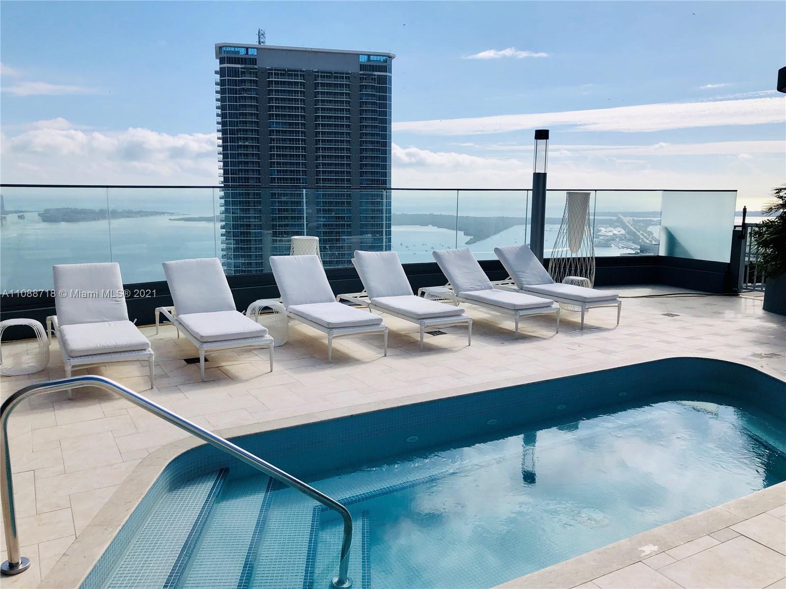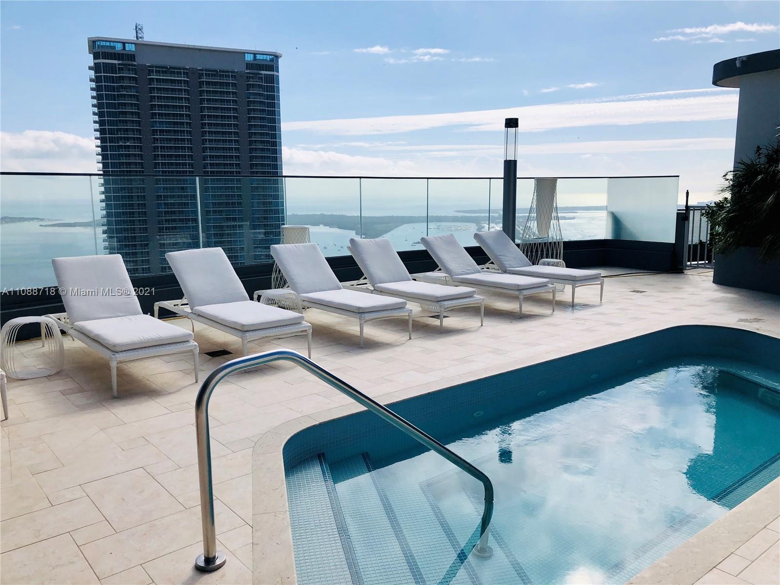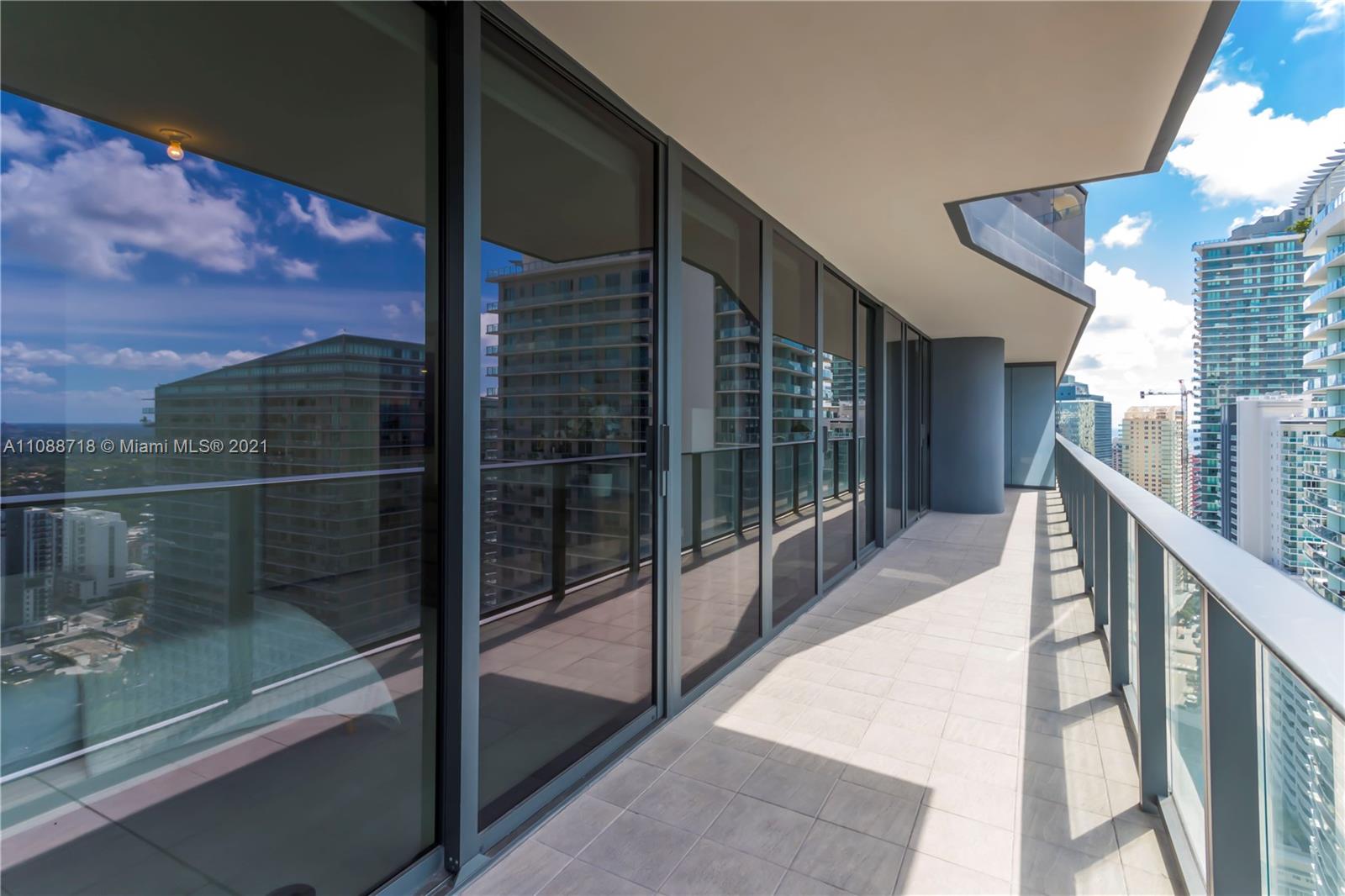 Brand new apartment in the most sophisticated building in Brickell, FLATIRON features state of the art amenities such as a rooftop pool located on the 64th-floor offering impressive and unobstructed ocean and city views; a rooftop spa and fitness center with private rooms, sauna, steam room; an 18th-floor lap pool; a children’s playroom and kids pool; a full-time concierge and doorman. This outstanding 3 bedroom, 3 ½ bath Apartment with a stunning sunset view, features tile throughout the unit including the terrace an elegant Italian kitchen with German-brand “Miele" appliances makes the kitchen in this unit a place to be. Italian-made doors throughout, high-quality closets, electric blackouts, and the awesome Nest thermostat fixture to help you feel comfortable and save energy.