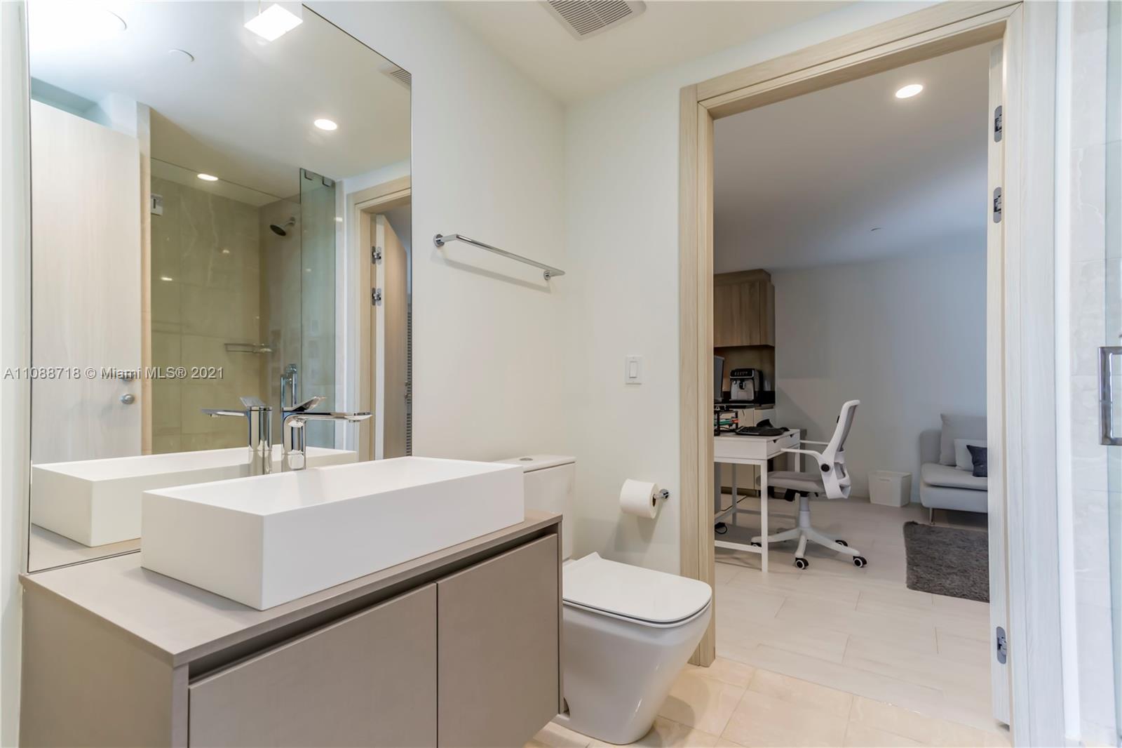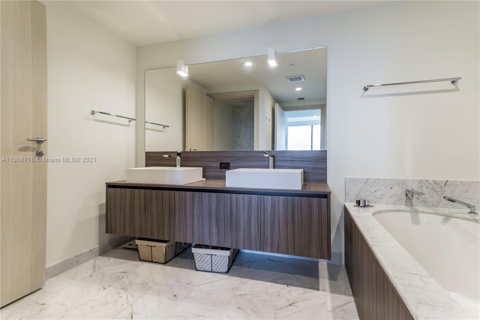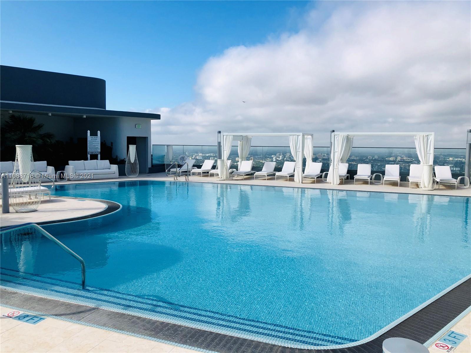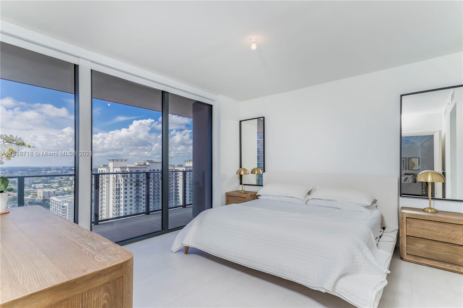 Brand new apartment in the most sophisticated building in Brickell, FLATIRON features state of the art amenities such as a rooftop pool located on the 64th-floor offering impressive and unobstructed ocean and city views; a rooftop spa and fitness center with private rooms, sauna, steam room; an 18th-floor lap pool; a children’s playroom and kids pool; a full-time concierge and doorman. This outstanding 3 bedroom, 3 ½ bath Apartment with a stunning sunset view, features tile throughout the unit including the terrace an elegant Italian kitchen with German-brand “Miele" appliances makes the kitchen in this unit a place to be. Italian-made doors throughout, high-quality closets, electric blackouts, and the awesome Nest thermostat fixture to help you feel comfortable and save energy.