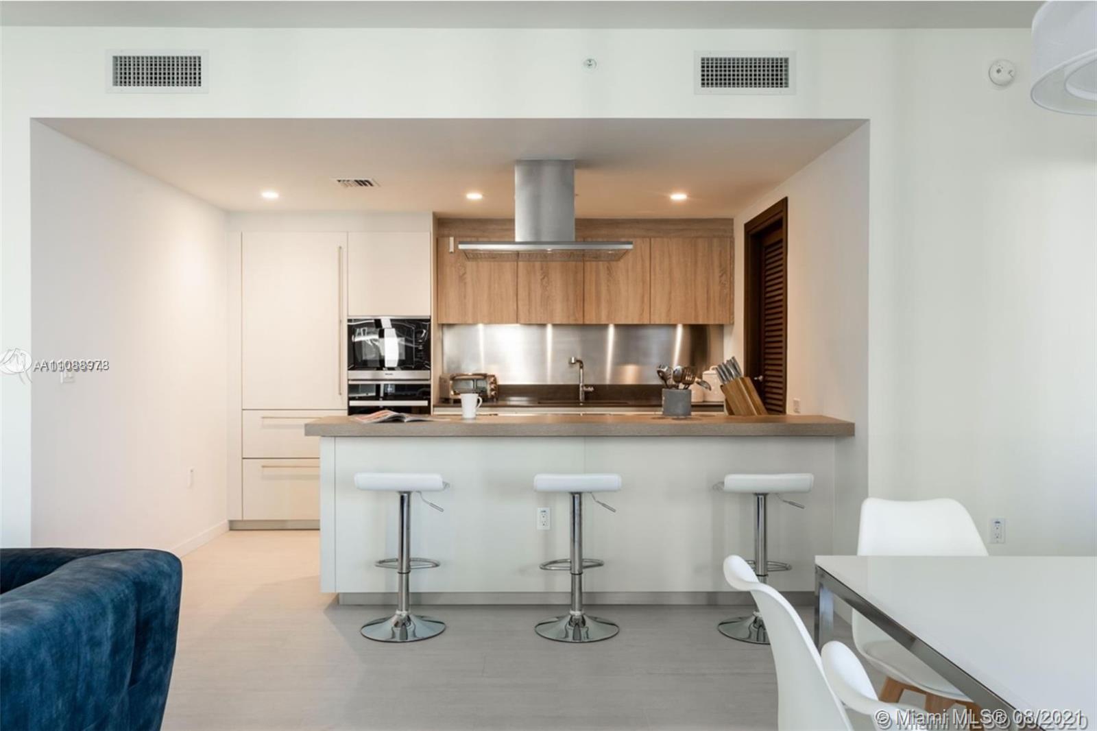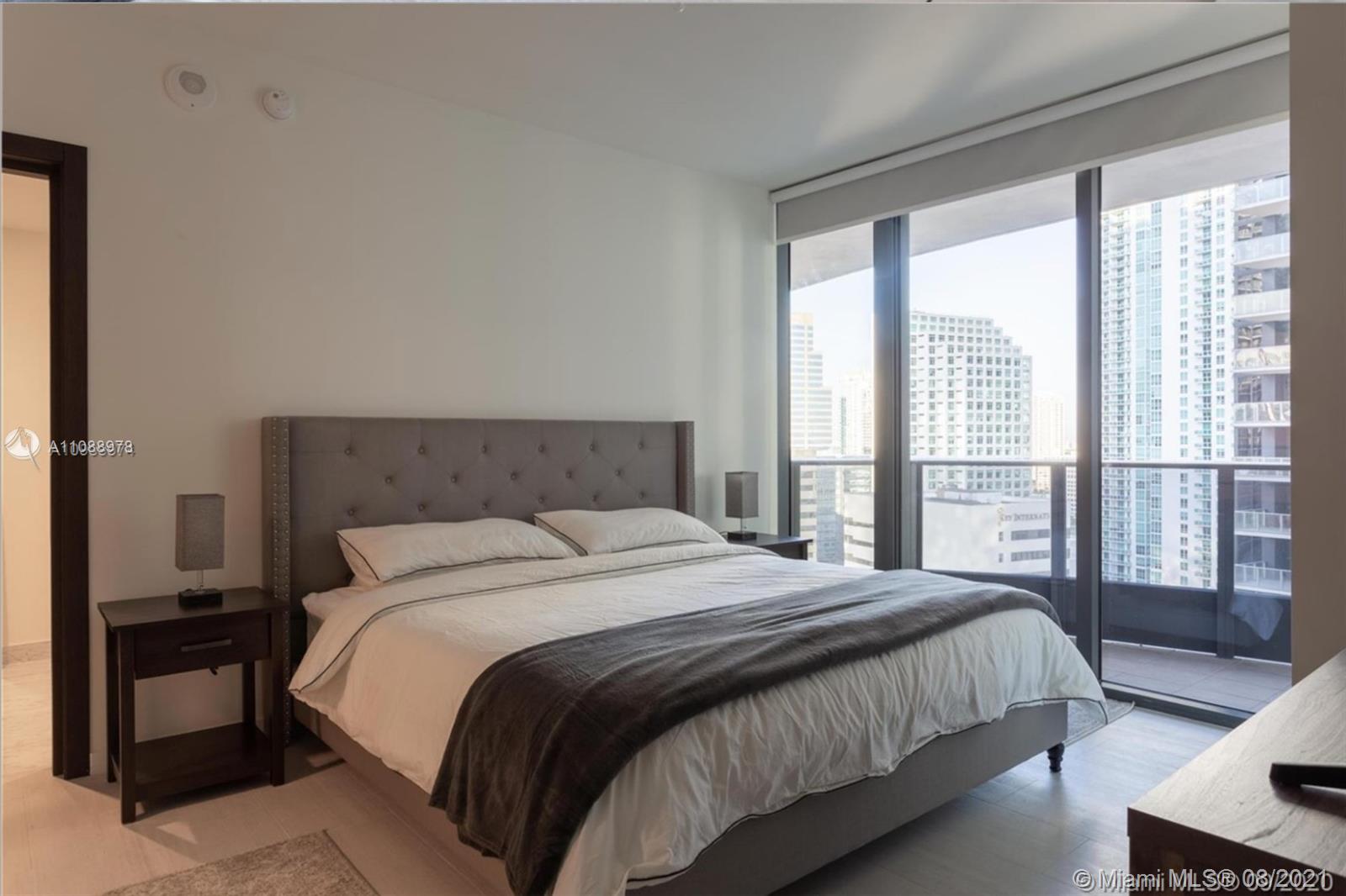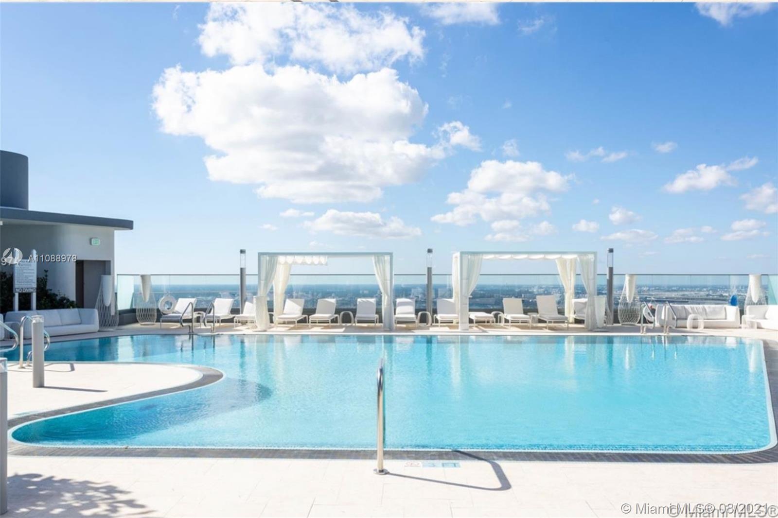 2 bedrooms, 2.5 bathrooms in 1,369 sqft. Italian made, custom design Snaidero kitchen cabinetry with stainless steel back splash and Caesarstone counter tops. Miele stainless steel appliances including washer and dryer. Barausse Italian custom solid wood doors. Italian Marble bathrooms. Black out and closet interior already installed in main and second room. READY TO MOVE IN! Five-star service and elite amenities. Sky club including a pool with 360-degree view of Miami, gym, spa and rooftop garden. Theater, club room lounge, billiards room outdoor pool and children's playground located on 17th and 18th floors. Personal concierge, Flatiron APP, valet parking service.