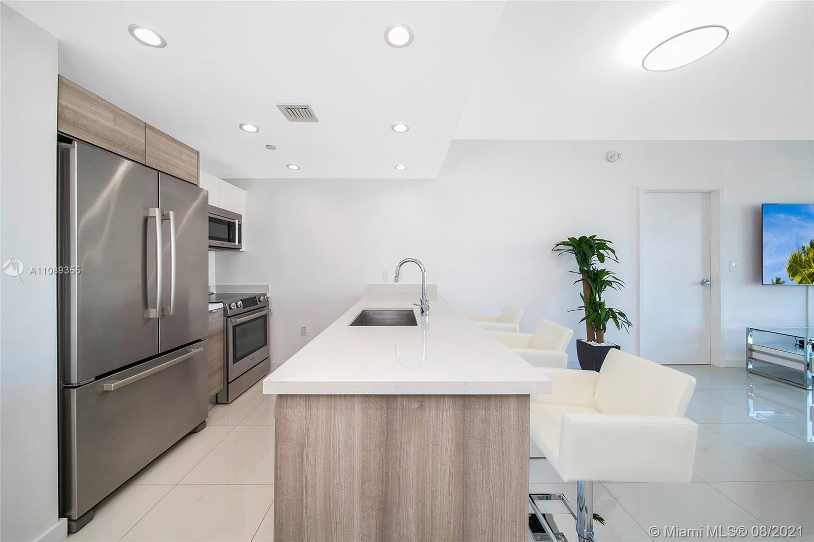 Beautiful waterfront boutique building designed by Arquitectonica. Only 57 units on this building located on Bay Harbor Islands sitting on the canal with amazing rooftop pool, hot tub and BBQ area. Unit comes completely furnished, never lived in. Walk to the beach, Bal Harbour Shops, houses of worship, great schools, golf course and restaurants. Safe and peaceful area close to everything. Two bedrooms plus enclosed den/office and 3 full bathrooms. Building has gym, storage, spa, rooftop pool, fireplace, party room, security and 2 parking spaces (lift system). Pets up to 40lbs allowed by HOA (1 pet per unit). CLICK ON VIRTUAL TOUR TO SEE VIDEO. Furniture available for sale also.