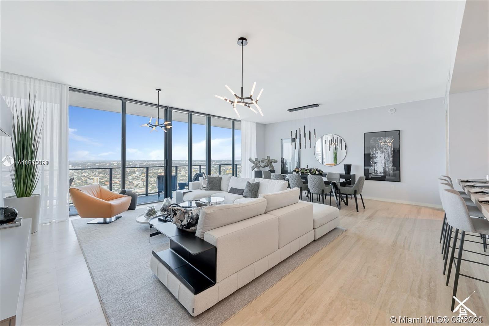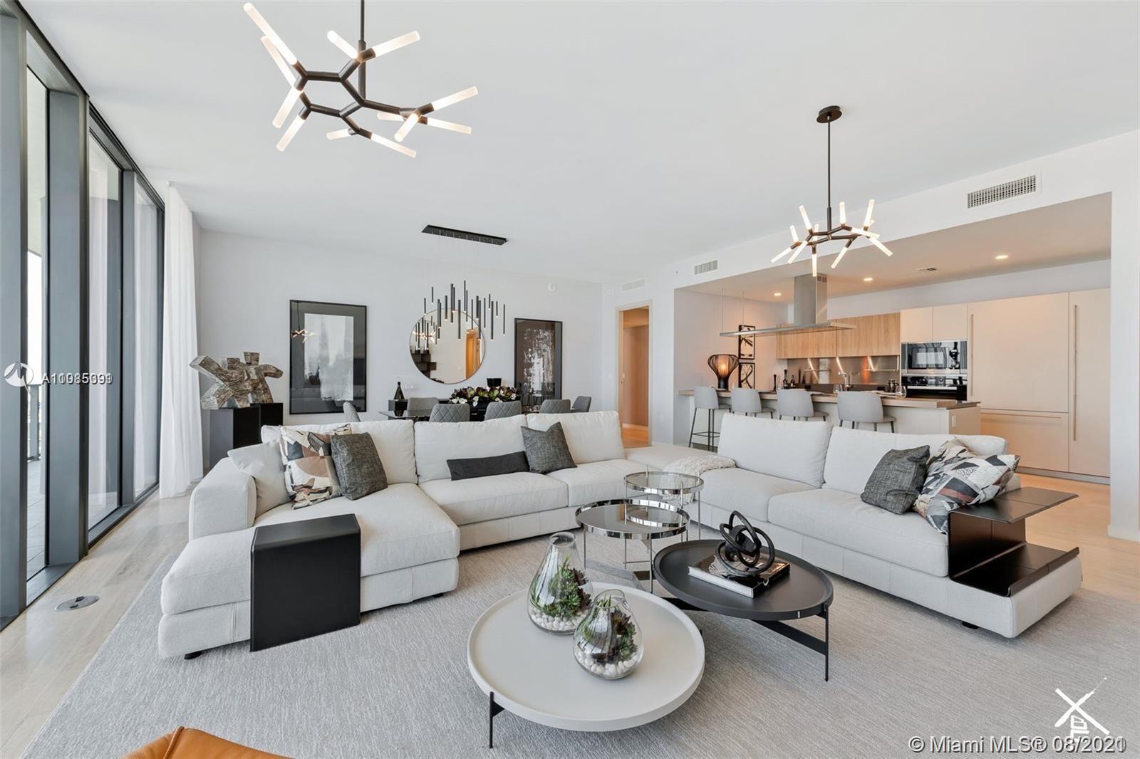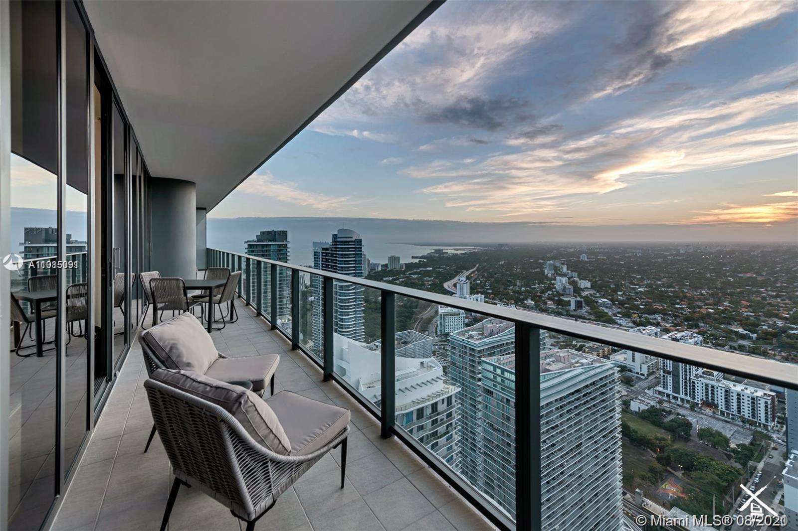 Situated in the heart of downtown Brickell, luxury living and superb location define this 4 BR, + Den, 4.5 BA penthouse. Completed in 2019, Brickell Flatiron, a 64-story glass tower, features the highest quality Italian finishes, unparalleled services and resort style amenities. Expansive balcony delivers lavish sunset, city and bay views. Located in the heart of Brickell, residents are ideally situated within walking distance of Mary Brickell Village and Brickell City Centre—3 parking spaces. Furniture and art pictured not included.