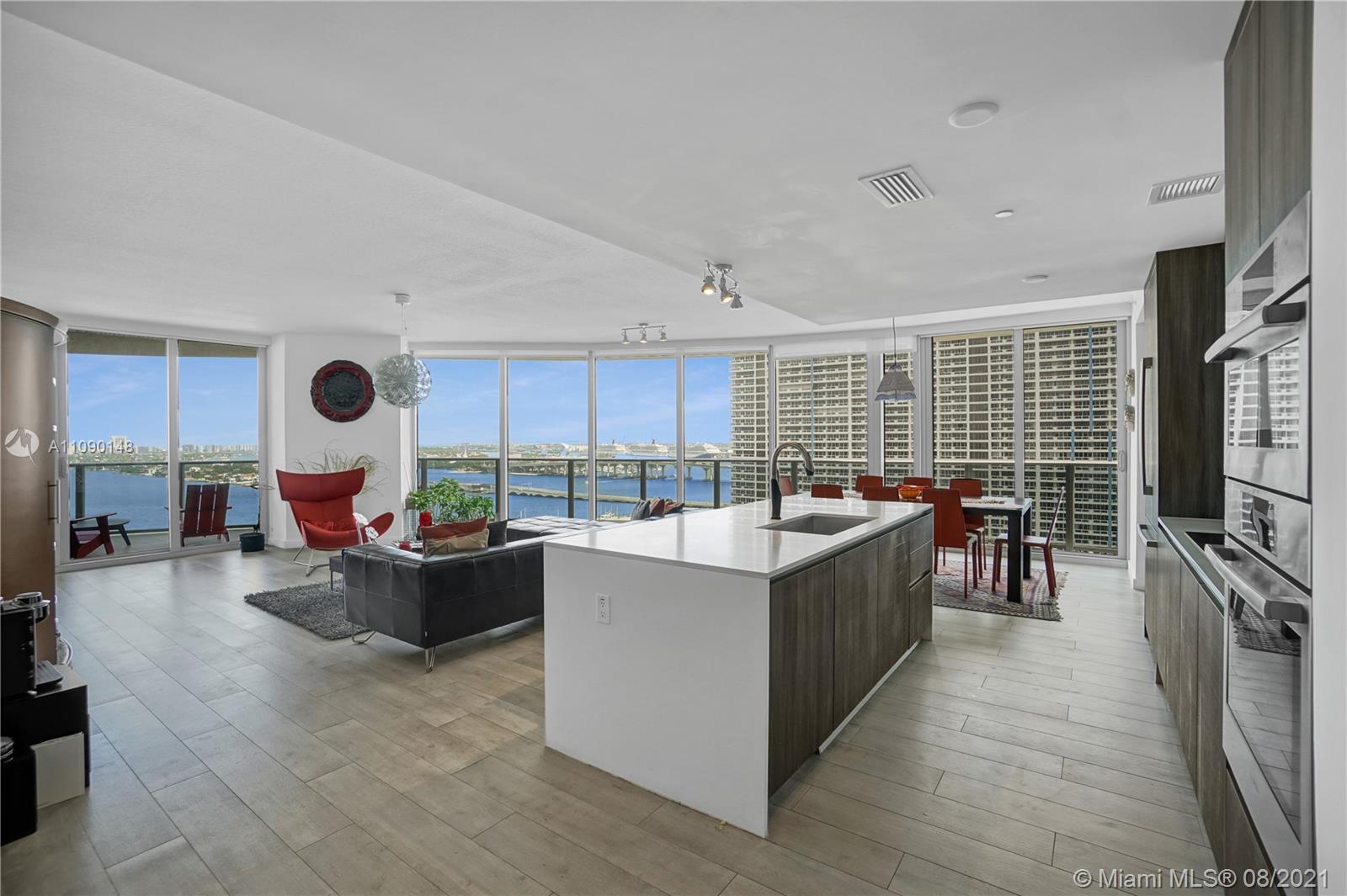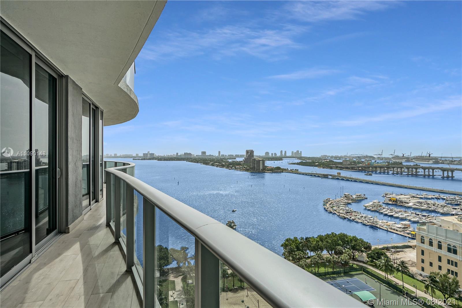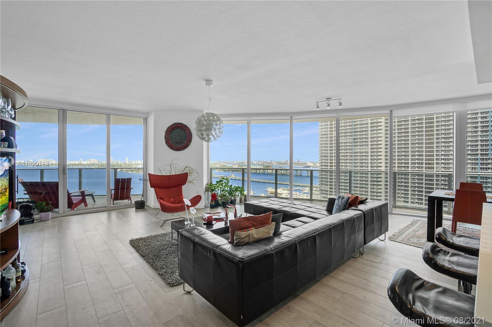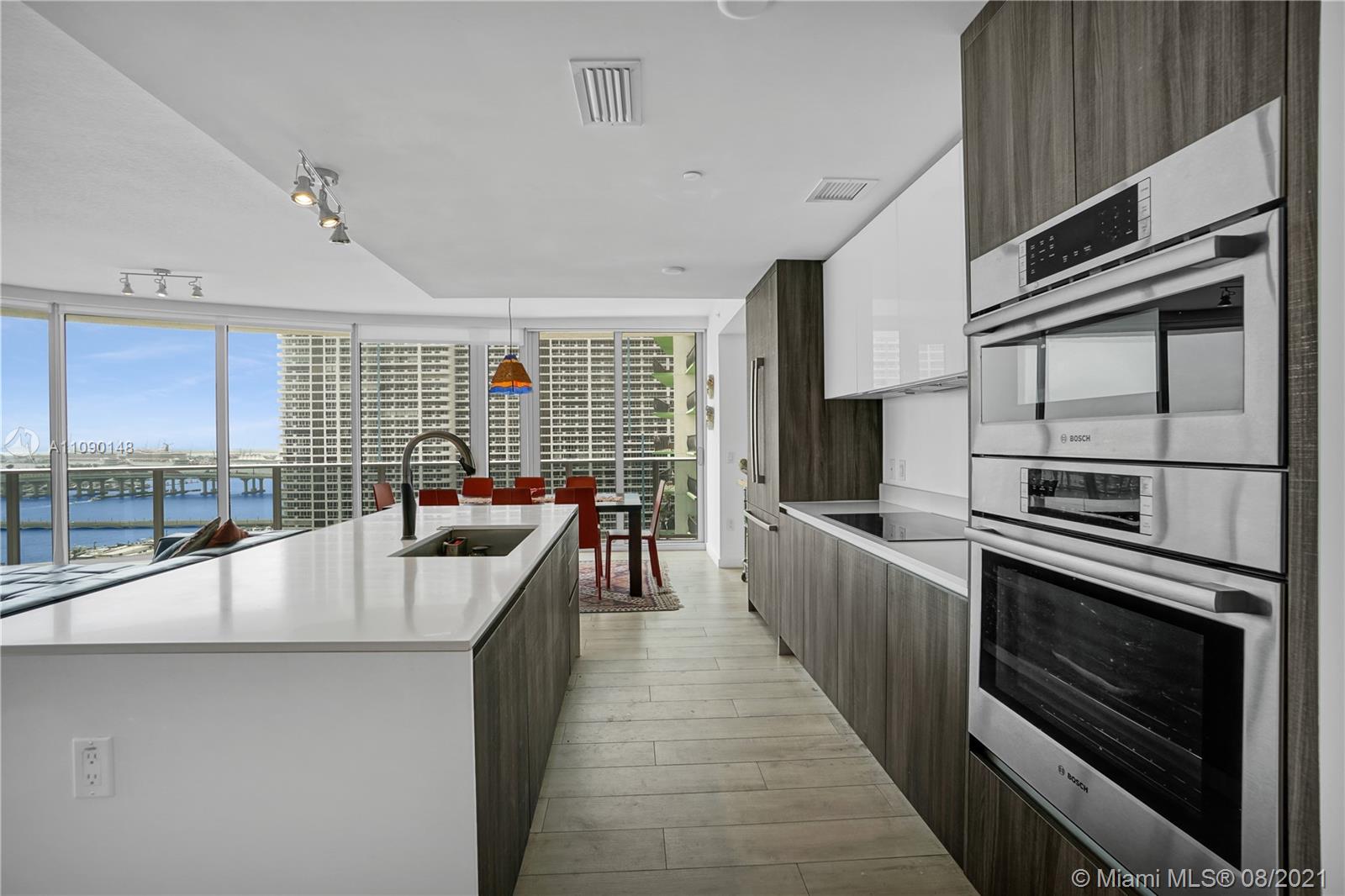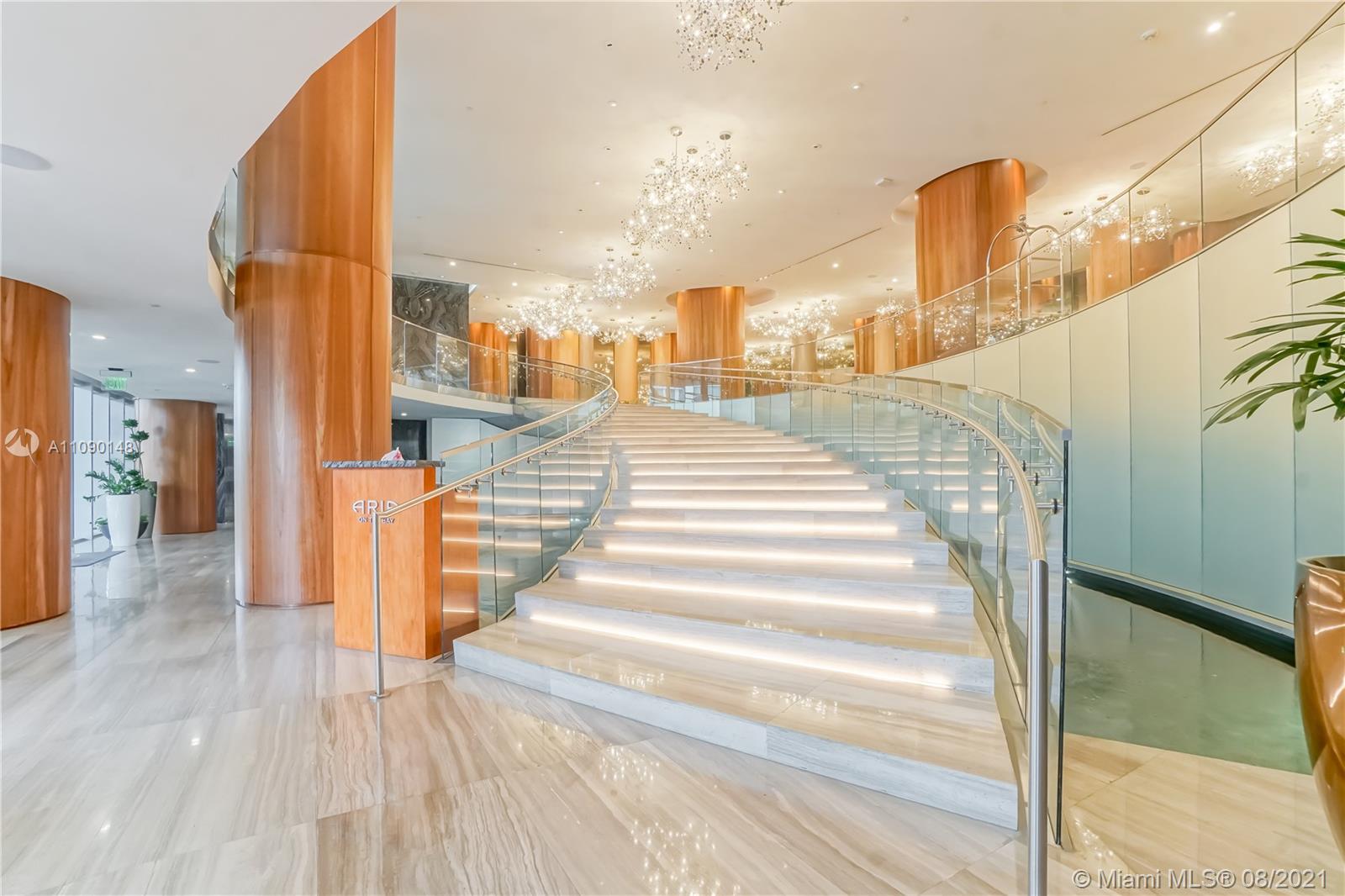 Priced to sell! Aria On The Bay. Breathtaking beautiful panoramic unobstructed views of the bay and ocean. Many upgrades, wraparound balcony, private elevator entrance and 3 bedrooms plus den 4 full baths! floor to ceiling glass exterior walls. Two assigned parking spaces, valet parking, washer and dryer, European-style kitchen, beautiful modern design cabinetry with white waterfall countertops and beautiful appliances including conventional microwave, full size oven, built-in refrigerator and dishwasher. Amenities 2 pools, hot tub over looking the bay, bbq area, gym, sauna, steam room, massage treatment area, kids playroom, theater room and beautiful great room with social area, business center.