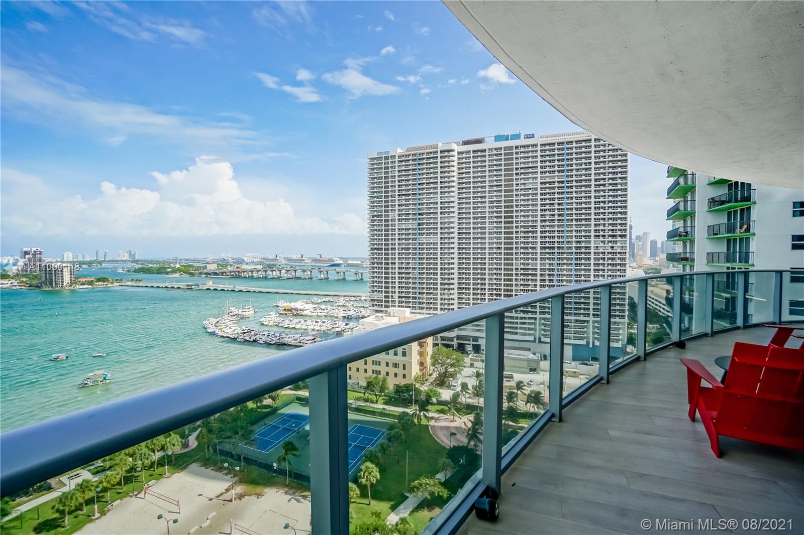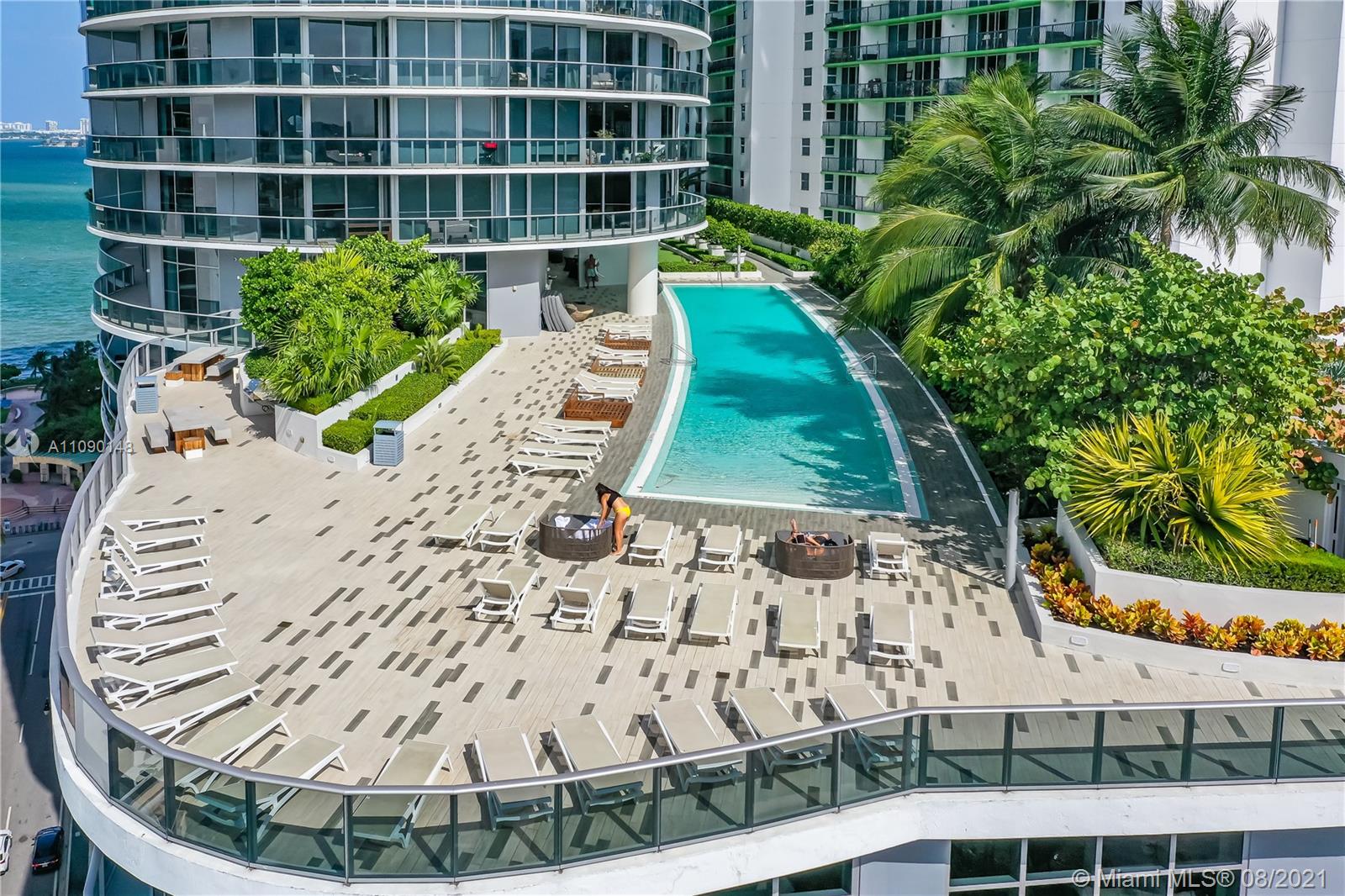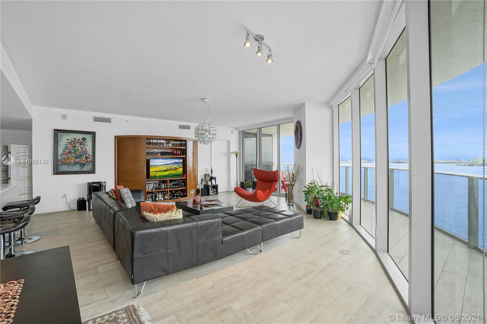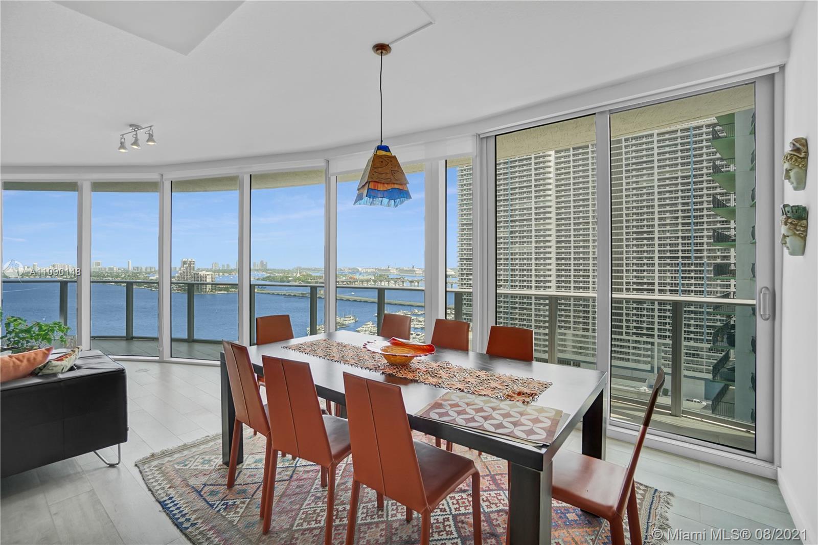 Priced to sell! Aria On The Bay. Breathtaking beautiful panoramic unobstructed views of the bay and ocean. Many upgrades, wraparound balcony, private elevator entrance and 3 bedrooms plus den 4 full baths! floor to ceiling glass exterior walls. Two assigned parking spaces, valet parking, washer and dryer, European-style kitchen, beautiful modern design cabinetry with white waterfall countertops and beautiful appliances including conventional microwave, full size oven, built-in refrigerator and dishwasher. Amenities 2 pools, hot tub over looking the bay, bbq area, gym, sauna, steam room, massage treatment area, kids playroom, theater room and beautiful great room with social area, business center.