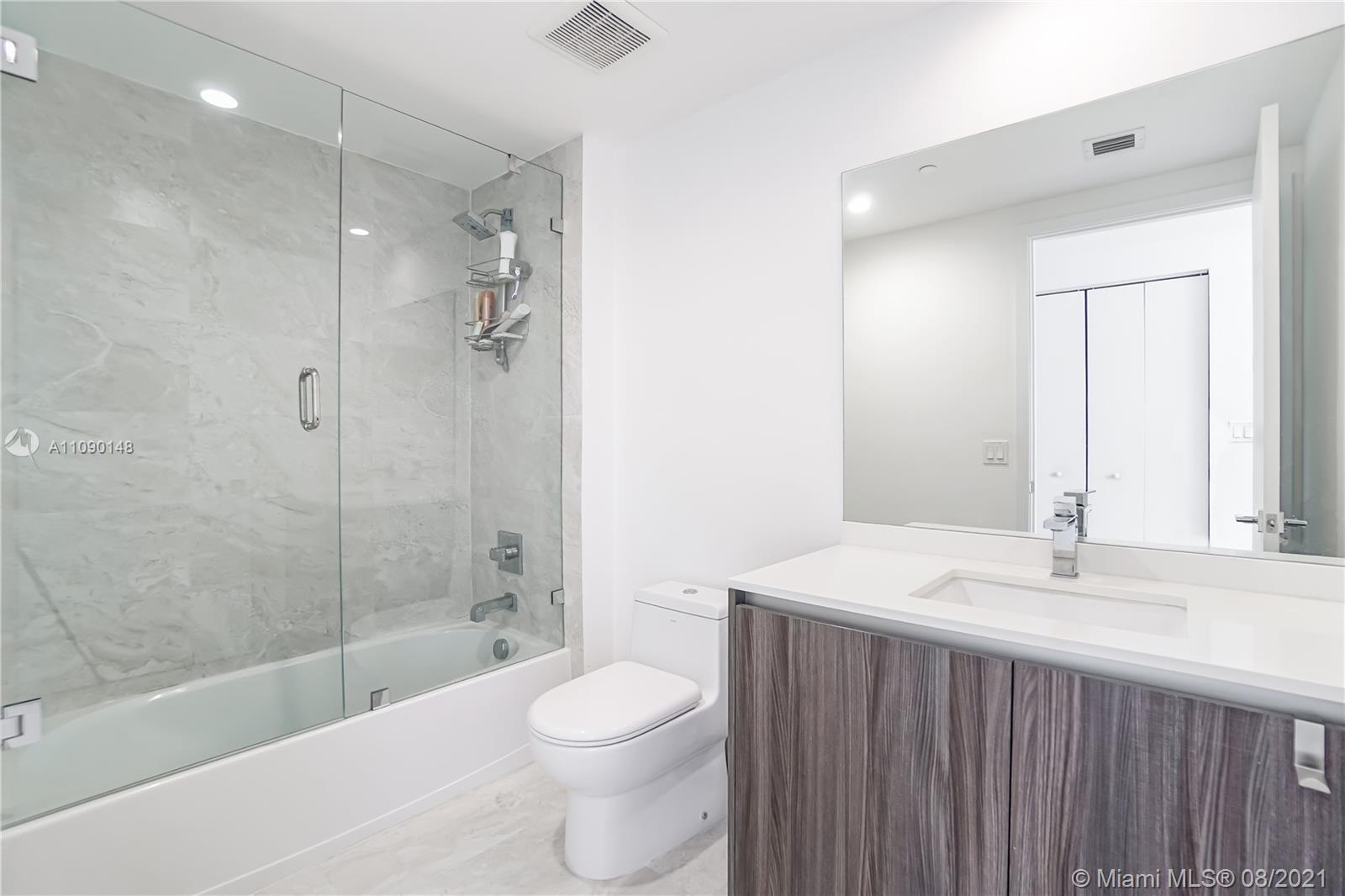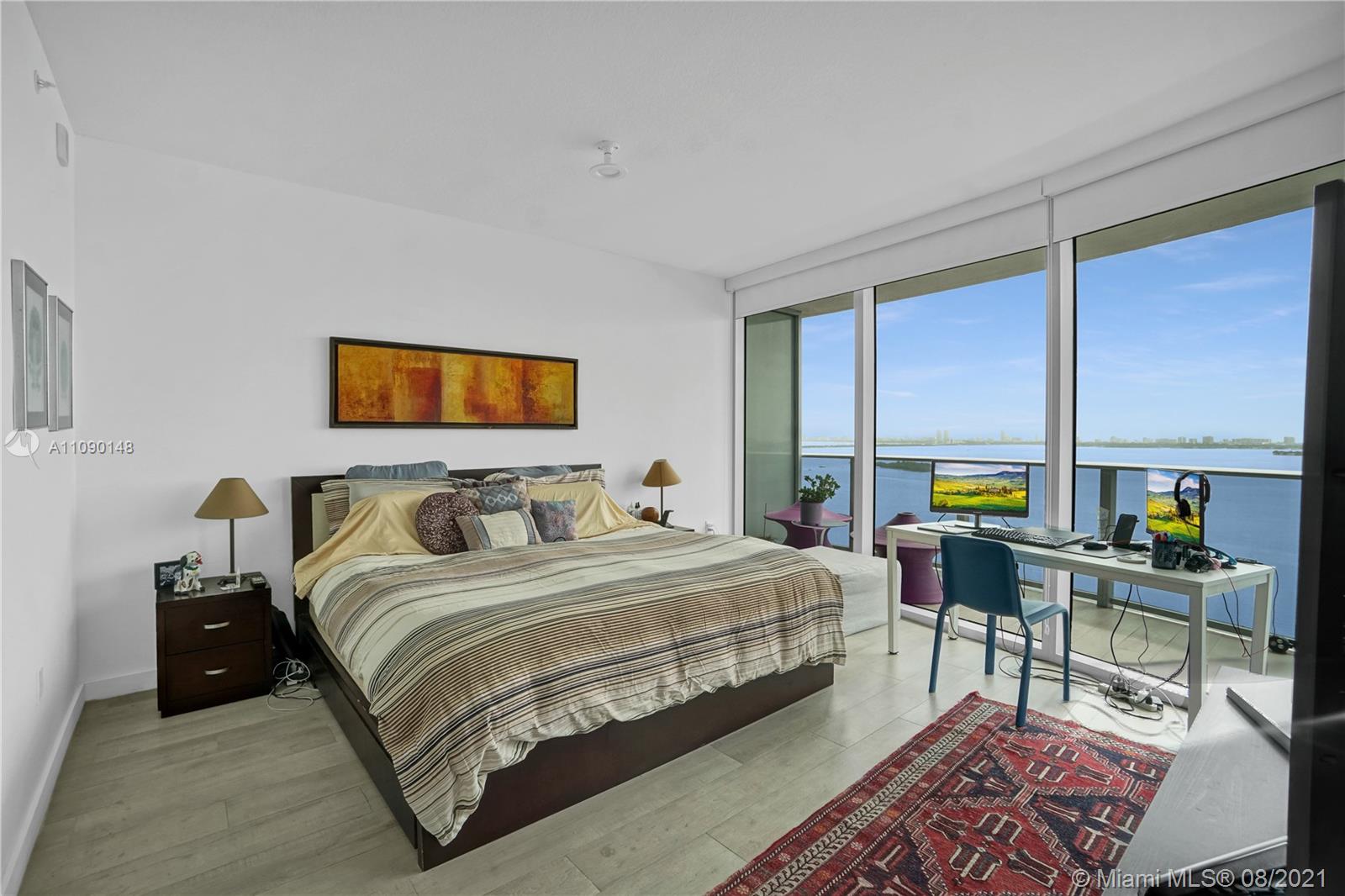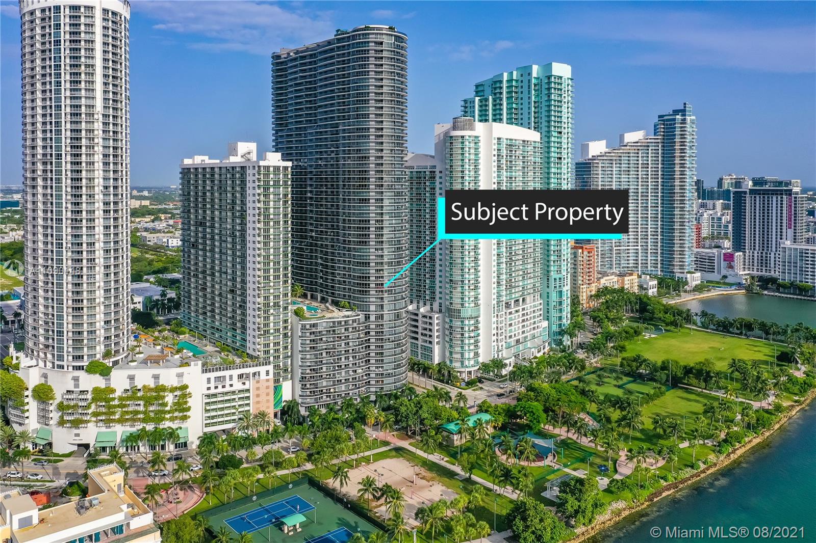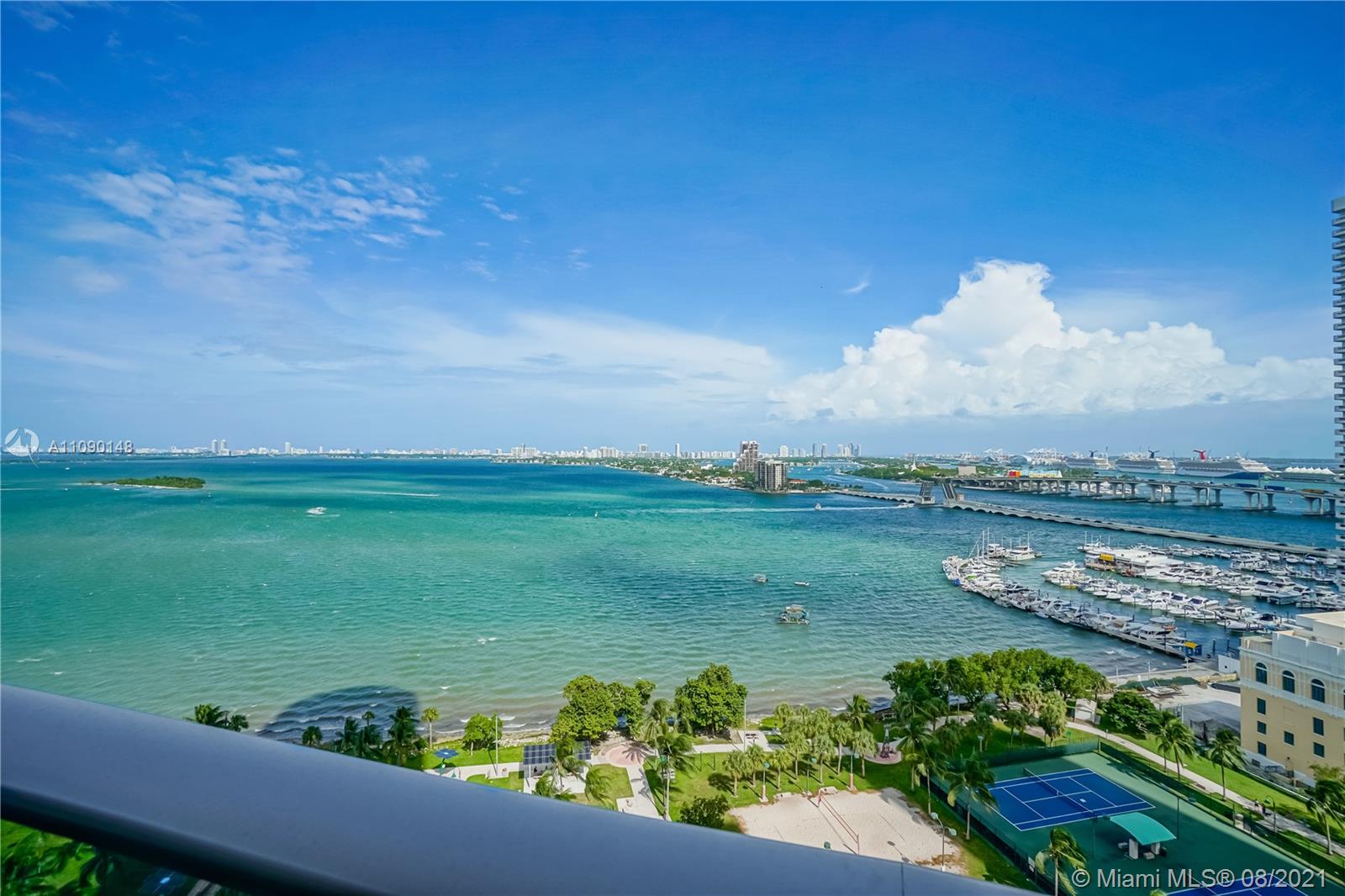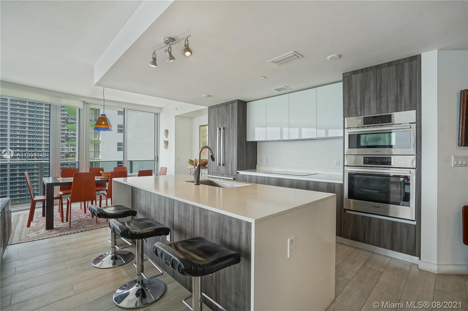 Priced to sell! Aria On The Bay. Breathtaking beautiful panoramic unobstructed views of the bay and ocean. Many upgrades, wraparound balcony, private elevator entrance and 3 bedrooms plus den 4 full baths! floor to ceiling glass exterior walls. Two assigned parking spaces, valet parking, washer and dryer, European-style kitchen, beautiful modern design cabinetry with white waterfall countertops and beautiful appliances including conventional microwave, full size oven, built-in refrigerator and dishwasher. Amenities 2 pools, hot tub over looking the bay, bbq area, gym, sauna, steam room, massage treatment area, kids playroom, theater room and beautiful great room with social area, business center.
