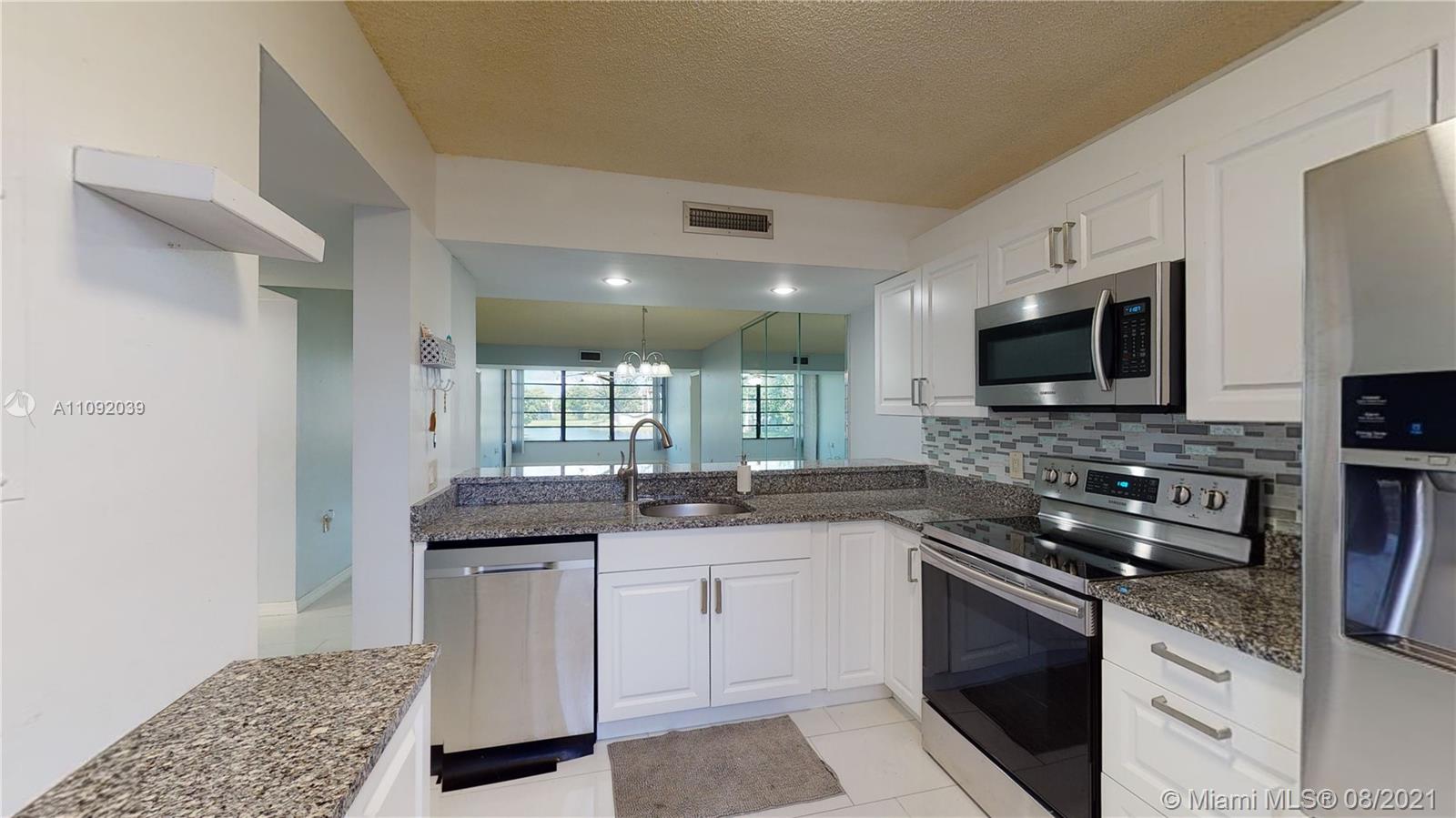 Remodeled unit 2 bedroom 2 bath with a den/storage space. In unit laundry room with full size washer and dryer. Porcelain floors throughout, remodeled kitchen with white wood cabinets, granite and new stainless steel appliances. Master and guest bathrooms very tastefully remodeled. Beautiful view of the golf course and lake from your living room. As an owner you become a member of the Pine Island Ridge Country club which includes 2 swimming pools, golf course with green and cart fees, 2 restaurants, tennis courts etc. HOA fee includes a $200 a year food card to spend at the club restaurants. AC was replace in 2020.