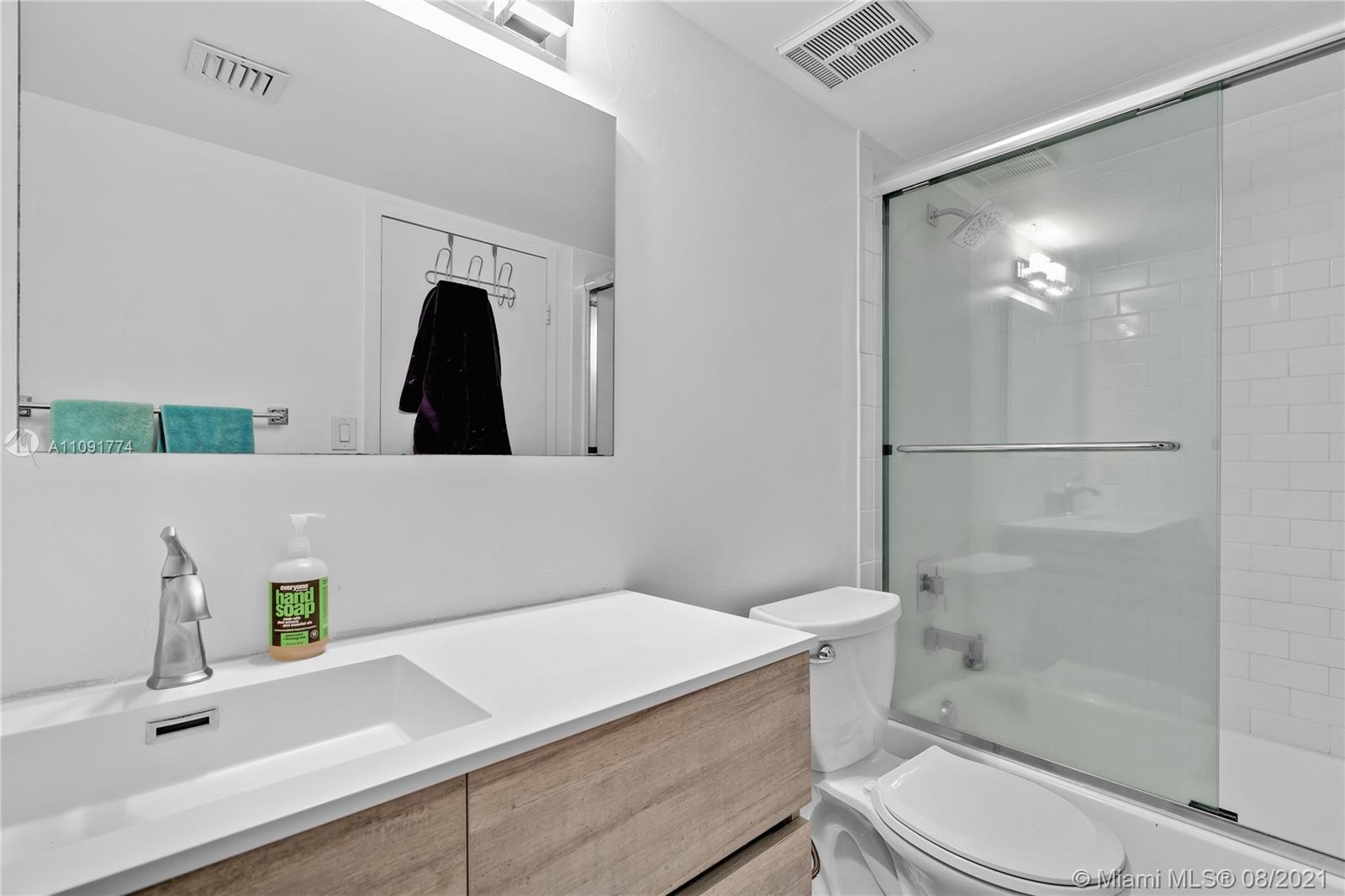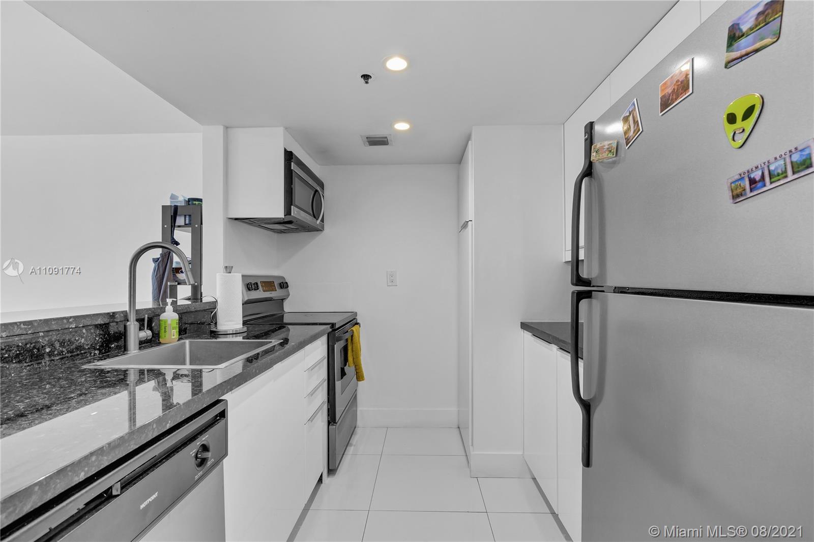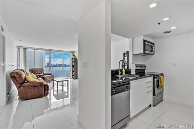 Gorgeous fully renovated 2 beds 2 full baths condo with stunning waterfront views. Ceiling to floor windows, modern lighting, granite countertops, gloss kitchen cabinets, porcelain floors. Freshly painted, corner unit near elevator. Wrap around balcony. Spacious walking closet and in unit laundry. 24/7 security. Has a reserved covered parking. Convenience stores and restaurants walking distance. Contact listing agent for showing instructions. It won't last!