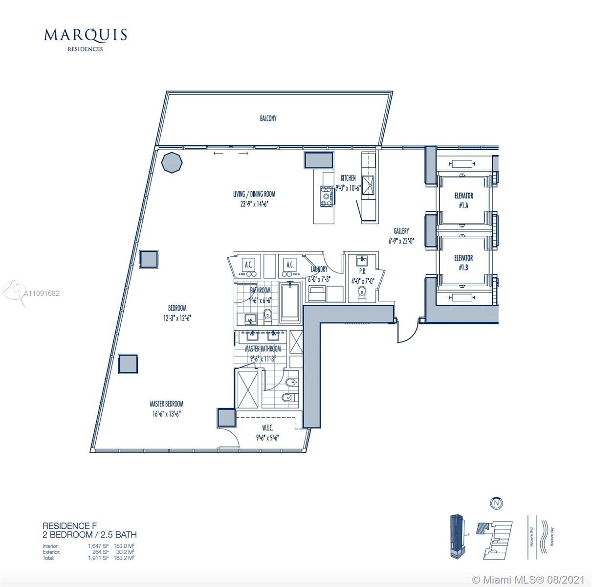 Private elevator access leads directly into the unit. Split floor plan features 10 ft ceilings, an oversized balcony with panoramic views of the Biscayne Bay and Downtown Miami. Porcelain floor thought, custom built closets, open concept kitchen with gloss cabinetry and luxury appliances, laundry room, and more. Marquis building offers 5-star resort like experience with amenities such as state-of-the-art fitness center, yoga studio, spa, two pools with cabanas, a restaurant, lounge, clubroom with gourmet kitchen, and more.