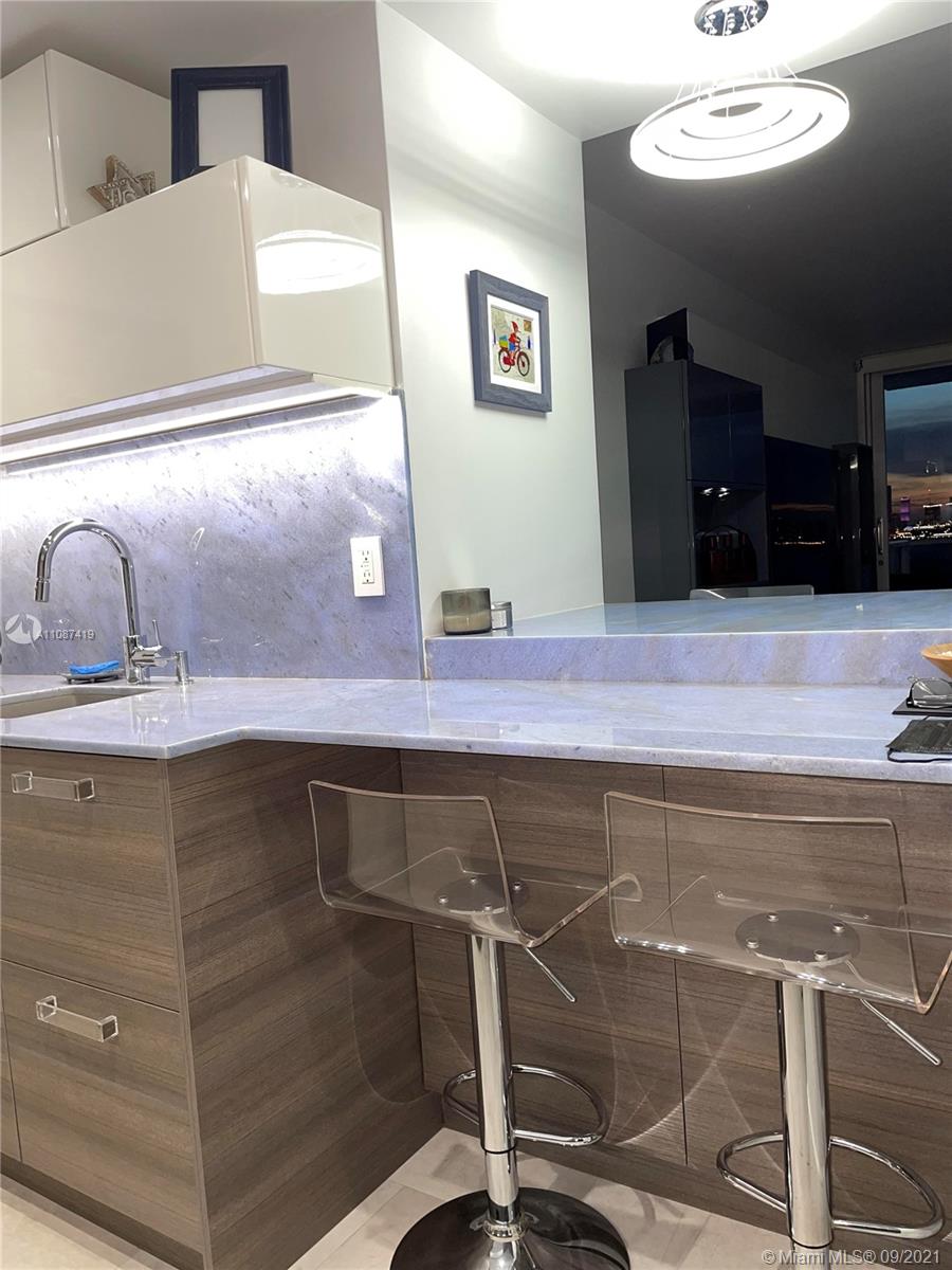 Located in the heart of South Beach, here is your opportunity to own a fully renovated/studs up and spacious 1 bedroom and 1 bath w/stunning skyline/sunset, Biscayne Bay & Iconic Miami Downtown views. Unit is move-in ready with porcelain flooring throughout, new AC & Ducts, LED Lighting throughout, Custom European cabinetry kitchen w/ Liebherr refrigerator, induction cooktop, full-height pantry soft close doors & plenty of windows for a light and bright space with natural sunlight. Custom Euro closets. Full remodeled enlarged bathroom. Custom walls & bar unit. Garaged Assigned Parking Spot near the elevator. Mirador is a full-service building with valet parking, heated pool, sauna, jacuzzi, convenience store, 24h security, spa, & a state-of-the-art fitness.