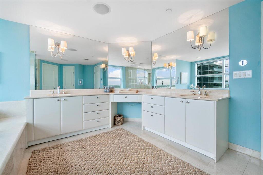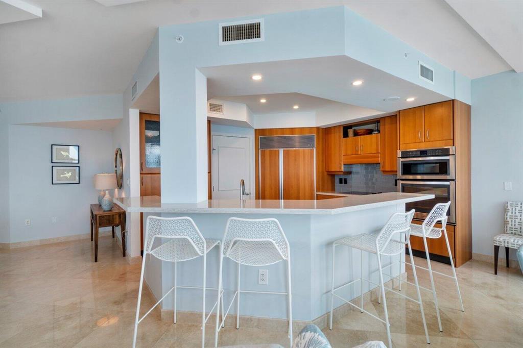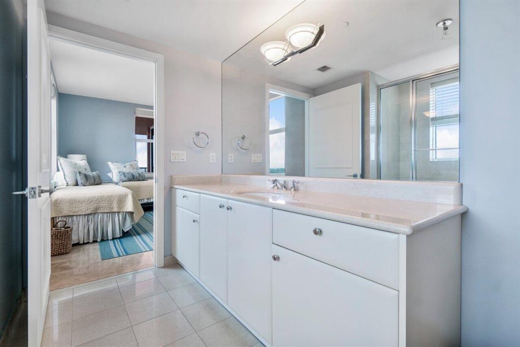 High floor unit with gorgeous views of the ocean, city and intracoastal waterway. The unit is being offered furnished. Personal effects & the two bird paintings on front entry wall are excluded. The Palms is a full service luxury building offering resort style living including valet parking, gated security, fitness centers and more!