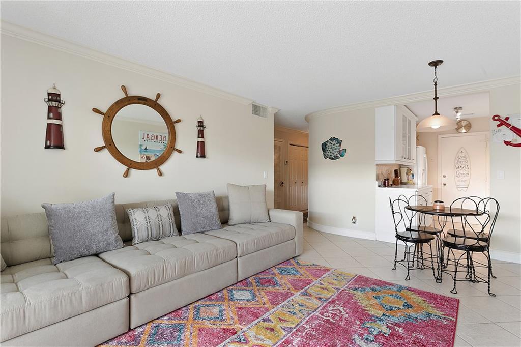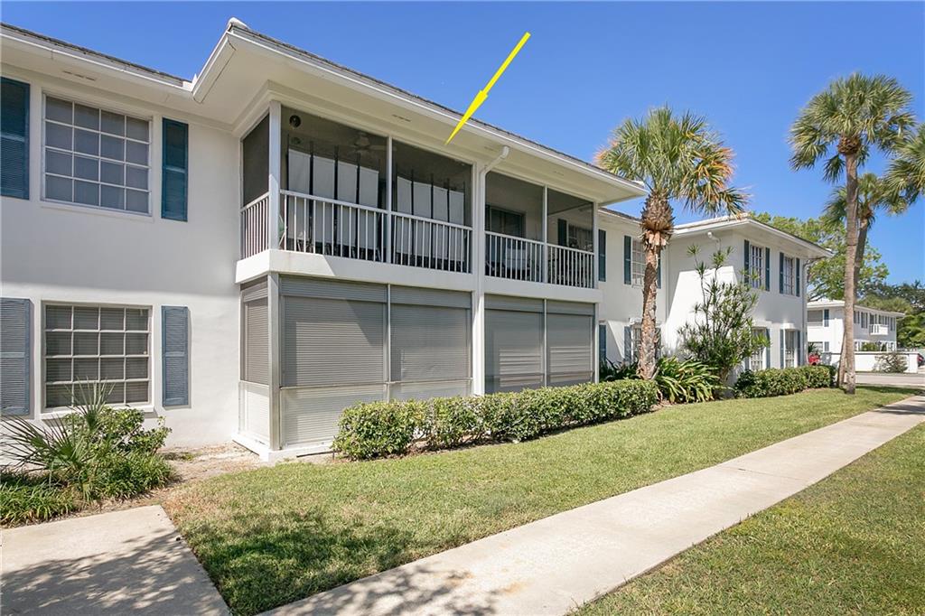 Lovely top floor unit with screened in balcony only 10 minutes from the beach. This beautiful unit features updated kitchen and appliances, white cabinetry, and an updated master bathroom. Tile floors throughout living areas. Master Bedroom features walk-in closet. The community has a heated pool with rentable cabana's, sauna and gym as well as a picnic/BBQ area with grill, shuffle board court, billiards room, and a beautiful courtyard just outside a large entertainment room for your events. Storage unit comes with condo. Laundry is inside the building. This condo is a must see!