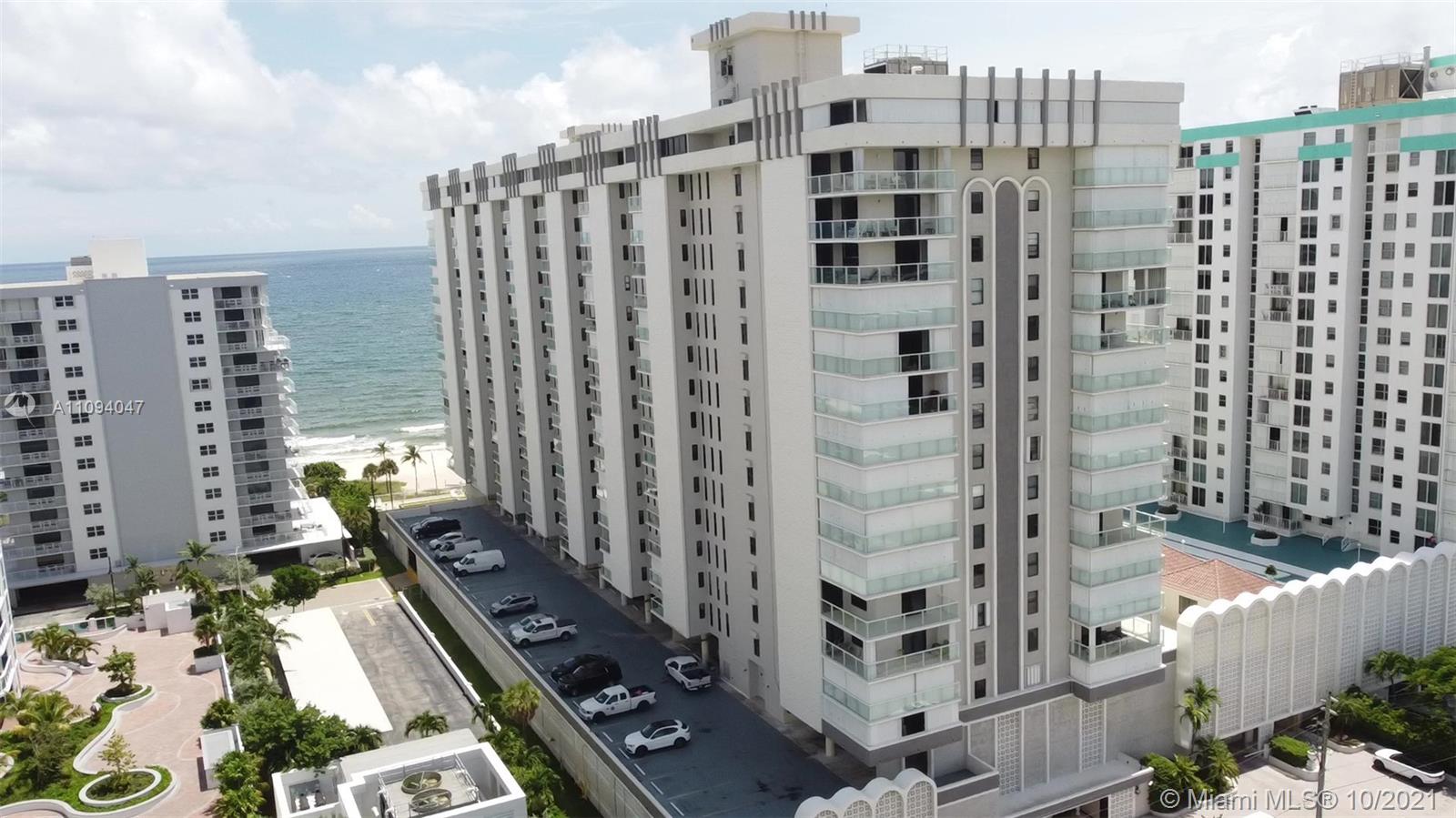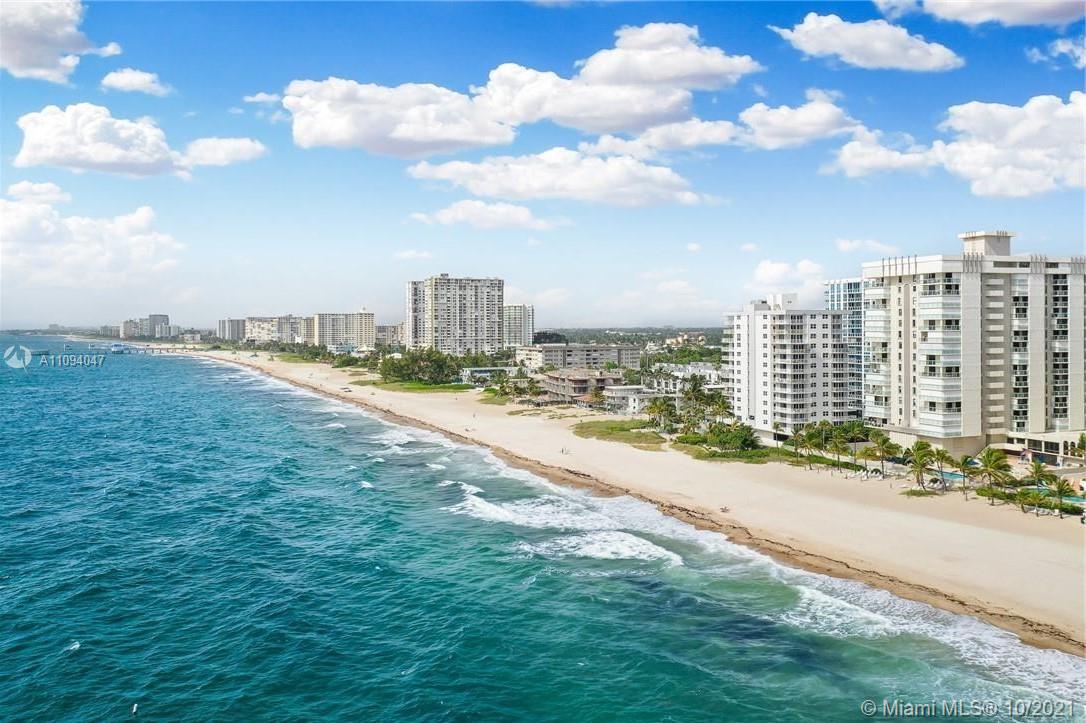 DRASTICALLY REDUCED TO SELL / Ocean Front Luxury BLDG/Apartment 2BR, 2BA, 1,500 Sq/Ft. (Large) CORNER UNIT that is tiled through out and bathrooms are updated. This unit has an L wrapped around spacious corner balcony. The building is secure and has 24/7 Security @ garage entrance. Building has ample guest parking spaces. There are washers and dryers on every floor for your convenience. Just outside your apartment door is a large floor to ceiling storage room. The building is close to Atlantic Blvd and all the new restaurants and shopping. You will also be close to the bridge and a direct route to Federal Highway and I-95. This building has great views to the ocean and it offers luxury living on the beach. >> Most of the furniture is included. Seller willing to finance up to $250,000 <<