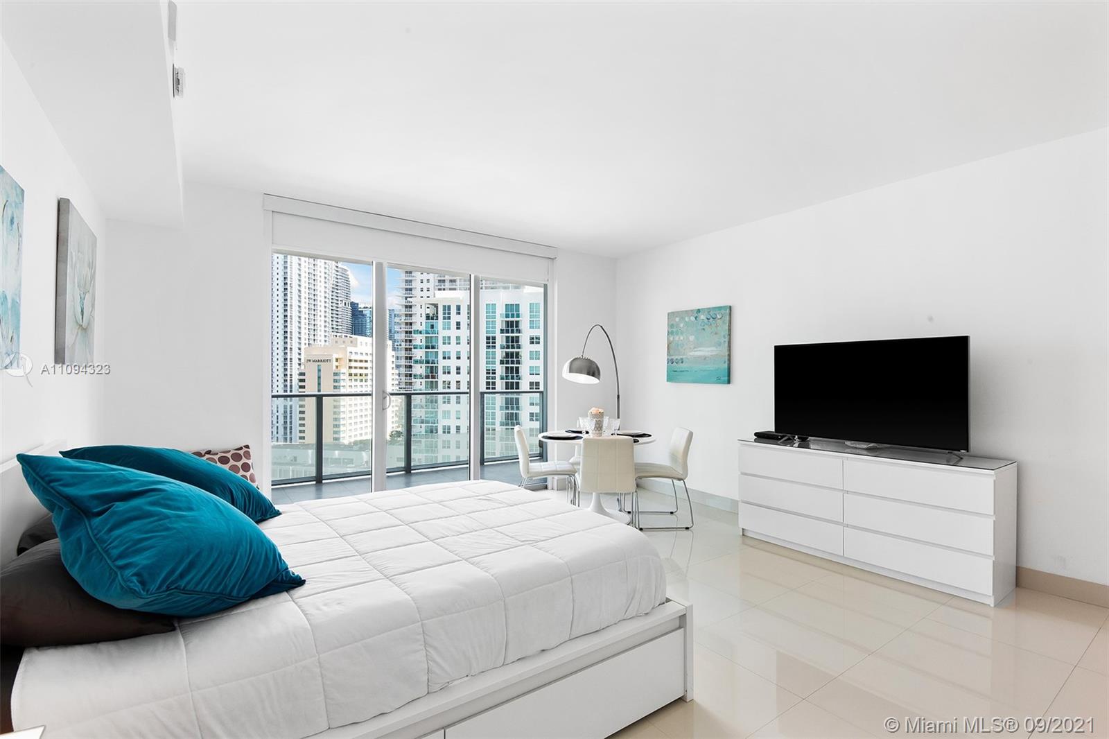 Look no further for the perfect investment! Beautiful Studio with floor-to-ceiling windows overlooking the bay and the gorgeous Miami skyline. Bright and spacious, tile floor throughout, huge balcony. Among its wonderful amenities, you will find a 24-hr concierge center, 24-hr valet guest service, resort-style mezzanine with 50-foot lap pool & heated whirlpool, deluxe health spa, high-definition theater, fully equipped state-of-the-art fitness center, and an exclusive roof sky-deck with its own private pool, along with a children's playroom and several snazzy lounges. Walking distance to shops and restaurants. Excellent investment, minimum 30-day lease and 12 leases per year.