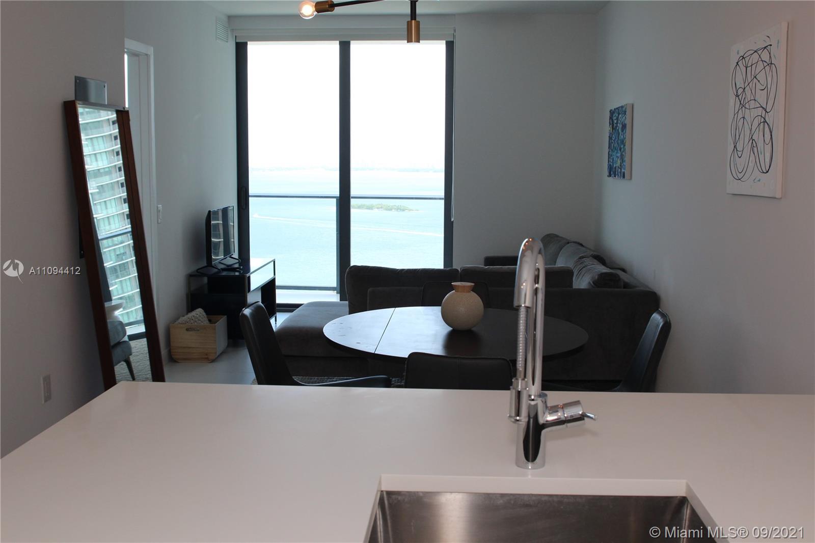 Priced to sell, unit with direct views to the Bay and the Ocean. Beautiful finishes, Italian porcelain tile throughout, Italkraft kitchen cabinets, BOSCH appliances, excellent layout, King size bed in the bedroom, ample terrace. Building features incredible designer finishes by renown Karim Rashid including: tennis court, pool, cabanas, BBQ grills, lounge beds, spa, sauna, treatment rooms, state-of-the-art fitness center, multimedia room, billiards, kids room, club room and STUNNING 46th floor pool deck and hot spa with amazing views. Unit rented until December 2021 at $2250 per month. Tenant could move out with 45 day notice.