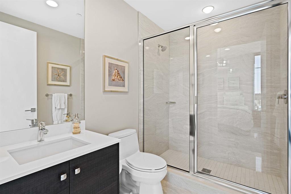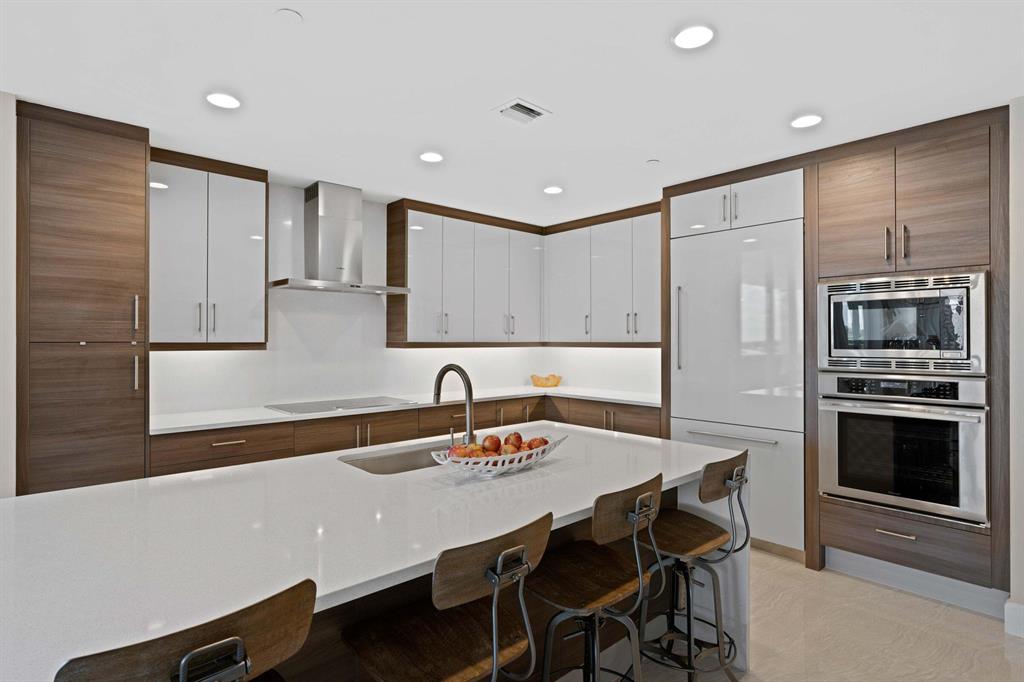 Spectacular condo sold furnished. Privately access this 3 bedroom, 3.5 bathrooms residence from a controlled key elevator. Over 3,000 sq.ft of living space are wrapped by an oversized covered terrace with partial views of the marina. 10ft ceilings in living areas and main suite, 36in porcelain tile in living area, kitchen, baths. Open kitchen with Thermador refrigerator/freezer, convection oven, microwave, cooktop, dishwasher, disposal. Architectural grade cabinetry with refrigerator & dishwasher panels. Working kitchen island with quartz style top and waterfalls sits four. Main suite offers his/her walk-in closets, glass enclosed shower with handheld Grohe sprayer, under-mounted sinks, quartz vanity top & tub deck, oversized tub, private water closets with Kohler elongated toilets.