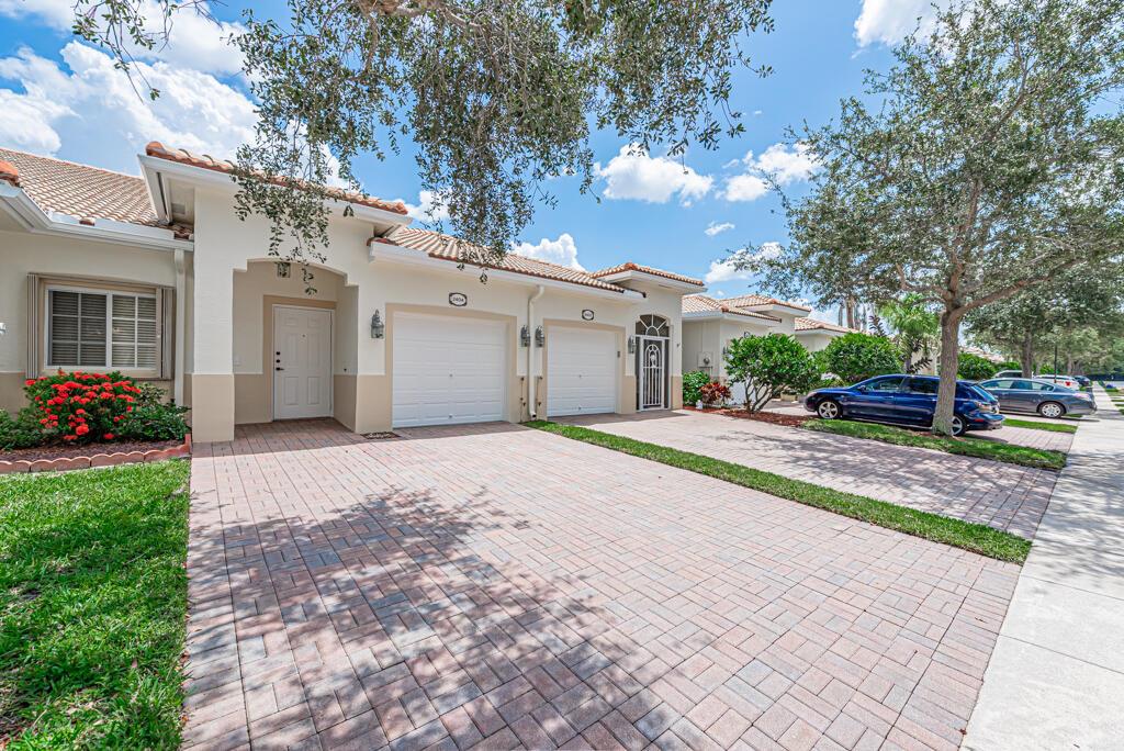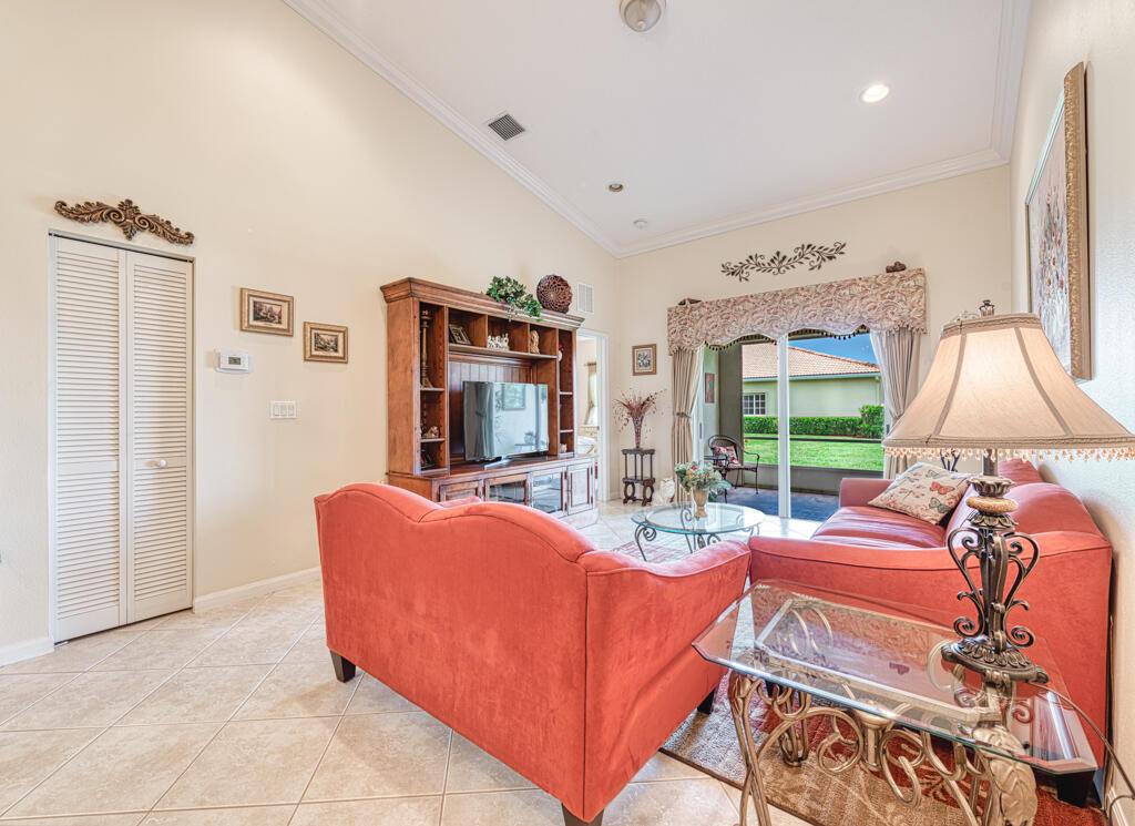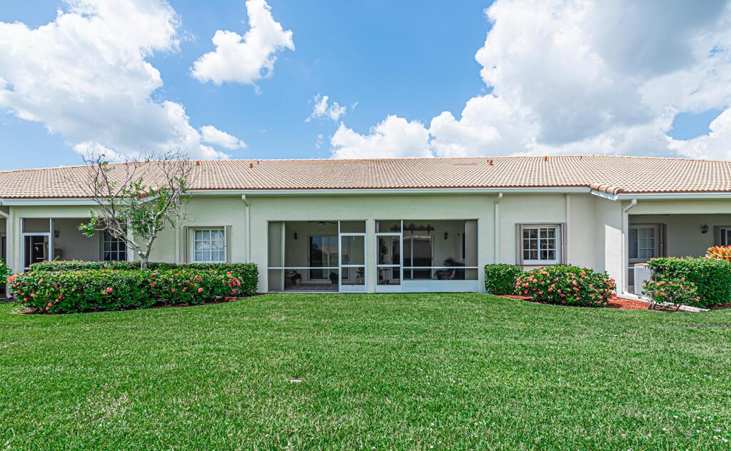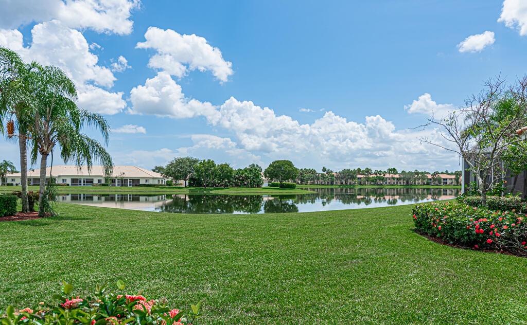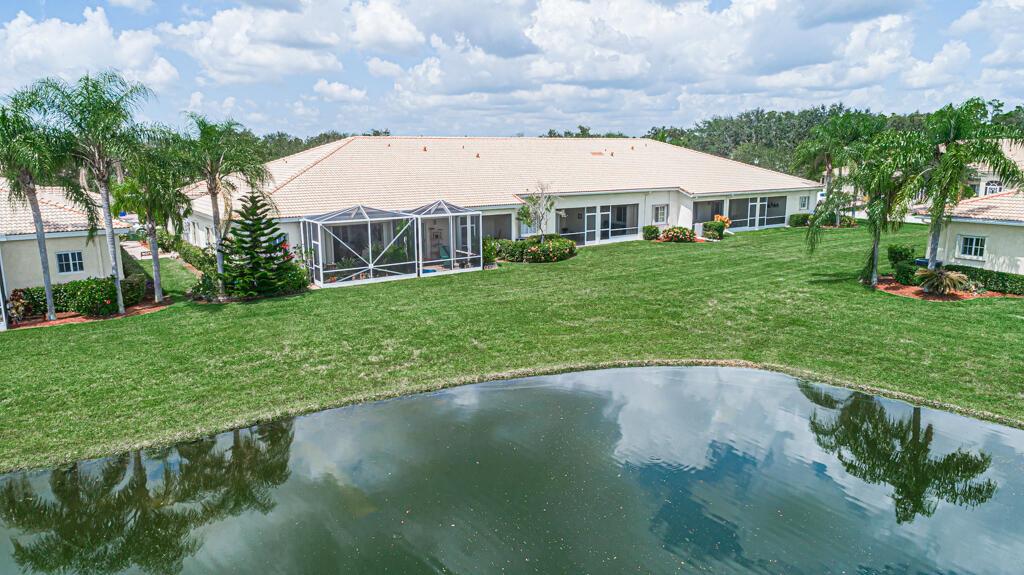 Click on the Walking Tour to view this very well maintained lakefront villa, 2 bedrooms 2 full baths, living room, dining area, kitchen with lots of counter space. View of the lake, sit on the screen roofed patio watch the wildlife enjoy the sunrise. Almost new AC 12/2019 and Water heater 05/2018. This is a one owner villa! The community is very active featuring a 54,000 square foot club house, 3 pools and 1 of the pools is a resistance aqua track, gym, sauna, locker room, card room, party room, tennis, pickleball, bocce ball and so much more, all in a guard gated community. HOA covers cable including premium channels and internet Near shopping, restaurants and not too far from Rosemary Square and all of its activities. This villa is covered by a home warranty for your peace of mind