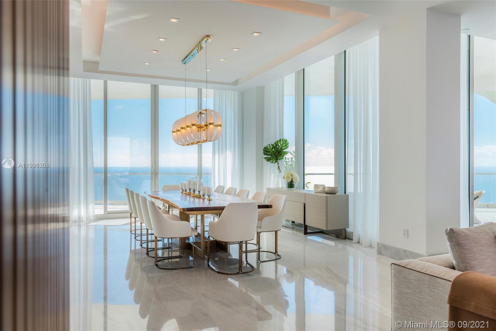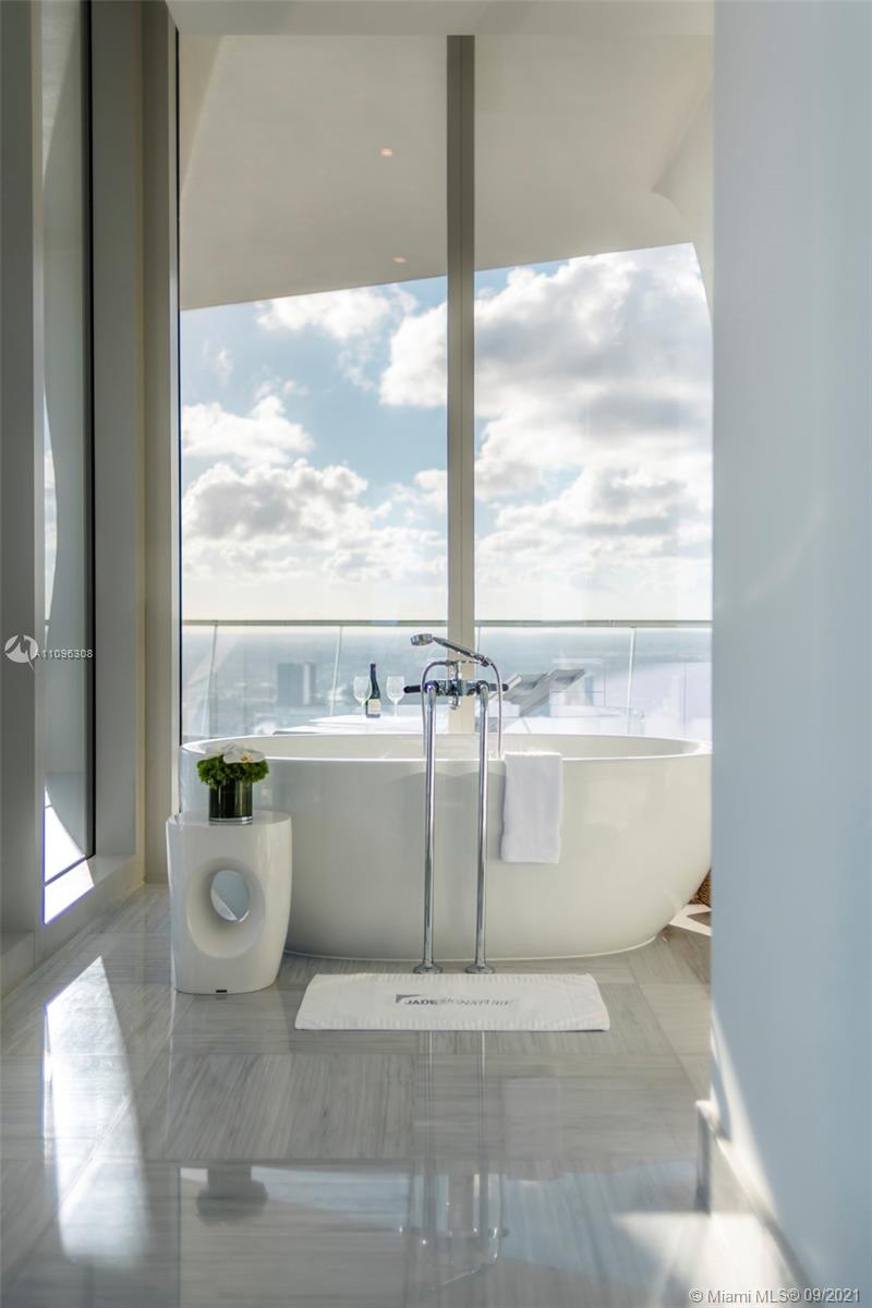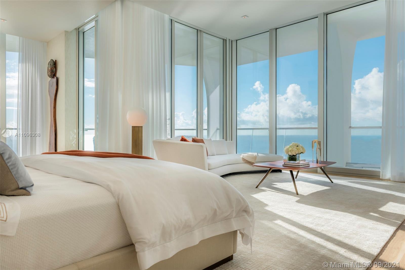 One-of-a-kind two-story Signature Upper Penthouse with 360° striking views. 12ft ceilings throughout and over 7,500 of a wrap-around balcony and an oversized jacuzzi overlooking the ocean. Stunningly furnished and ready to move in with just your toothbrush! Up to 7 bedrooms/9.5 bath, 2 level master bedroom with private gym, sauna, steam + jacuzzi bath overlooking downtown Miami, the ocean + intracoastal. A palace in the sky!