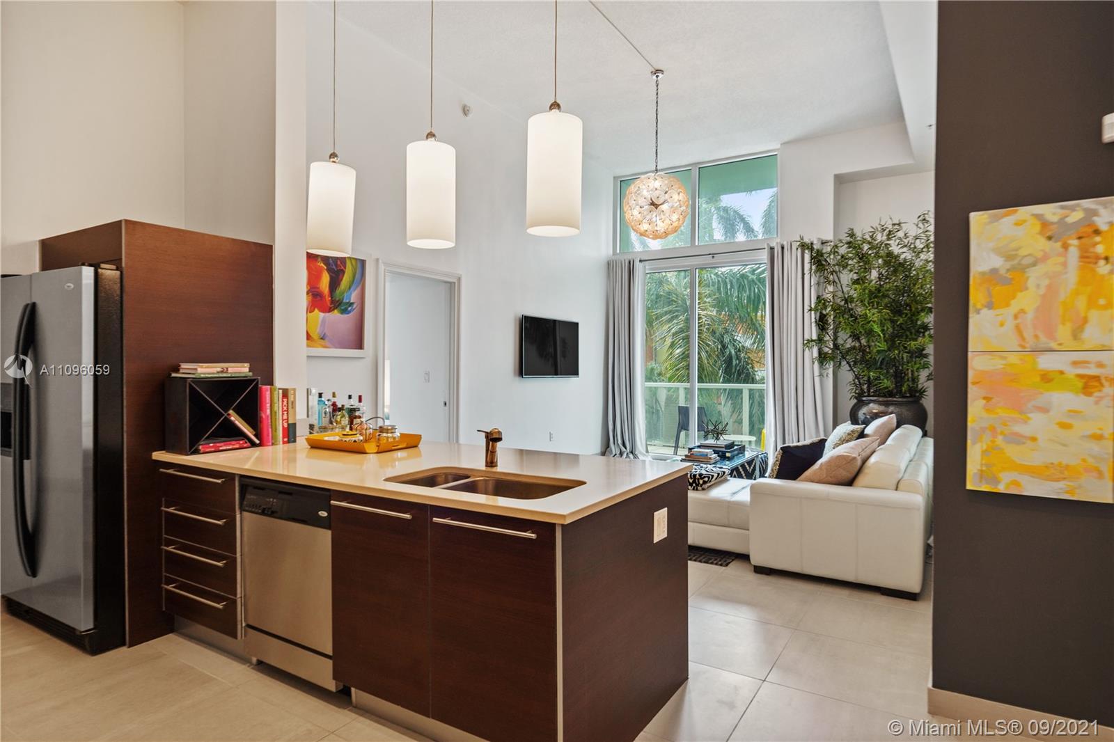 Modern and spacious 1 bed 1 bath 753 sq ft unit offering a spacious open floor plan, featuring Italian dark kitchen cabinetry and kitchen bar. Unit is sold furnished. Minutes from shops and restaurants. A must see.