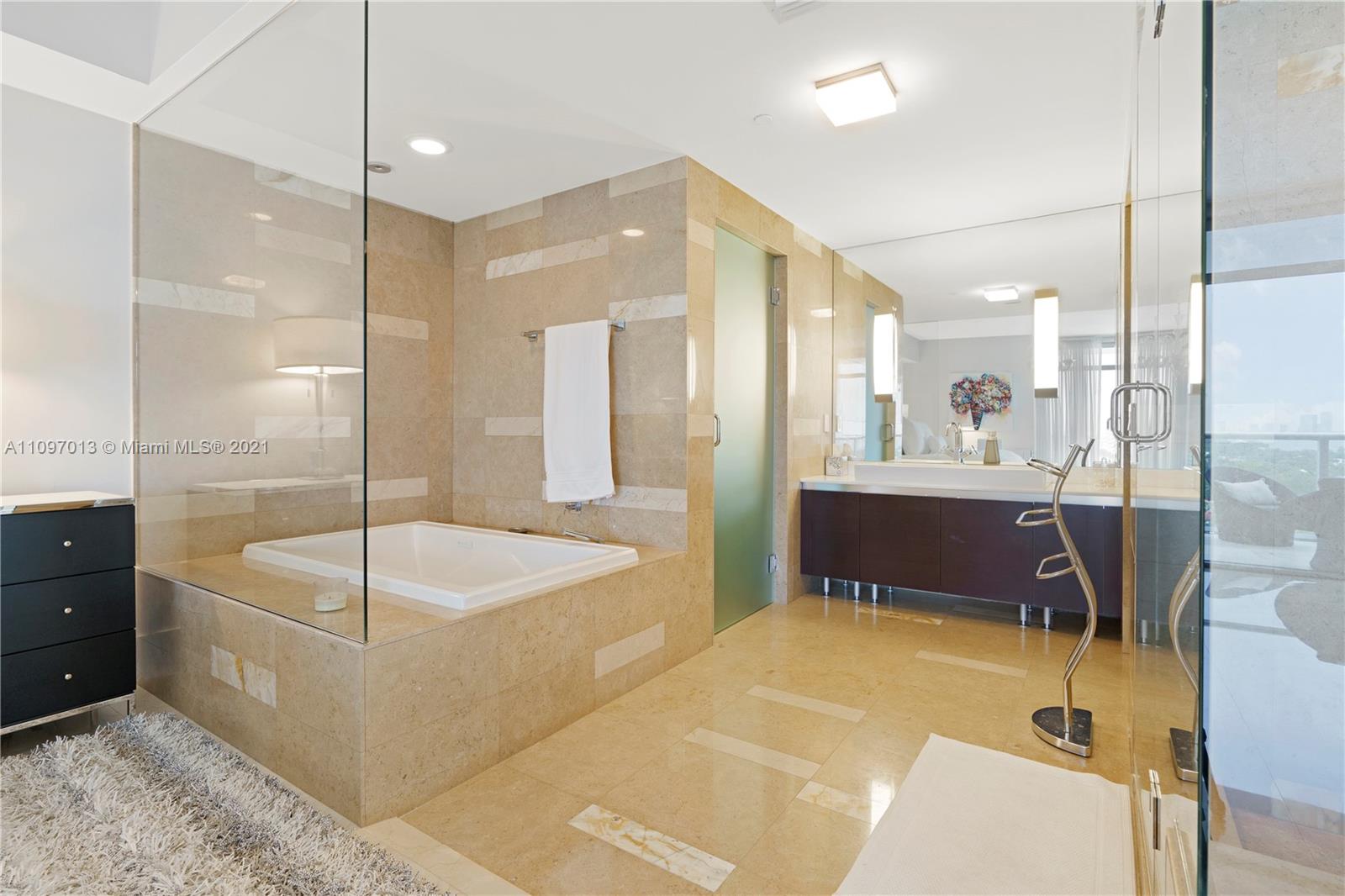 Rarely available High Floor at The Caribbean. Unobstructed Ocean, Bay, & City Views. The 14th Floor corner 2BR/2.5BA condo with over 700 sq ft. wrap-around balcony is a must see. Floor to ceiling windows throughout. European Kitchen w/Miele appliances, sub-zero, gas range. Strong focus on clean lines with marble flooring throughout. Master bedroom has glass walls to capture the spectacular unobstructed views day and night. Split floor plan for ultimate privacy. Private & Secure living. Building offers Beach and Pool Service, 24 Hr Staff, Gym, Private wine cellar & humidor. Located in Miami Beach Faena District. The Caribbean is Beachfront, with the Miami Beach Boardwalk in your backyard. Nearby hot spots include Fontainebleau, Soho Beach House, Faena and Edition.
