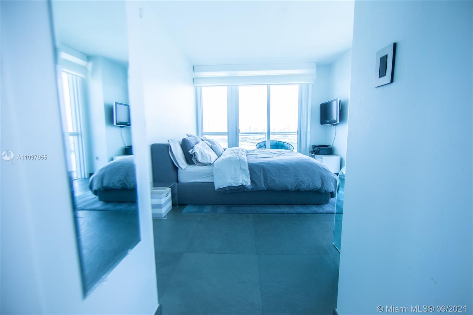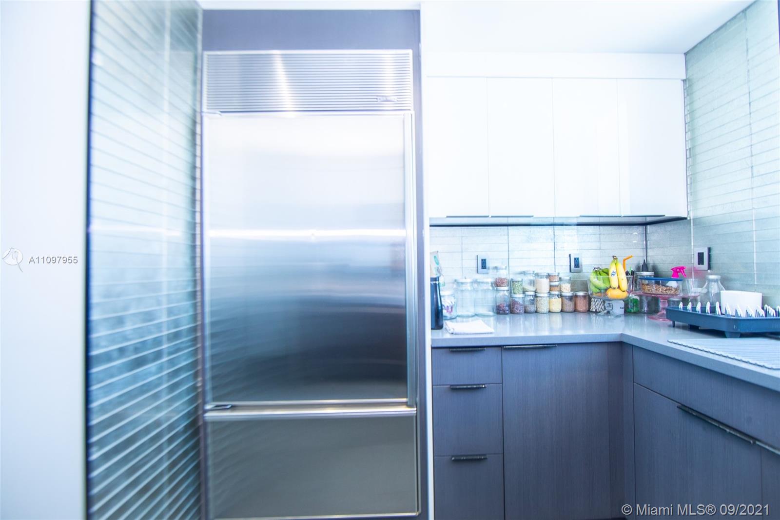 This stunning 2 bed, 2 bath, corner-unit in the Bentley Bay features a wrap around balcony w/ gorgeous bay & ocean views. The entire apartment has been renovated, including kitchen, bathroom & closet upgrades using high-end Italian materials & custom workmanship. Electric operated blackout panels & sheers have also been installed in both bedrooms; as well as modern LED lights throughout entire apartment. Both modern, fully renovated bathrooms have micro-cement floors, custom cabinetry, & quartz countertops. A free-standing tub is the focal point of the master bathroom, along with a complimentary double-sink. The kitchen includes a Sub Zero refrigerator, Gaggenau appliances, quartz countertops, glass tile backsplash, soft-close drawers & additional cabinetry for extra storage.