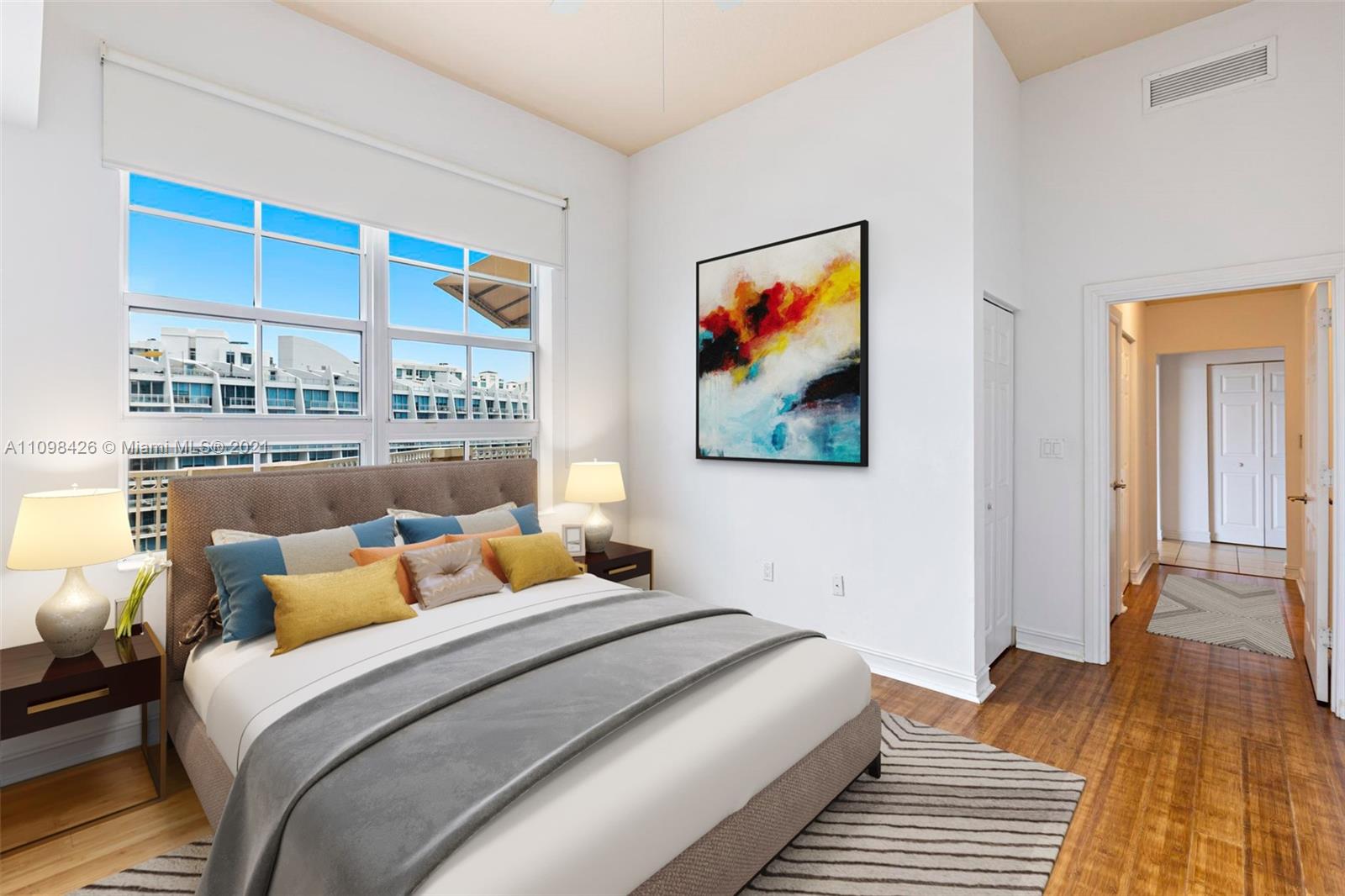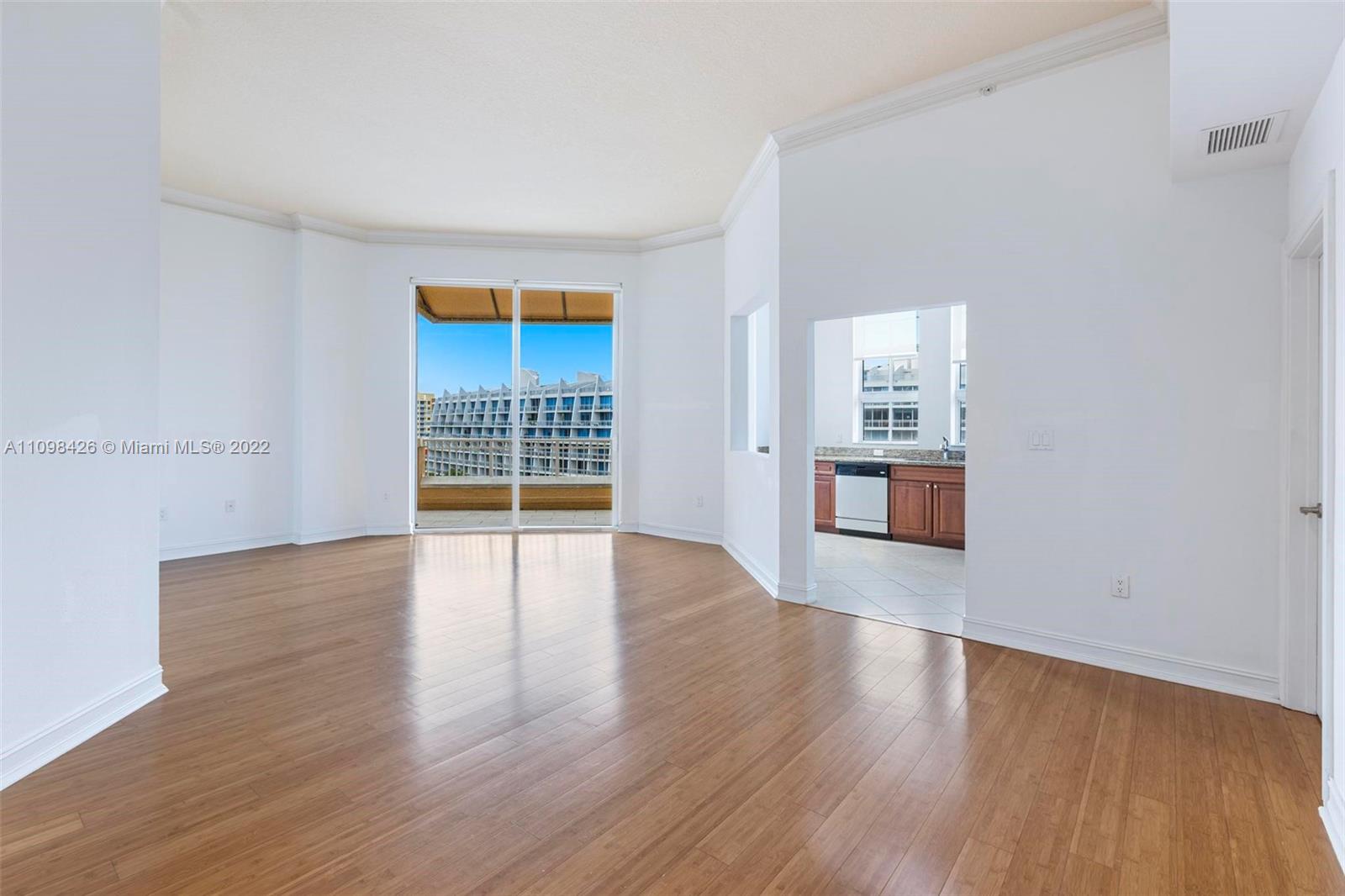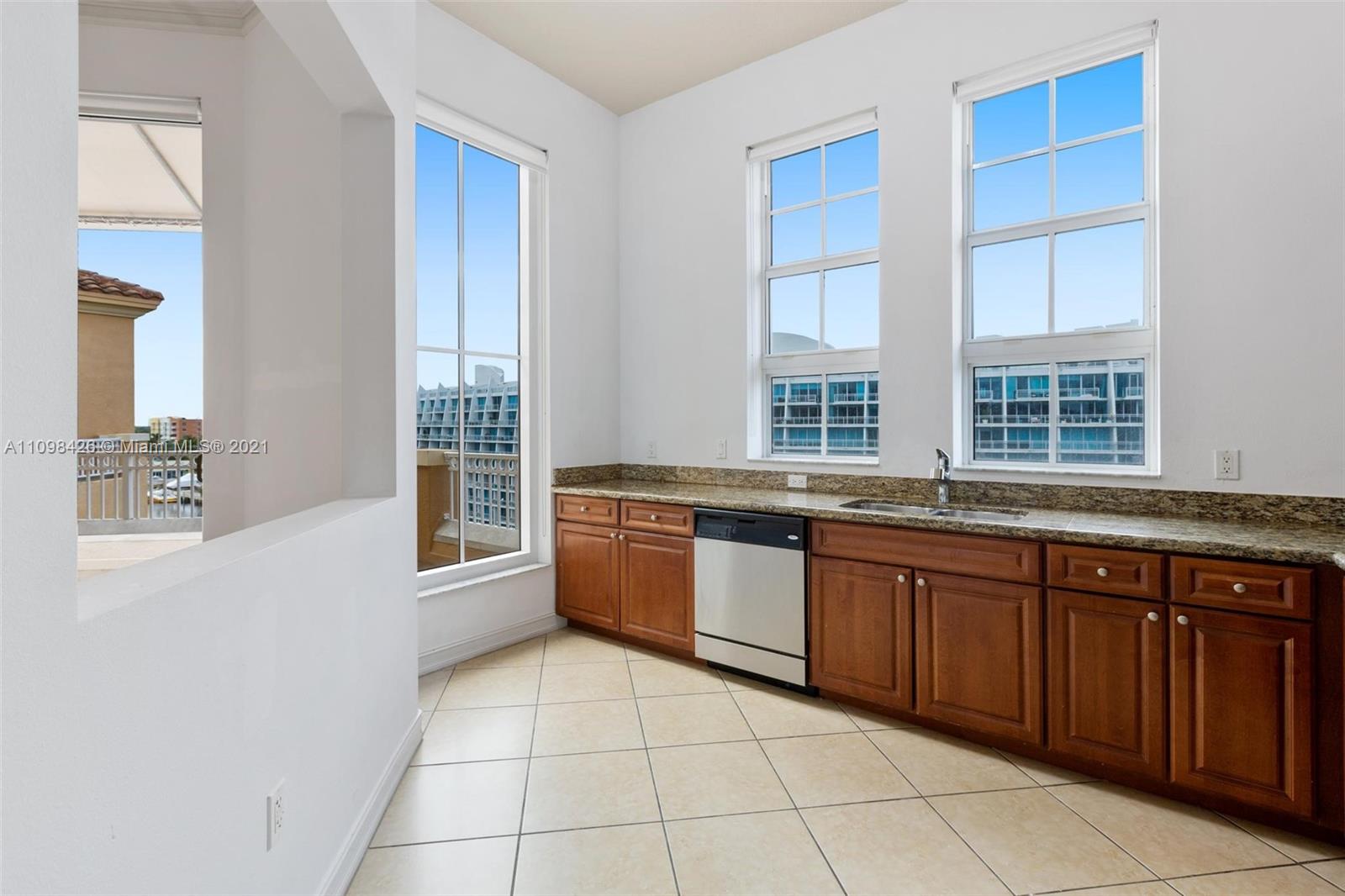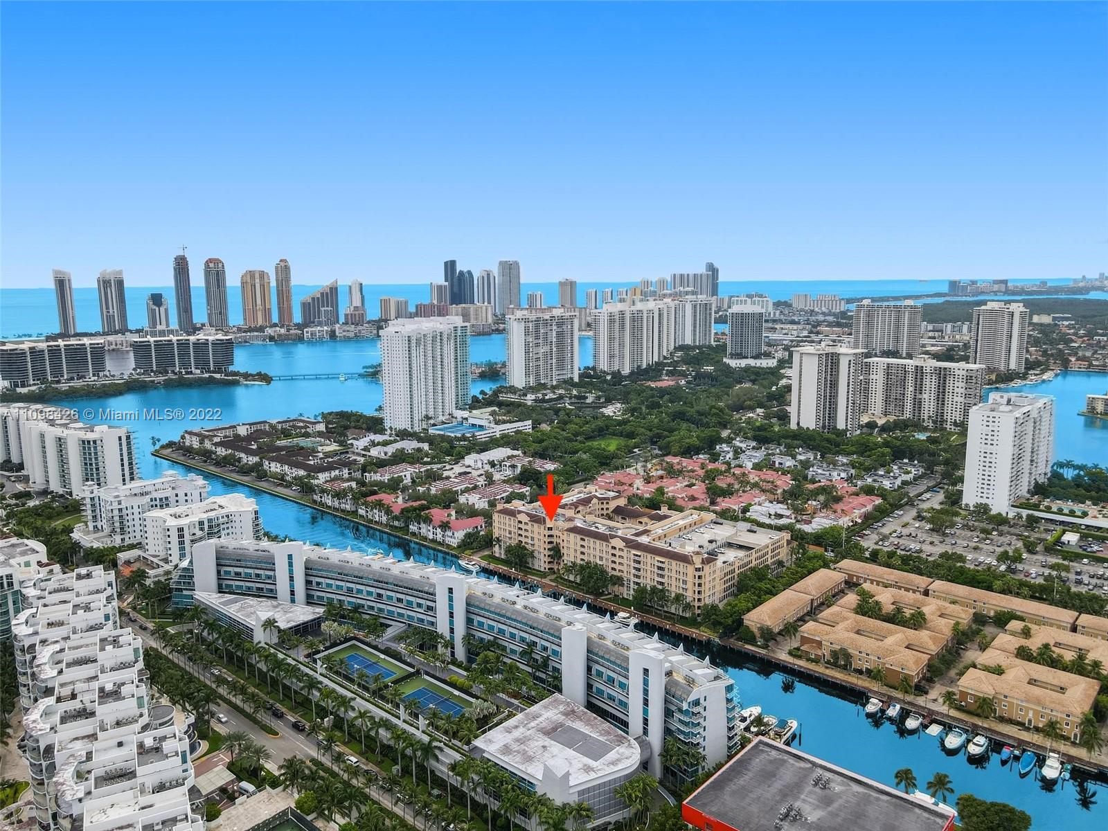 Best line, rarely available. Beautiful Top floor 2 bedroom 2 bath with open layout, 12 foot ceilings and a large covered terrace overlooking the water. Freshly painted. Brand new water heater and brand new AC. Washer and dryer in unit. 2 covered parking spots and a huge Storage room located on 6th floor. Alaqua offers 5 star amenities: a newly renovated waterside dock, state-of-the-art fitness center overlooking the water, hot tub, pool, playground, business center, 24-hour security, valet and more. Just a short walk to Aventura Mall, Publix, restaurants, and beaches. A+ rated schools and Brightline station at Aventura Mall to make travel even easier. Easy to show.