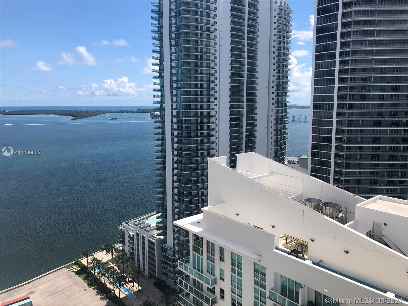 Move in ready 2/2 SPLIT floor plan unit with laminate floors throughout. Water & skyline views from private balcony on 34th floor. LOW $729 maint fees include water, basic cable, internet & walls out insurance. This building has no rental restrictions and is located in the heart of Brickell. Perfect for short term rentals/air B & B.