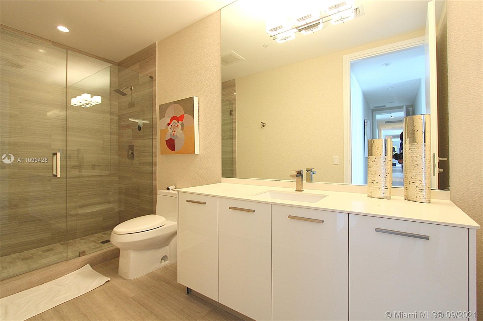 Sweeping & unobstructed water views from this 43rd floor penthouse located in the Brickell House Condo! Built in 2014, this magnificent high rise offers high end amenities which include 2 pools, gym, spa and valet service. Double main entry way foyer leads you to an ample and open main living area with floor to ceiling glass throughout. Water views can be had from almost all areas of this unit. Split floor plan provides a well-appointed master suite including enormous walk-in closet, master bathroom with soaking tub, separate shower and double sink vanity. Maids quarter next to laundry area. Balcony spans the complete length of unit with access points from all rooms. This is a one of a kind unit not to be missed!