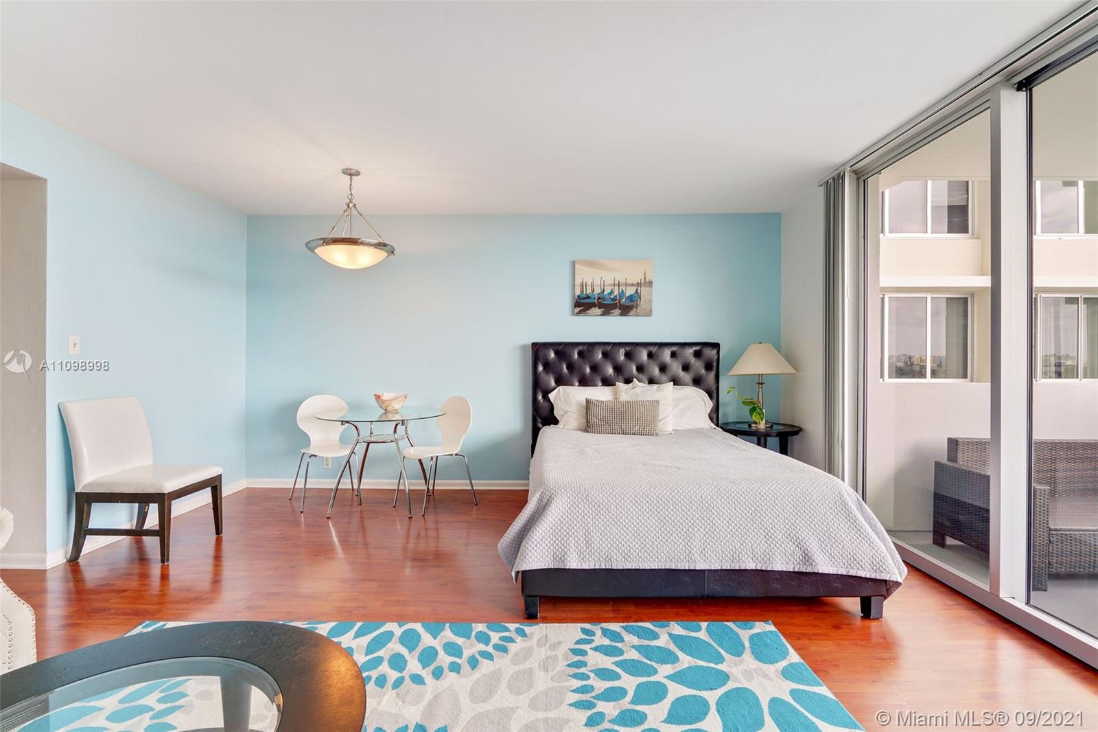 Bayfront in South Beach. Bright studio with private balcony and East view providing abundant morning sunshine. Unit has been well maintained and is very comfortable. Ample closet space with a walk-in closet as well as additional closet, and appealing wood floors. The Mirador North is a full-amenity bay front building in the heart of South Beach. Building offers free high speed cable and internet, laundry room on each floor, 24Hr valet, bike storage and on site management. New impact windows and doors. Luxury amenities include a recently renovated gym, bay front swimming pool, market, conference room, secured lobby and boat dock availability. Live a short distance to everything South Beach has to offer.