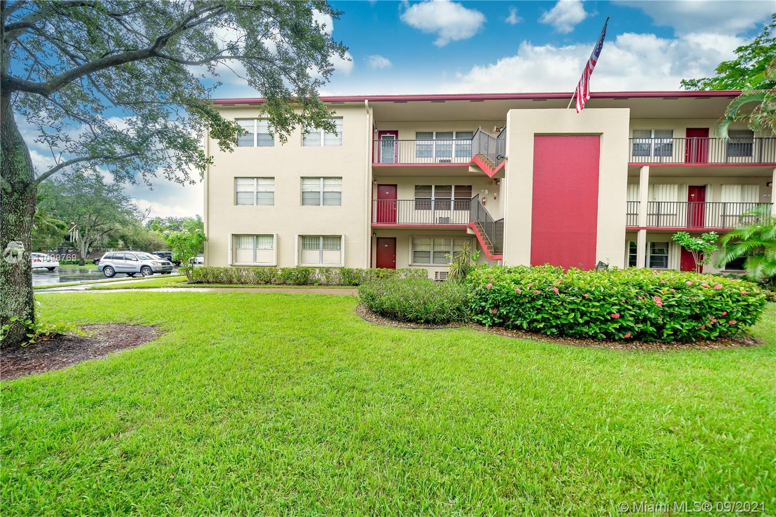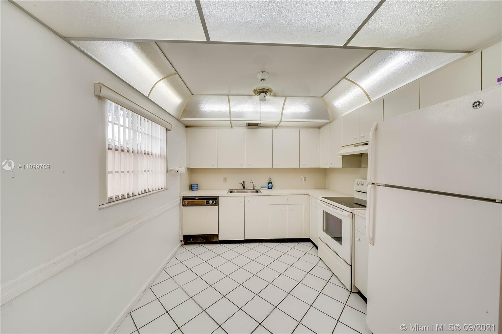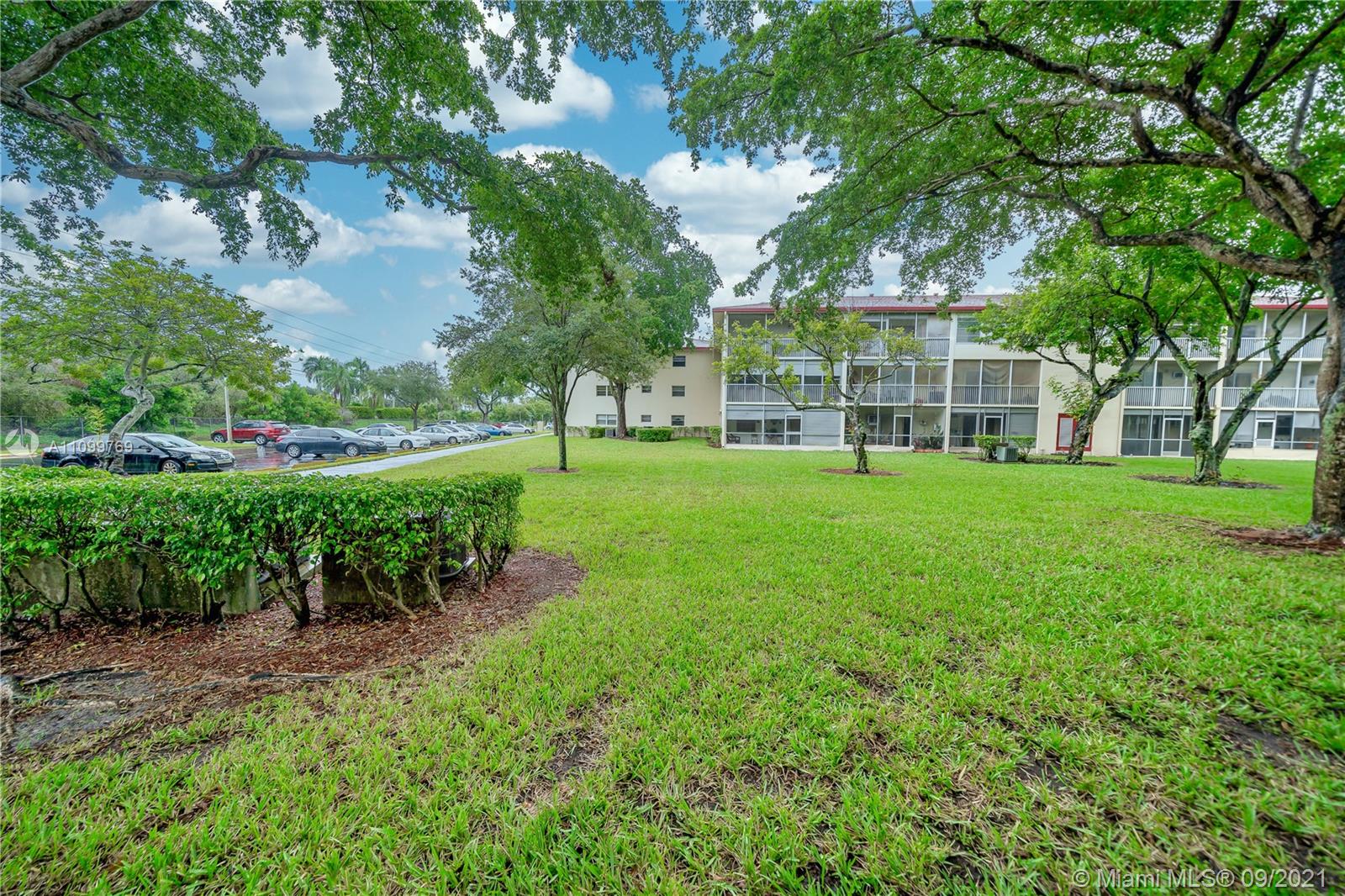 2 bedrooms/2 bathrooms corner unit located on the first floor with a beautiful garden view. Enjoy the view of the open green space while sitting on your screened balcony. Kitchen and bathroom cabinets are well kept and maintained. The corner condo is flooded with tons of natural light, a great layout and spacious rooms. Laundry is conveniently located on the same floor. Great investment opportunity. Resort Style 55+ community in Pembroke Pines with on-site amenities that include a pool, gym, movie theater, golfing, clubhouse, local shuttle service and so much more. Century Village is near the outdoor shops of Pembroke Gardens, I-75 and many shopping centers.