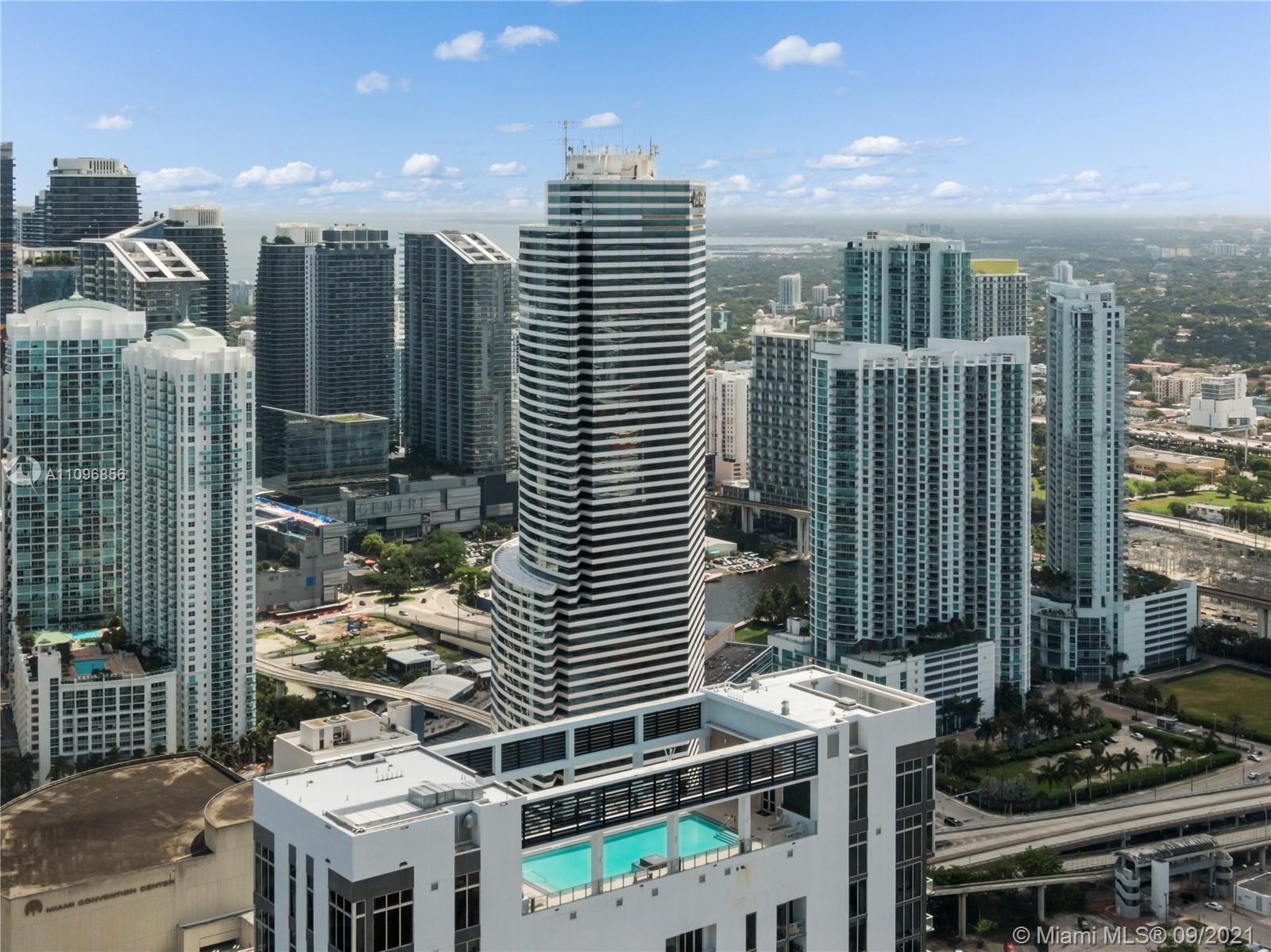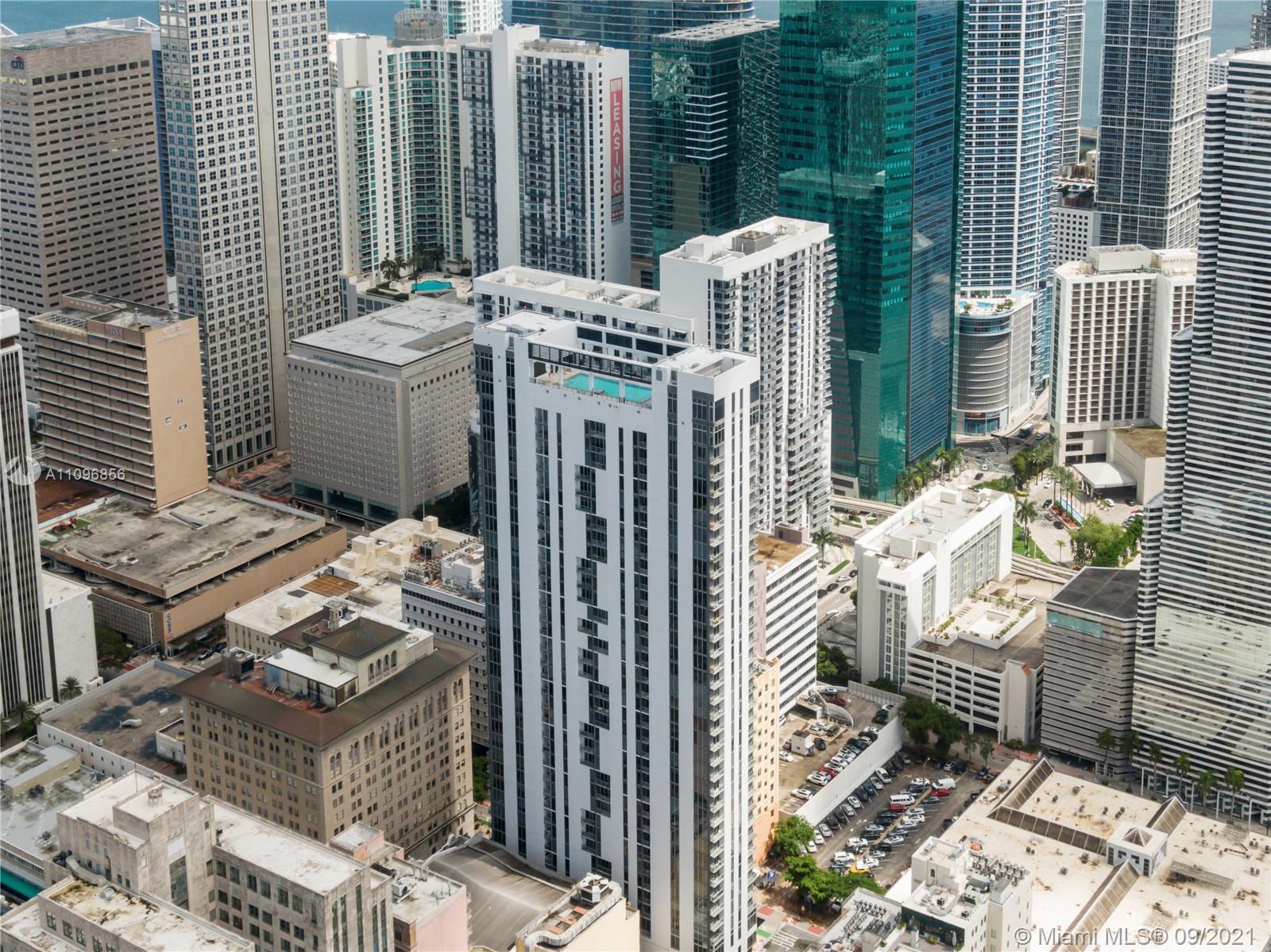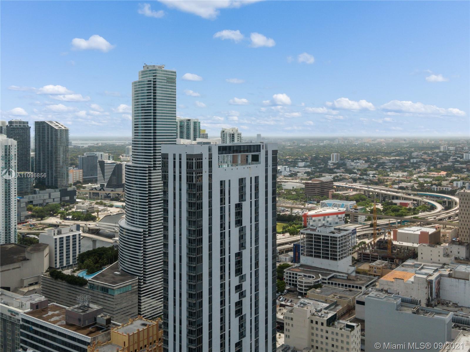 Stunning Least expensive higher floor unit 1/1 open floor plan at Centro Downtown Miami w/ a great view of the Miami Skyline located in the heart of Downtown Miami & steps to Brickell area. This apt features a modern design w polished concrete floors, 10 ft. ceilings, walking closet, Italian cabinetry & stainless steel appliances. Washer & dryer inside of unit. Walking distance to restaurants & entertainments! Amenities: 24 hrs. Concierge, 24 hrs. Valet, Pool roof top, gym, TV room, lounge, etc. Unit is currently rented month to month basis. Building allows min 30 day rentals.