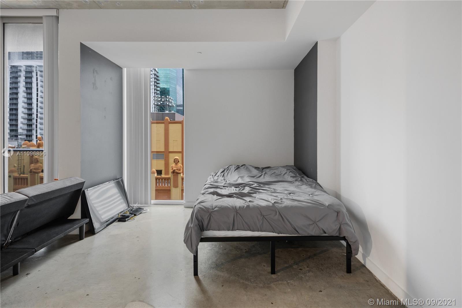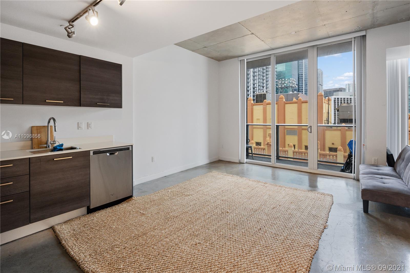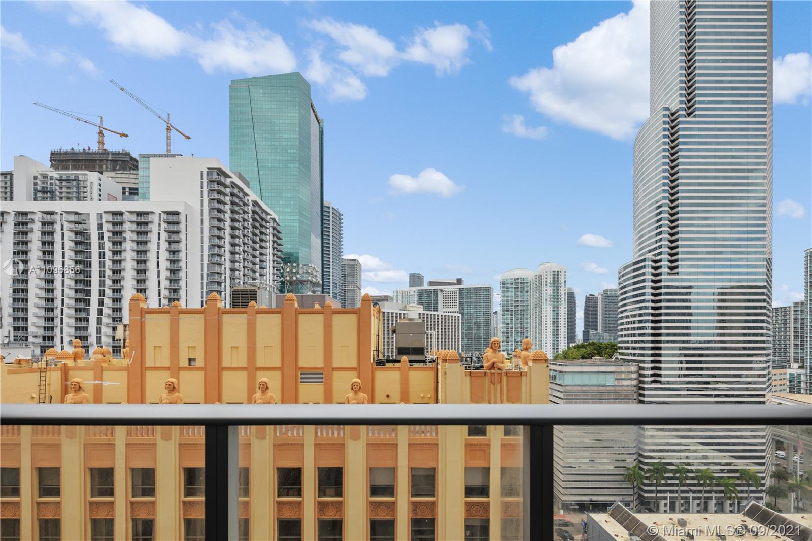 Stunning Least expensive higher floor unit 1/1 open floor plan at Centro Downtown Miami w/ a great view of the Miami Skyline located in the heart of Downtown Miami & steps to Brickell area. This apt features a modern design w polished concrete floors, 10 ft. ceilings, walking closet, Italian cabinetry & stainless steel appliances. Washer & dryer inside of unit. Walking distance to restaurants & entertainments! Amenities: 24 hrs. Concierge, 24 hrs. Valet, Pool roof top, gym, TV room, lounge, etc. Unit is currently rented month to month basis. Building allows min 30 day rentals.