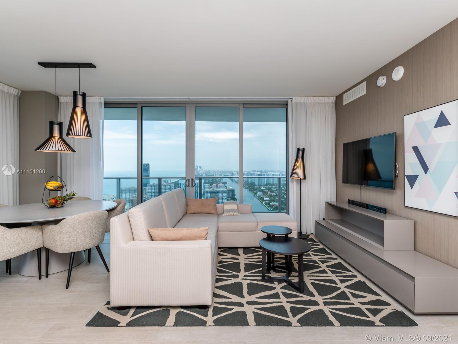 BUYERS DREAM BUY IT RENT IT OR USE IT. WOW ! WHAT A VIEW> HIGH ABOVE EVERYTHING AND EVERYONE DIRECT OCEAN 2 BR 2 BATH PENTHOUSE CORNER WRAP AROUND 45 FT TERRACE,OCEAN INTRA & CITY VIEWS> NORTH/SOUTH/EAST & WEST FOR YOU TO ENJOY SUNRISES/SUNSETS/BOATS/PLANES SEE IT ALL! FURNISHED & ACCESSORIZED READY TO USE AS RESIDENCE,VACATION PARADISE, RENT IN HOTEL PROGRAM OR AIRBNB *GREAT RENTAL INCOME* THIS UNIT HAS IT ALL! STATE OF THE ART DESIGN,VIEWS, LOCATION & 5 STAR COMPLEX *BEACH CLUB & SERVICE/BAR,2 POOLS, LAWN AREA,BBQ,OUTSIDE MOVIES, SNACKBAR,REST'S,TENNIS, RACQUETBALL/BASKETBALL,SPA,FITNESS, BUSINESS CENTER/PARTY ROOM *BEST FOR LAST 42ND FL PRIVATE OWNERS CLUB,TERRACE, BBQ'S, GAZEBO, JACUZZI, INTERIOR LOUNGE TV'S/LIVING/DINING AREA! PERFECT TIME TO BUY "FORMULA ONE AND ART BASEL COMING *