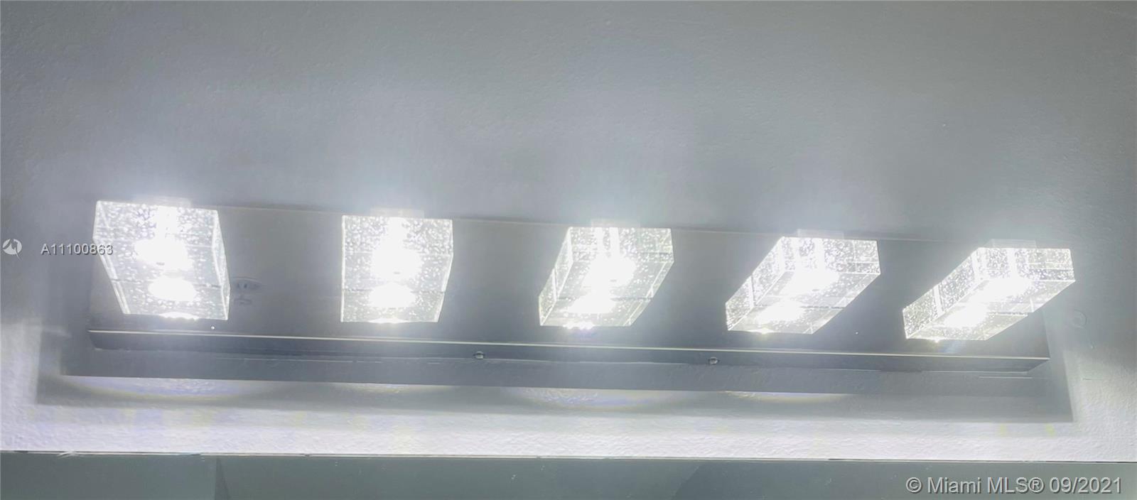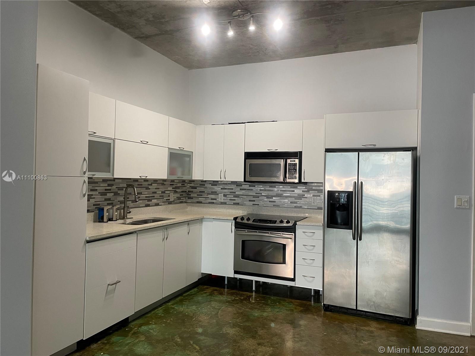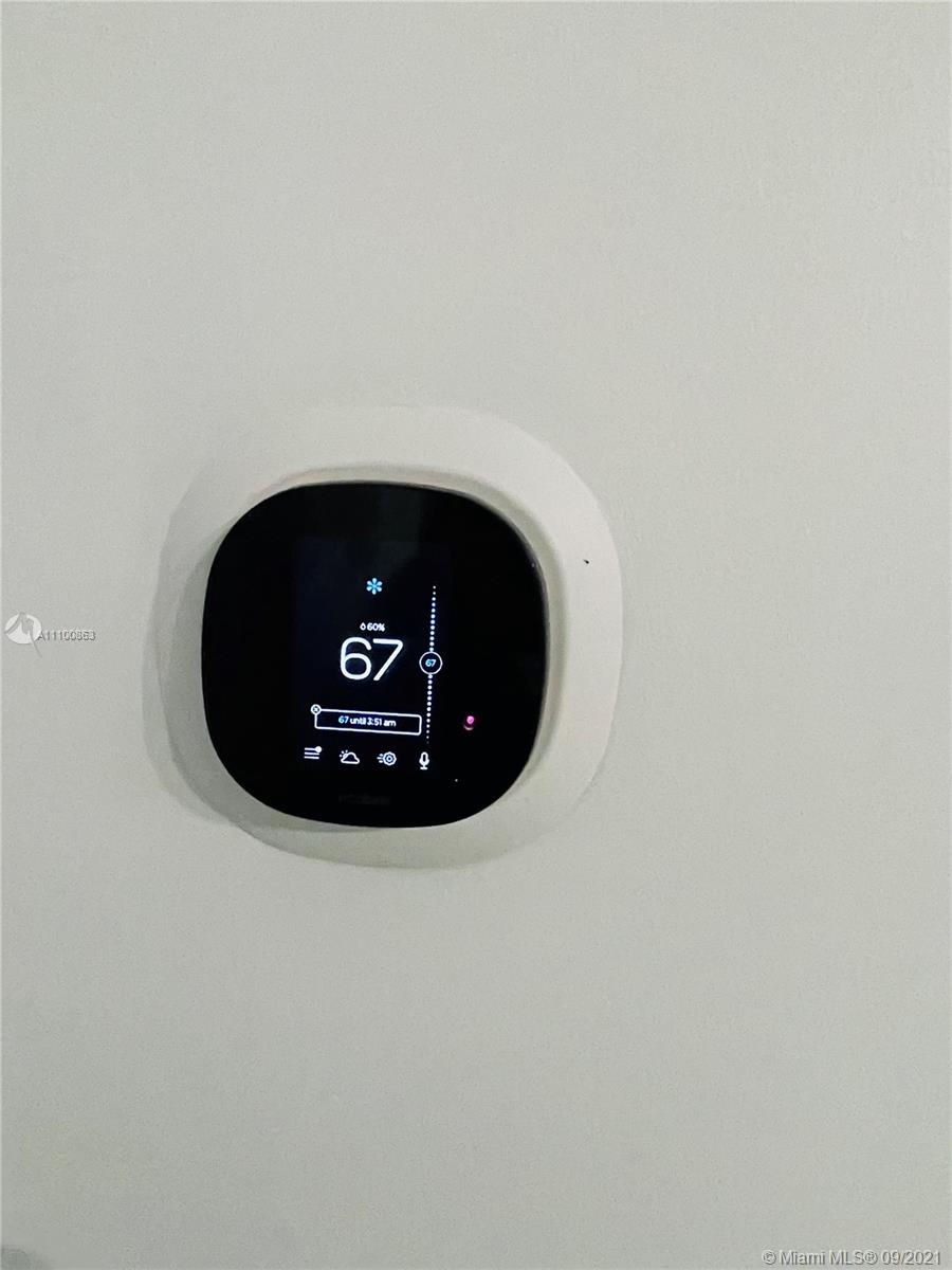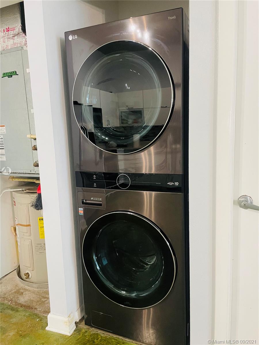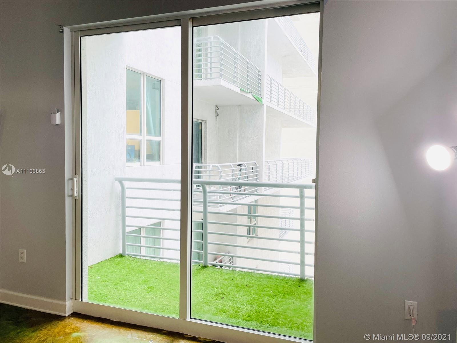 Beautifully updated and well-kept modern unit on the 8th floor. This one bedroom and one bathroom unit offers: concrete and tile floors, freshly painted walls; new air conditioner, smart Ecobee thermostat with Alexa; new smart LG washer and dryer; a clean white, silver: grey backsplash, trash cabinet; new kitchen and bathroom faucets; newly installed toilet; new dimmable bathroom lighting. The bedroom was recently enclosed with a full partition wall and door for privacy and total darkness to sleep, including a motorized shade. The bedroom closet has ELFA organizers and recently installed doors. The bedroom and living room include smart Roku TVs and Philips Hue lighting. Hurricane impact door and window. Bonus: balcony doggy door. The balcony is covered in beautiful, faux green grass.