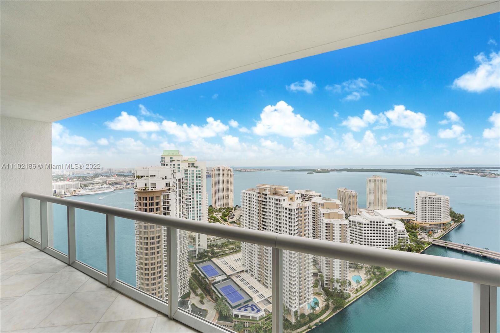 Amazing price in the highly desired "07". Breathtaking views from this impeccable 2 bedrooms + den/ 2 bathrooms. Direct views on the Bay, Brickell Key and Port of Miami from the 40th floor. Unit features white marble floors, electric black out shades in every room and California closets. The amenities include, 24 hr front desk service, valet, high end spa, fitness center, infinity pool on-site restaurants and more.