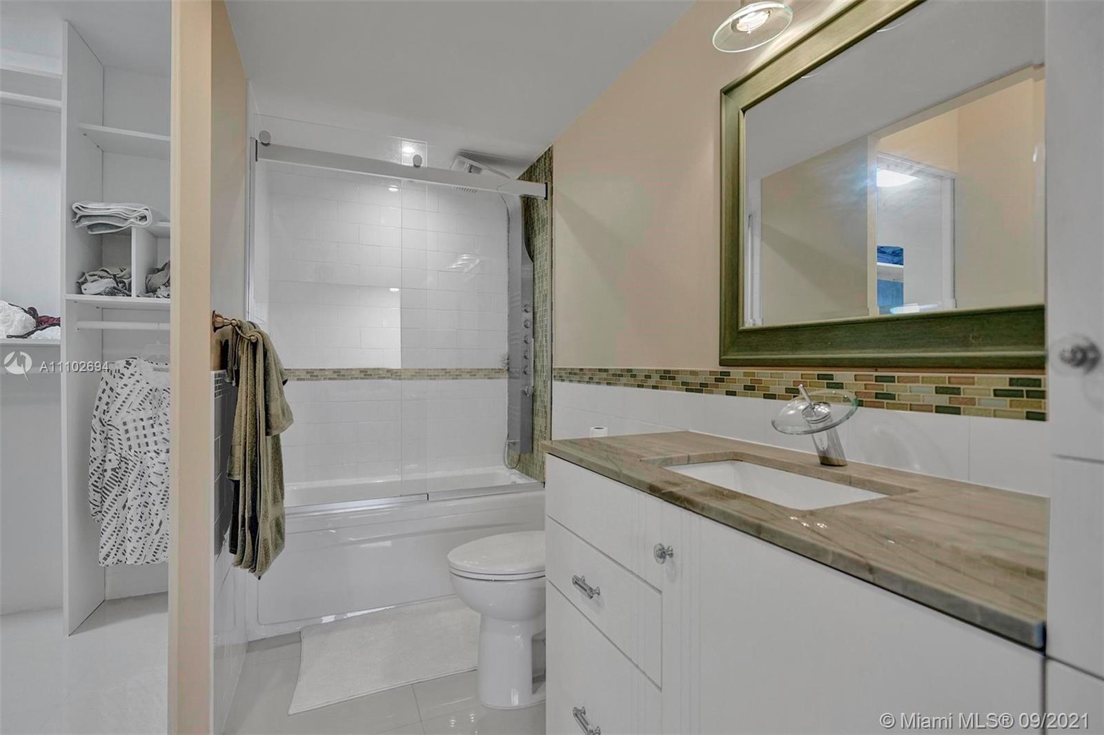 Wow, Wow Wow! Wide intercoastal waterway views from the panorama floor to ceiling windows in every room in this AMAZING totally rehabbed apartment. Super sleek ultra modern finishes abound in this fantastic unit throughout. If you're looking for an open concept space this one's for you! This gourmet, open-kitchen features a serve-through, so you can see the water from the center of the kitchen, as well as a recently installed Samsung Fridge, 42' cabinets with tons of storage, farmhouse style sink & upgraded fixtures, & beautiful granite countertops. Sleek tile flooring throughout the unit. Large master bedroom with huge walk in closet. 2 security entries with manned staff, tennis courts, library, pool. Close to tons of dining, points of interest, & a short bike ride from the beach!