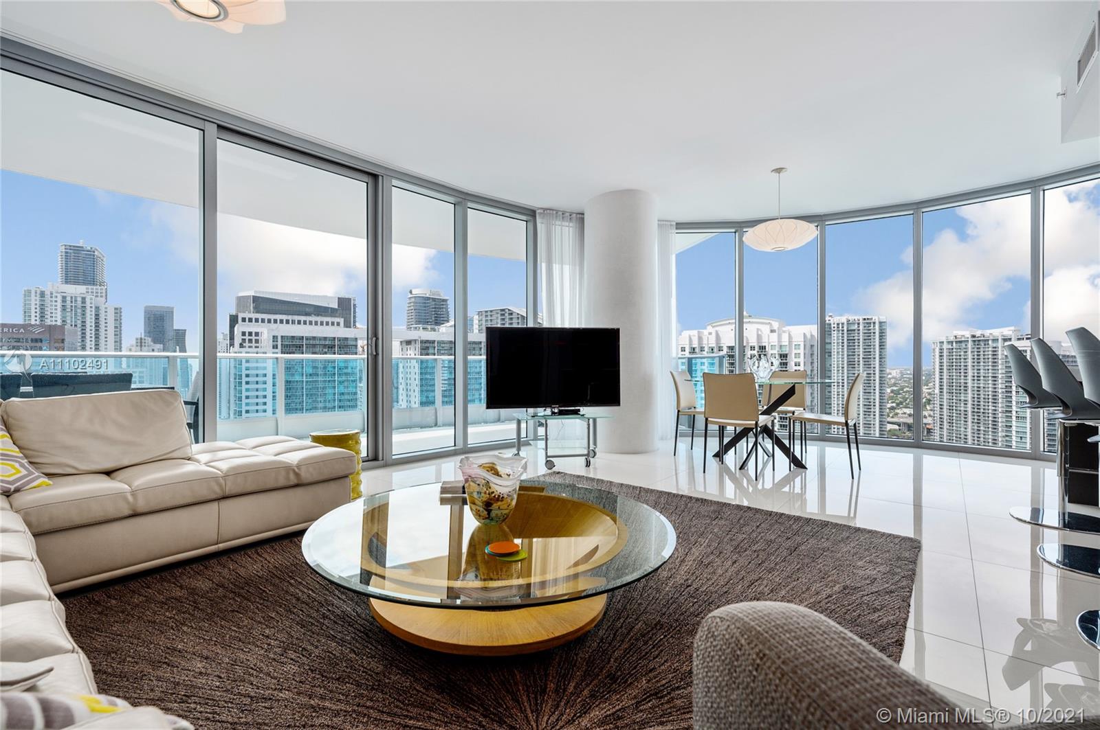 Enjoy amazing, unobstructed 180 degree views of Biscayne Bay, Miami River & downtown skyline from this bright, spacious 2BR/2.5 Bath corner unit. Open concept floor plan, high ceilings, impact doors/windows and deep wrap-around terrace. Snaidero cabinets, Miele & Sub-Zero appliances. Master BR has a spectacular ensuite bathroom. Custom designed spacious walk-in closet. Amenities include: world famous Zuma restaurant, Exhale spa & fitness, rooftop pool, marina, concierge & valet. 1 assigned parking space & 1 large storage unit.