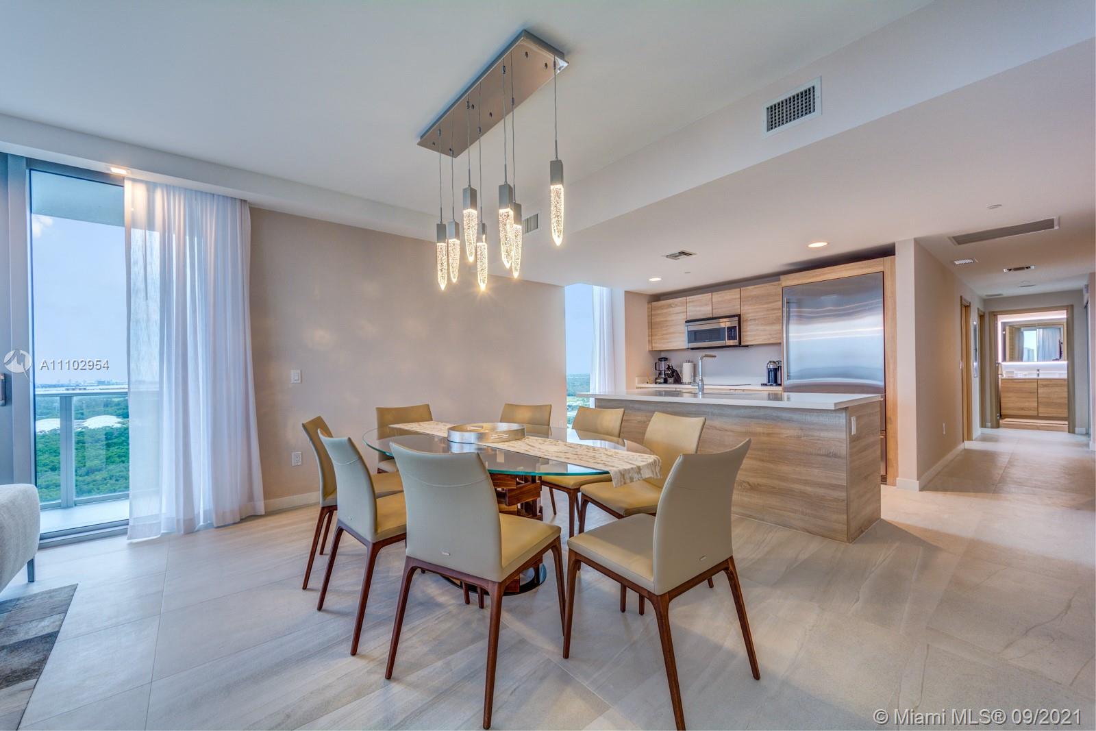 This fantastic large 3 beds / 3 baths + Den, 1.971 SqFt corner unit with the views of Oleta park, Ocean and Sunny Isles Skyline. This Condo has a private elevator entrance, it has over $100,000 in unique upgrades, porcelain floors / glass doors in showers, wood solid doors, motorized blackouts and windows treatments, closets and top of line appliances. A few minutes from Sunny Isles beaches, Aventura Mall, Bal Harbour Shops, Turnberry Golf Club and Spa, and others restaurants. 5 star amenities for all family: Aqua club: boating, paddle boards kayaking, scuba and fishing. Infinity pool with Daybeds and cabanas. Small private beach, spa, library and playground.