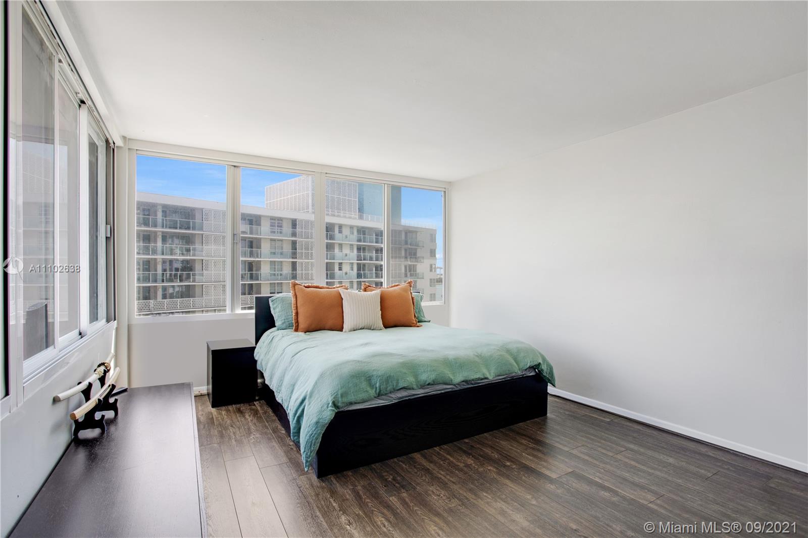A bright 1 bedroom, 1.5 bathroom located on West Ave, with a view of the ocean, bay and skyline! Brand new electric curtains throughout this spacious corner unit, impact windows & doors, and beautiful slate flooring. Internet & cable included. Valet parking available for $65/month. The Mirador is a full service building with a large pool deck and a heated pool, jacuzzi, bbq area, sauna, convenience store, 24 hour security, spa, and hair salon!