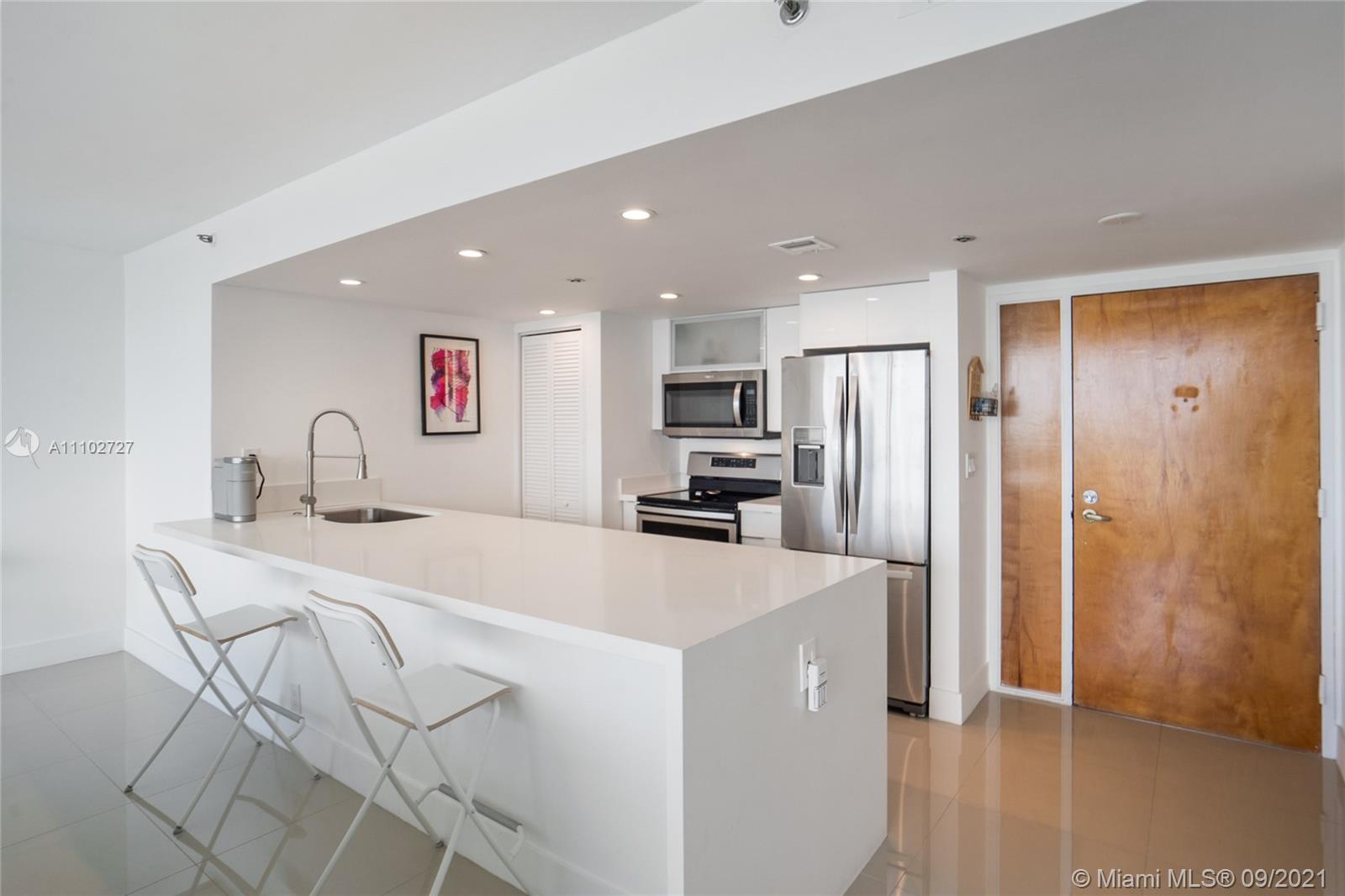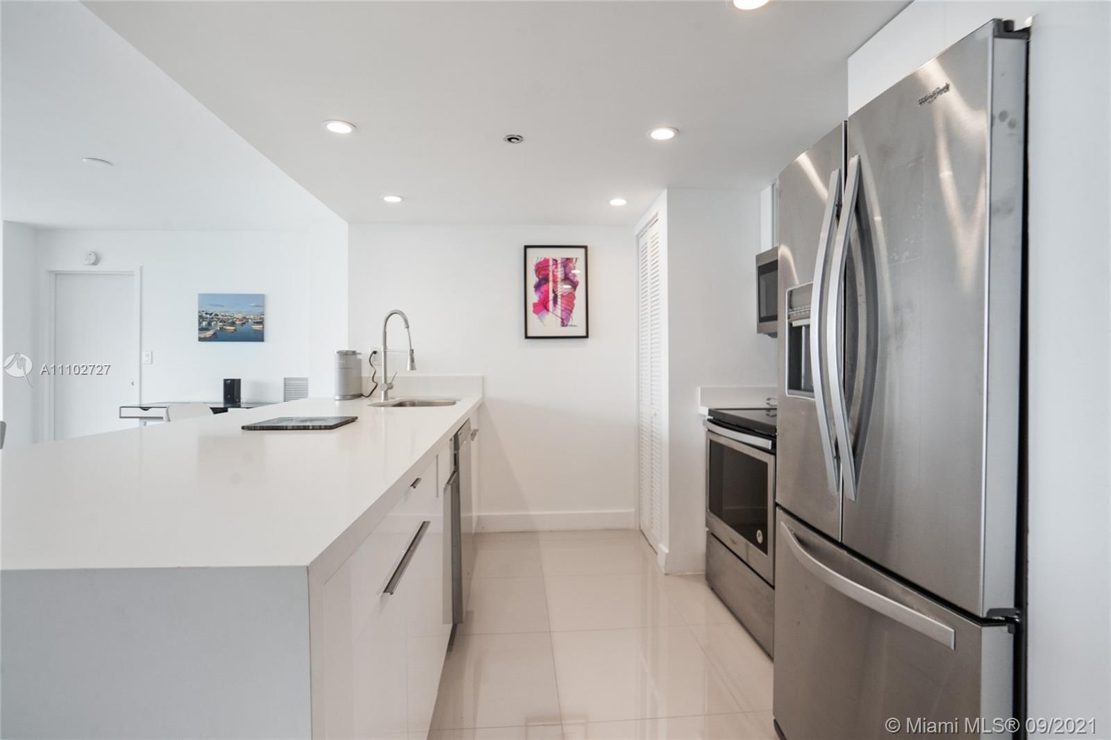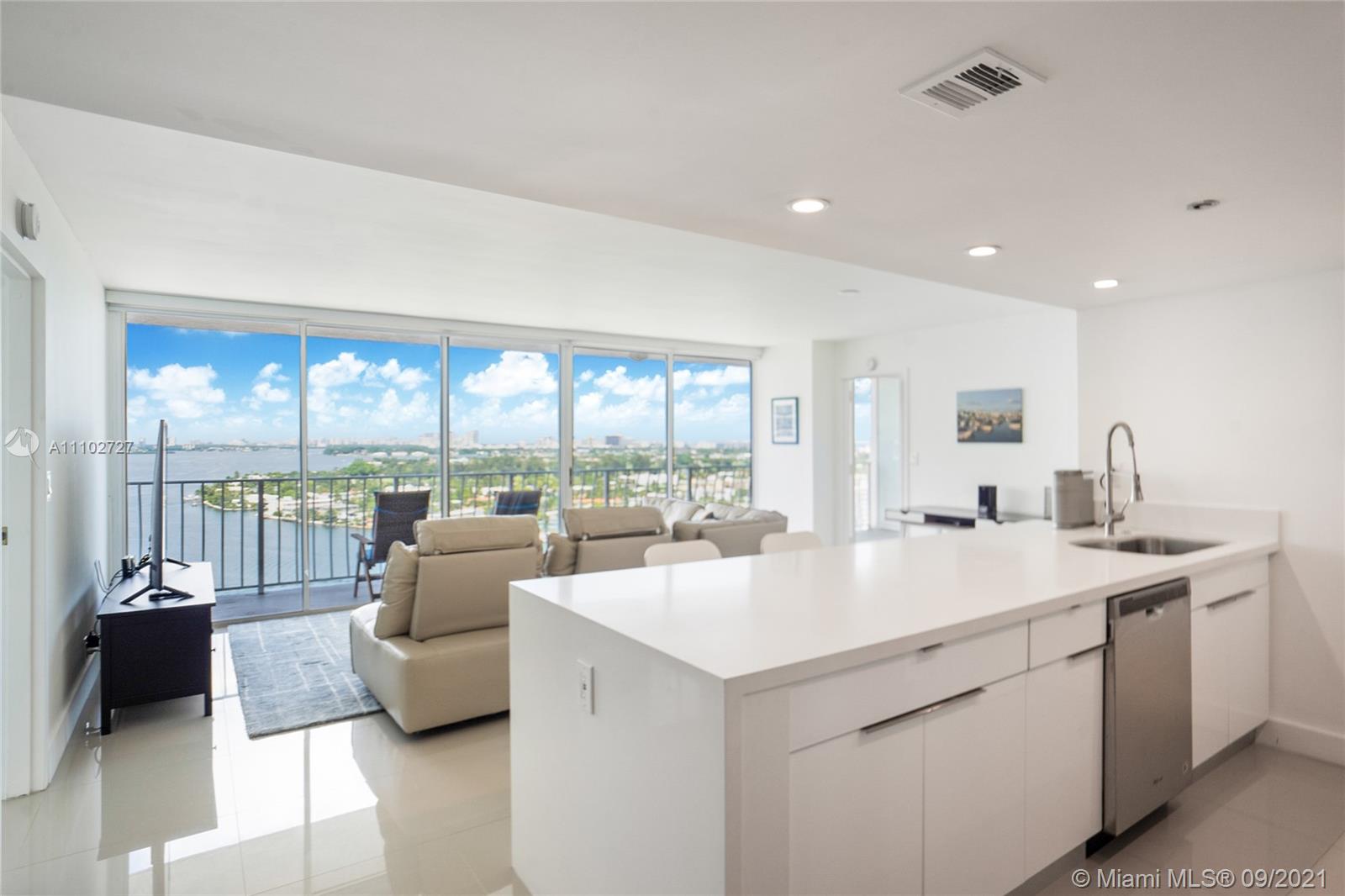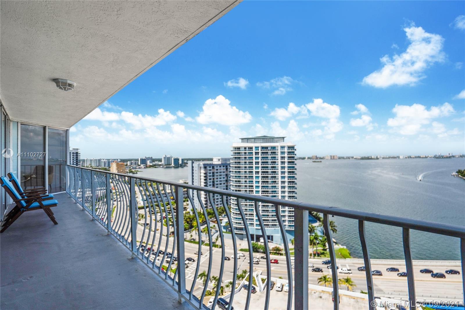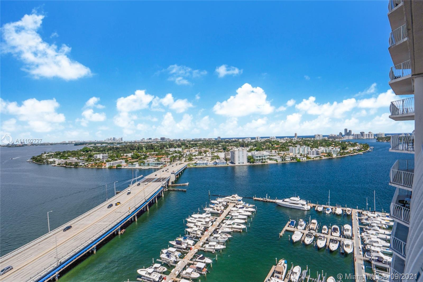 This is a must see unit! Vacant and available now for owner occupant or investor. Completely renovated 2/2 with large open kitchen ,quartz counter tops, new cabinetry , stainless steel appliances & porcelain floors throughout. Floor to ceiling windows with extra large balcony offering incredible 21st floor views of bay, ocean, & marina from every room! Both baths w/new tile, vanities, & showers. Spacious bedrooms with huge walk in closets. Smooth coated ceilings , washer & dryer, pantry, and black out shades on all windows. Beautiful island like setting on North Bay Village. Building has every amenity here including Marina, Olympic sized pool, gym, 24/7 front desk, mini mart/ restaurants/ retail. Ideal location close to downtown and the beaches. Building has reserves and no assessments