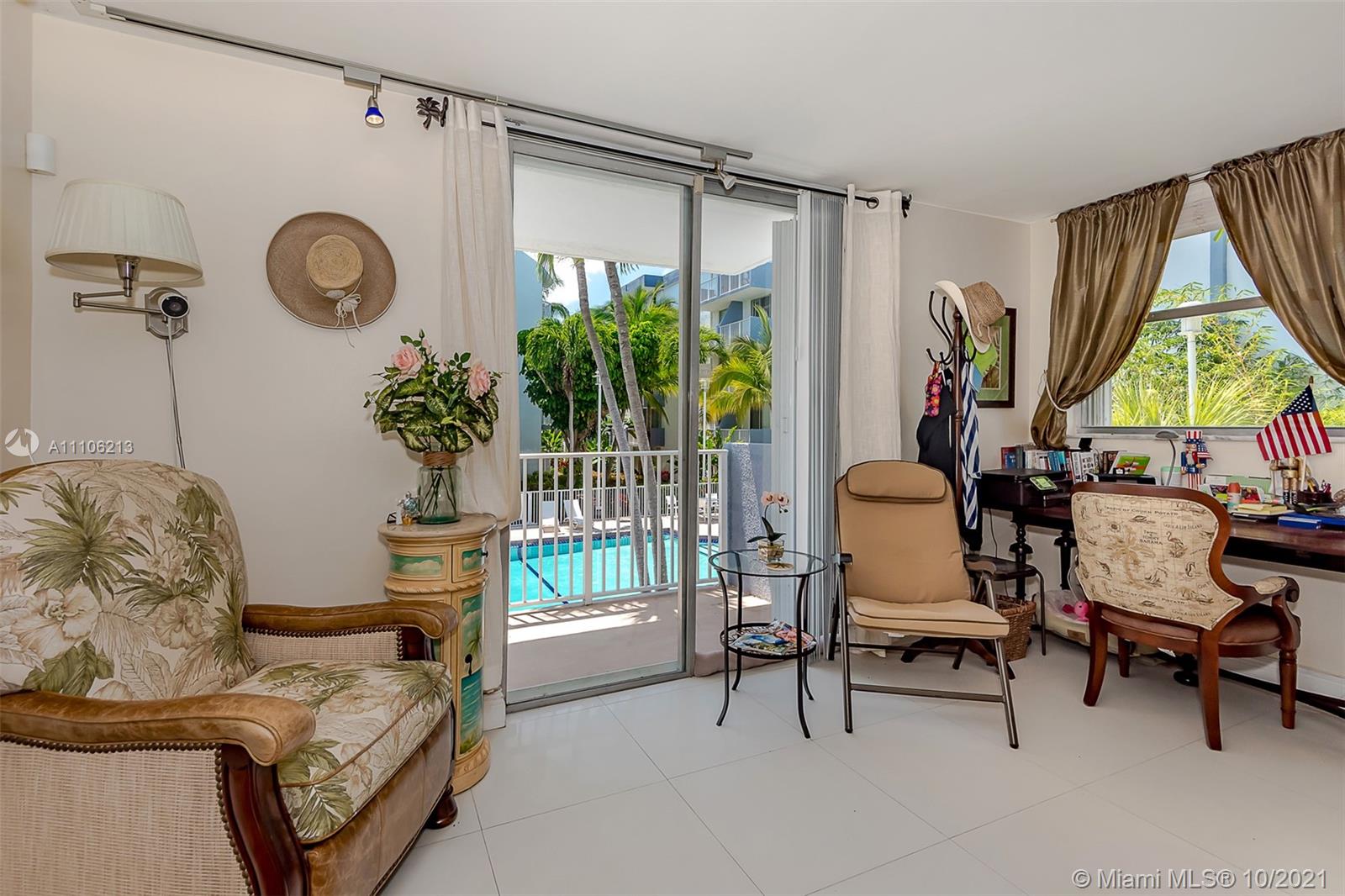 This largest and Cozy 3/2 Converted into a 2/2 with now a large open space living room and 2 Master Bedrooms with their own Private entrances and balconies with their individual AC units can be urs in a quiet Mia Bch Living neighborhood. Property features a Smoked Privacy Partitioned sliding glass door. One Brand New AC unit and other one is 4 yrs old. Property offers 2 assigned parking spots and also has Accordion shutters . Lovely pool view from the 3rd Living room balcony. Its ur Own Paradise living. 40 Year Building inspection has been done.All offers must be presented with an Escrow deposit ck and a current Bank approved DU letter and if cash than POF. This property is a Must see. Come fall in LOVE and live in ur Own Paradise. Showings available form 12pm to 3pm . Back ups r welcome.