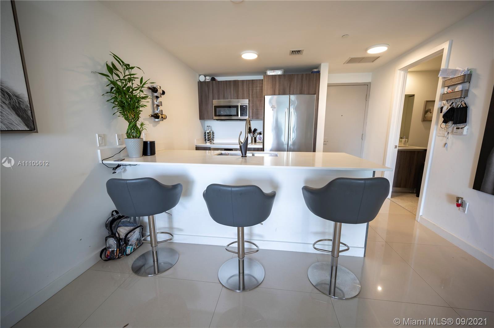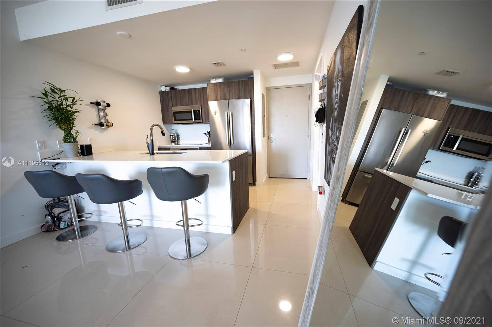 Bay Views from every point of this cozy Apartment, unit featuring large balcony, porcelain floors throughout the whole apartment, Italians cabinets and quartz tops in kitchen and bathrooms, assigned parking space is just a few steps from the front door. Aria on the Bay Condominiums offers the best residential lifestyle in Edge Water, centrally located and LOADED with all the amenities of any 5 stars resort. Walk to Margaret Pace park and marina, public transportation, banks, restaurants... UNIT IS RENTED, CASH ONLY, PROOF OF FUNDS