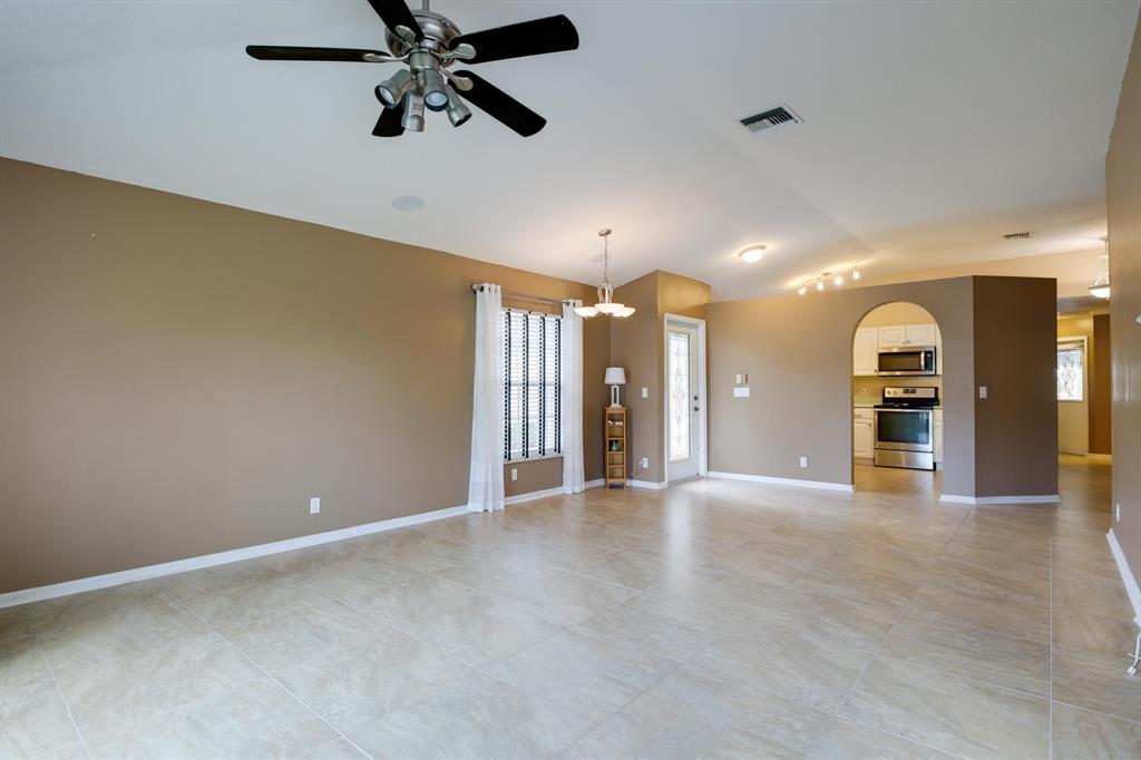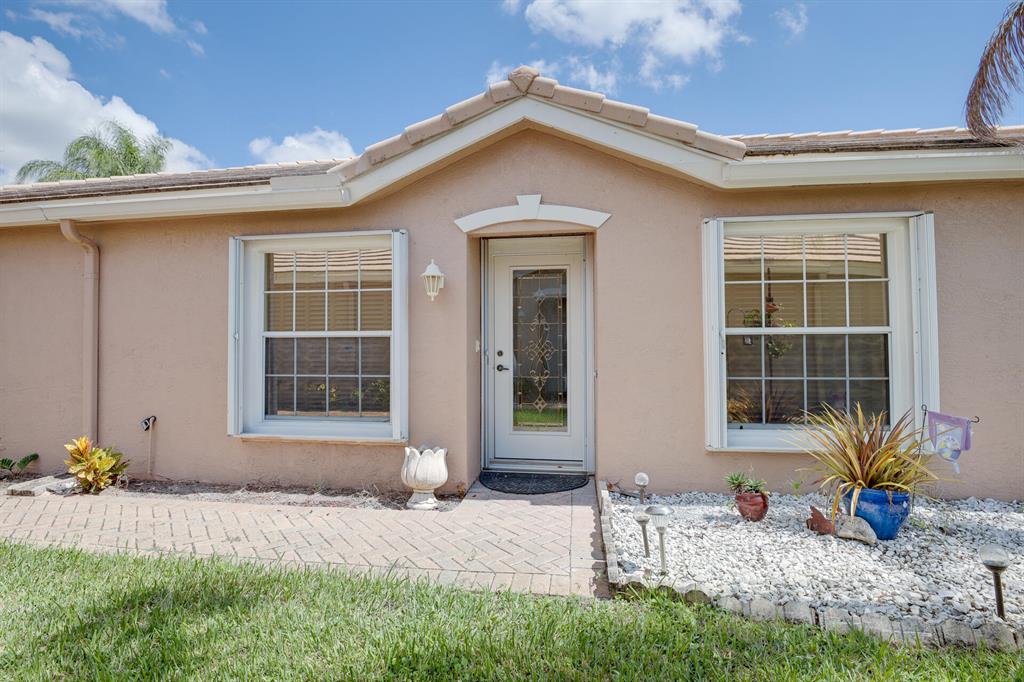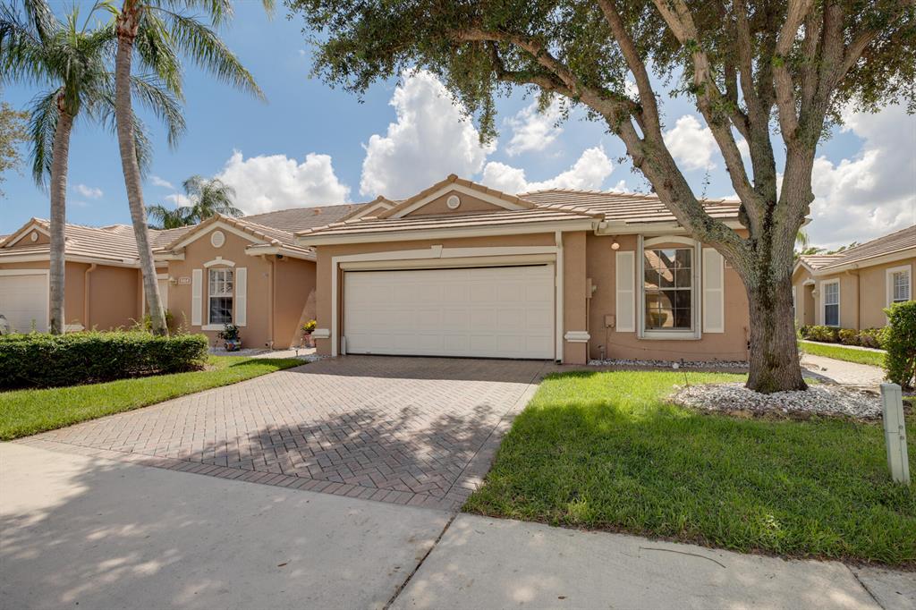 LONG LAKE VIEW 3 BEDROOM 2 BATH, 2 CAR GARAGE VILLA. Interior boasts 24 x 24 tile in the living areas, knockdown/volume ceilings, bedrooms have new laminate floors. The Master suite has his/hers closets ,double sinks, walk in shower with a shower seat and linen closet. Bathroom 2 has a walk in spa tub/shower. This unit has a 2020 A/C, 2018 stainless appliances including the Washer & Dryer. Surround sound in great room & Master. All this on a corner lot, with accordion shutters & an extended screened patio 2018. The garage has an outside key pad and a pull down screen. Community of Andros Isles is close to shopping , turnpike and 95. Lots of activities such as community pool, fitness room, playground. tennis and more. NO RENTAL RESTRICTIONS**MONTHLY DUES -SEE MORE IN PUBLIC REMARKS