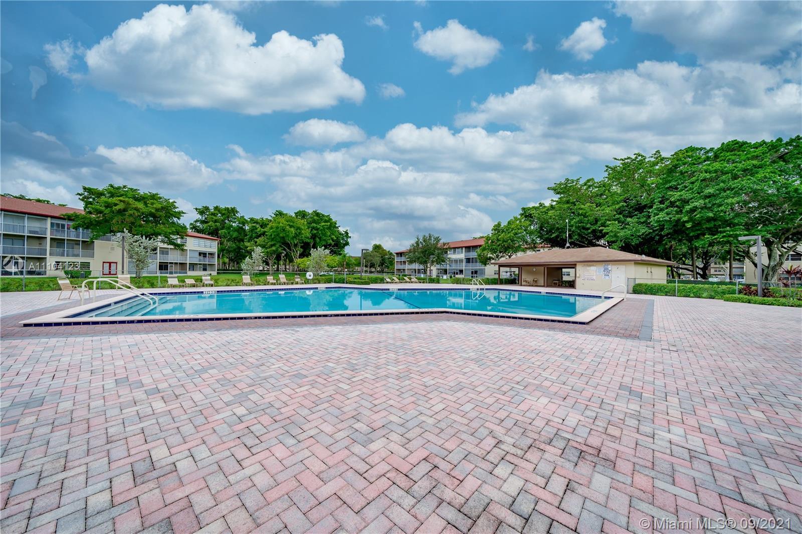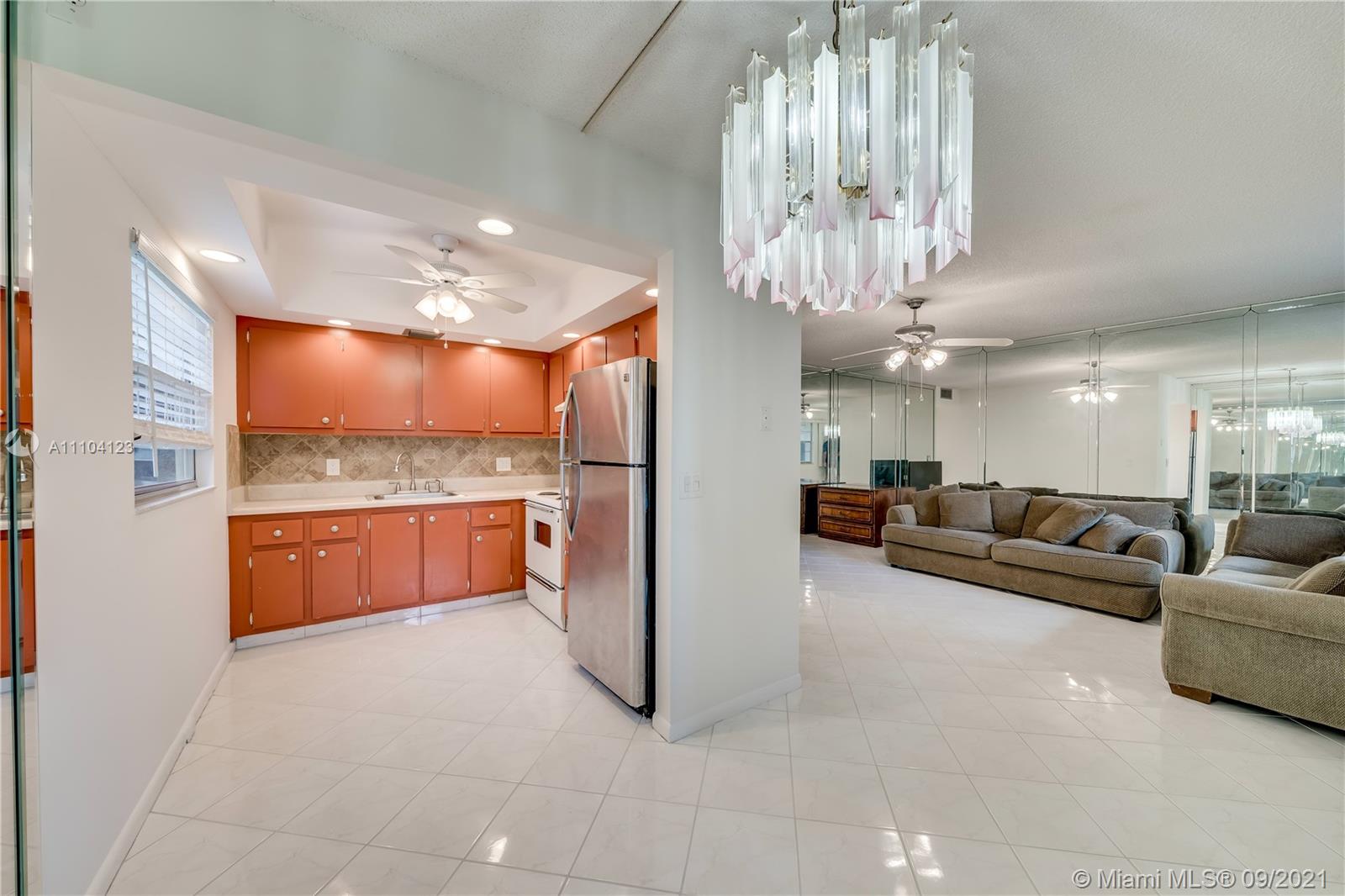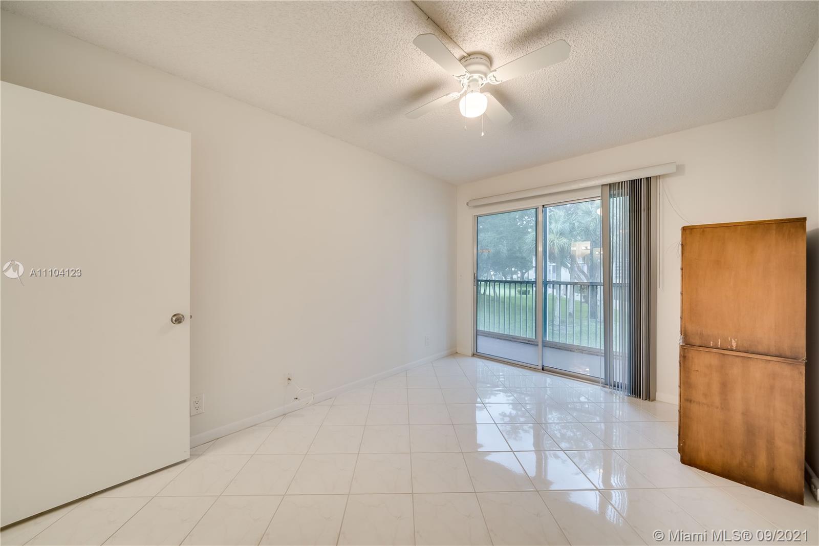 Beautiful, all tiled 2 bedroom, 1.5 bathroom on second floor. Main bathroom has been renovated and the entire condo is freshly painted. Seller will transfer contract with Total Appliance. Balcony is fully closed-in with glass doors. Building has elevator and a laundry room on floor. Cable, water, and trash included. Resort style amenities include indoor/outdoor pools, tennis, 2 fitness centers with free classes , including Zumba, yoga, and cardio/strength training, sauna, billiards, clubhouse, courtesy transportation, movie theatre, restaurant, and golf course.