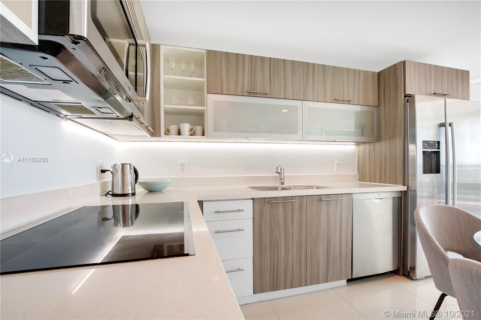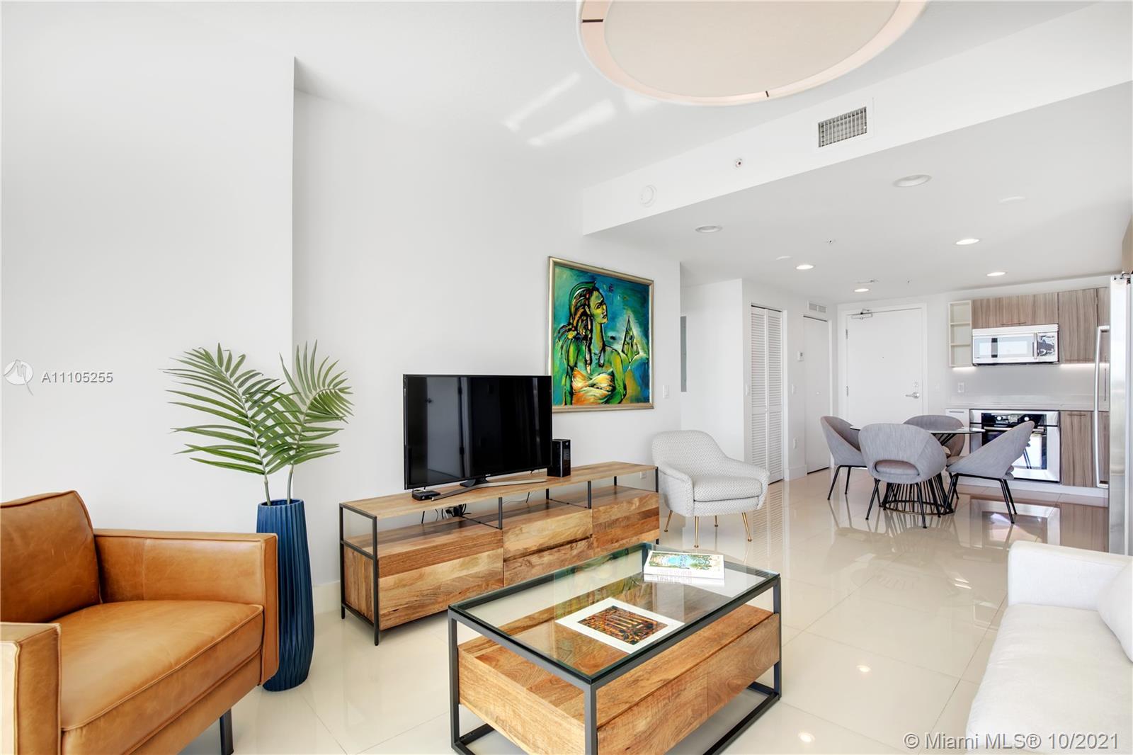 This gorgeous 2 bedroom, 2 bath condominium features direct bay views from every room. The unit is equipped with your comfort in mind and features intricate details such as Bosch stainless steel appliances, Italian cabinetry, full size washer & dryer, white porcelain floors, and dimmable recess lighting. Enjoy resort style amenities and make this condo your perfect destination! Unit can be rented right after closing, 3 months minimum leases permitted, twice a year, which makes it a perfect fit as an investment/vacation home combination. HOA includes high speed internet and cable TV! Pet friendly building. Centrally located, walking distance to the beach and just a short drive to vibrant South Beach!