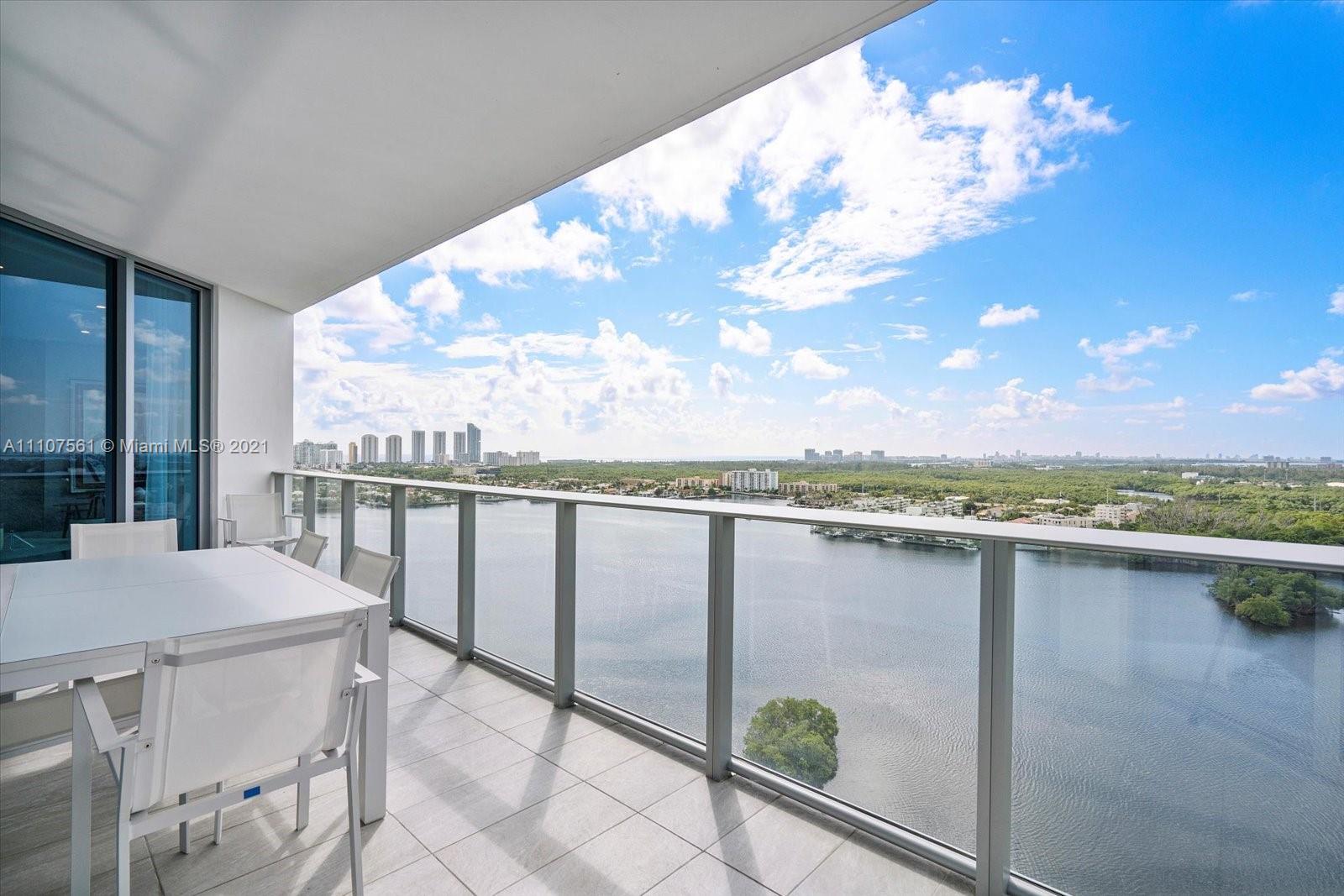 Gorgeous finished unit overlooking the Ocean, Bay and Intracoastal waters. Delicate finished with white porcelains floors, drop ceilings, built in closets and electric shades in every room. Spacious 3 bedrooms plus den and three and half bathrooms, with an open floor plan great entertaining. the Reserve at Marina palms offers a unique waterfront lifestyle, 5 star amenities, infinity pool overlooking the Intracoastal, water sports private fill service marina, boat rentals and much more. Unit rented, 24hrs notice Can be sold furnished as well. Unit has 2 assigned parking, valet and storage.